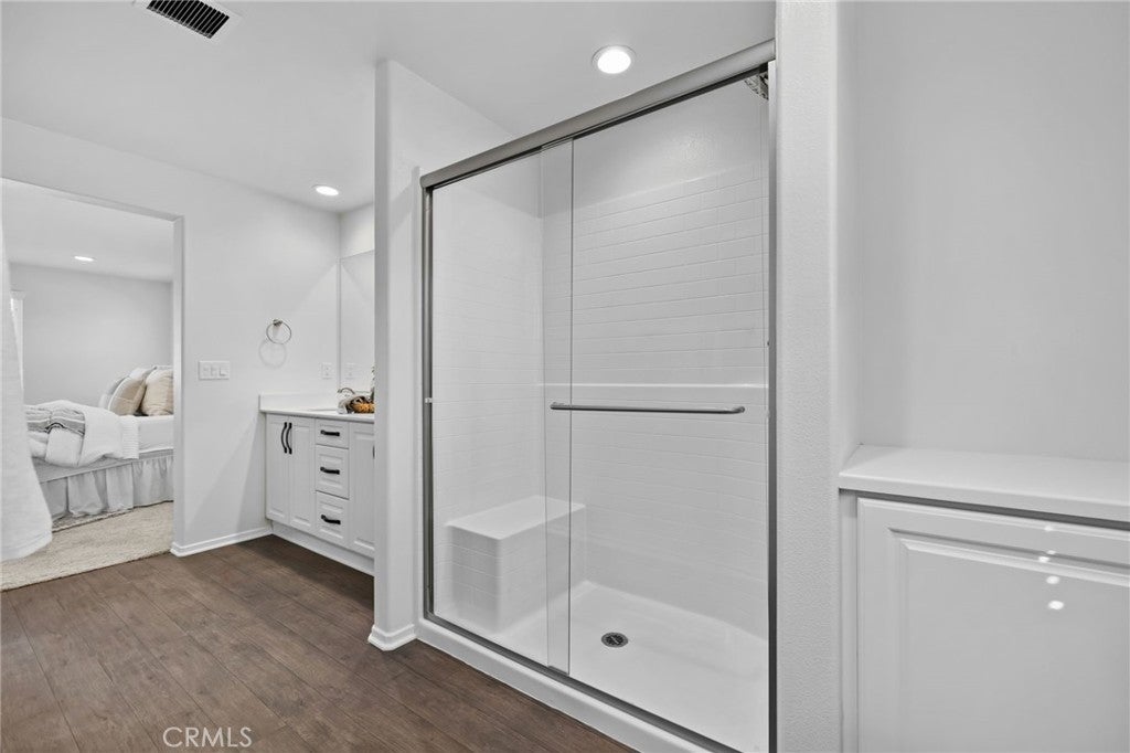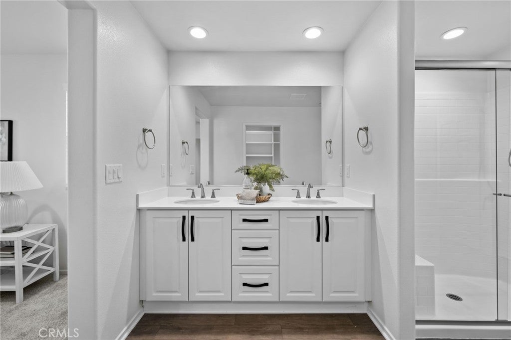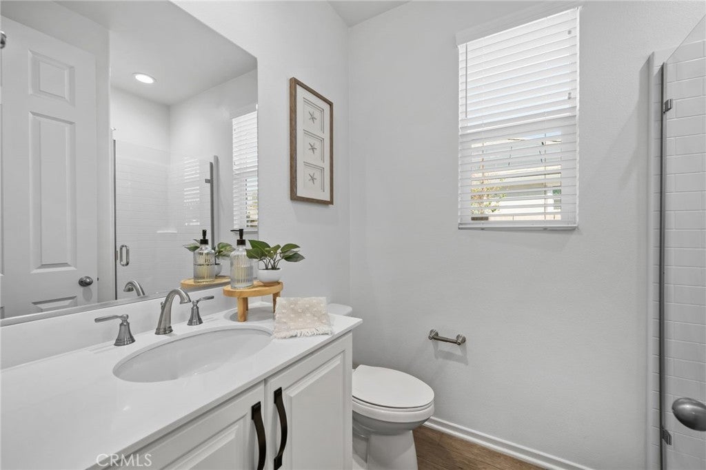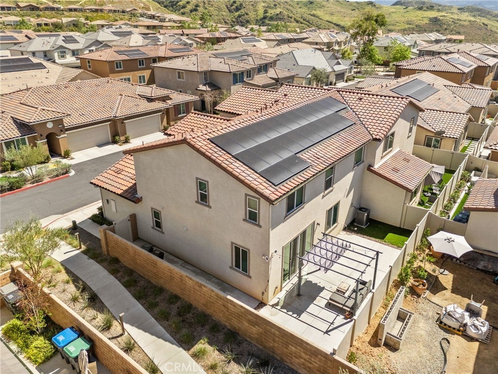 Welcome to this stunning home located in the highly sought-after, gated Terramor Community! This beautifully maintained home boasts 4 bedrooms, 3 bathrooms, and an attached two-car garage with an epoxied floor for a clean, finished look. Enjoy modern conveniences like paid-off solar, a water softener, and thoughtful upgrades throughout—all lovingly cared for by the original owner. Step inside to find a bedroom and full bathroom on the main floor, perfect for guests or a private home office. The heart of the home is the open-concept kitchen and family room, designed for effortless entertaining. The kitchen features sleek quartz countertops, stainless steel appliances, an oversized island with sink, and abundant cabinetry for storage. Just off the entry, double sliding doors bring in natural light and provide seamless access to the outdoor space. There’s also a large walk-in closet under the stairs for extra storage. Upstairs, discover plush carpeting, a spacious primary suite with a custom closet system, and a luxurious bathroom with dual sinks, a walk-in shower, and linen storage. Two additional bedrooms—one with a generous walk-in closet—share another dual-sink bathroom with a shower/tub combo. The upstairs laundry room is a dream, featuring a sink and a drying rack for convenience. The backyard is low-maintenance and perfect for relaxing, offering a cemented patio area with a gazebo and a strip of turf. Additional features include blinds on all windows, water, filtration system, epoxied garage floor and HOA-maintained front landscaping. This home combines modern style, energy efficiency, and resort-like community amenities—all in an exclusive gated neighborhood.