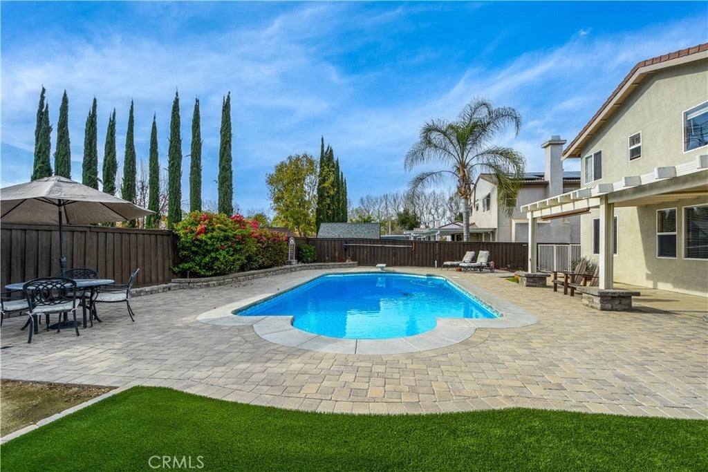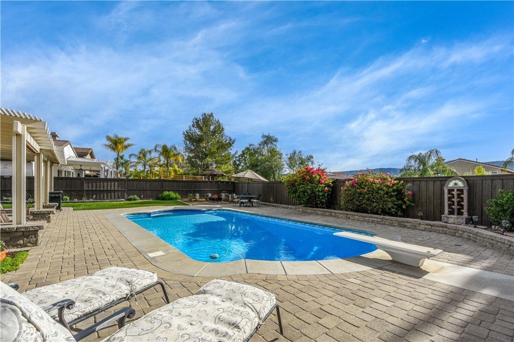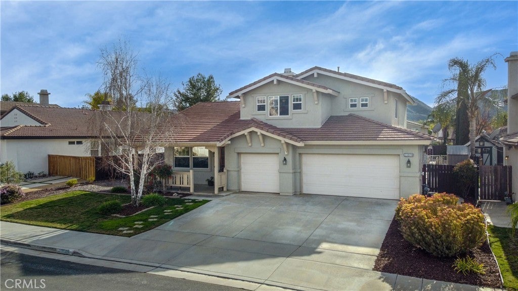 Stunning pool home located in one of West Murrieta's most coveted neighborhoods, within walking distance to award winning schools. Tucked away on a peaceful cul-de-sac, this beautifully designed home offers the perfect blend of comfort, function and fun. You'll pass a charming front porch and enter into a formal living room with a dining area. The kitchen is perfect for the chef in the family, and features recessed lighting, granite tops and a center island. The kitchen is open to the comfortable family room which features a cozy fireplace and stunning views of the back yard. A highly desirable downstairs bedroom and bath provide ideal flexibility for guests, multi-generational living, or a private home office. Upstairs you'll find 3 more roomy bedrooms including the romantic primary bedroom with private bath. The other 2 bedrooms share a hall bath. Step outside into a true entertainer's backyard and your own personal retreat that features a covered patio, sparkling pool, and inviting firepit, perfect for hosting gatherings, summer barbecues, and relaxing evenings under the stars. The spacious outdoor layout creates seamless indoor-outdoor living and a lifestyle that feels like a permanent vacation. This home is located in a quiet, established neighborhood that is close to shopping, dining, Temecula wineries, and hiking at Santa Rosa Plateau. Also commuter close to the 15 and 215 freeways. This home offers tranquility and convenience, plan your visit today!