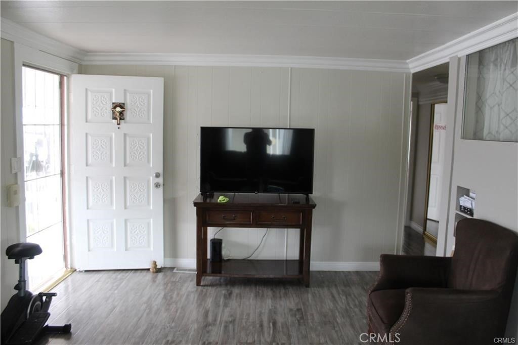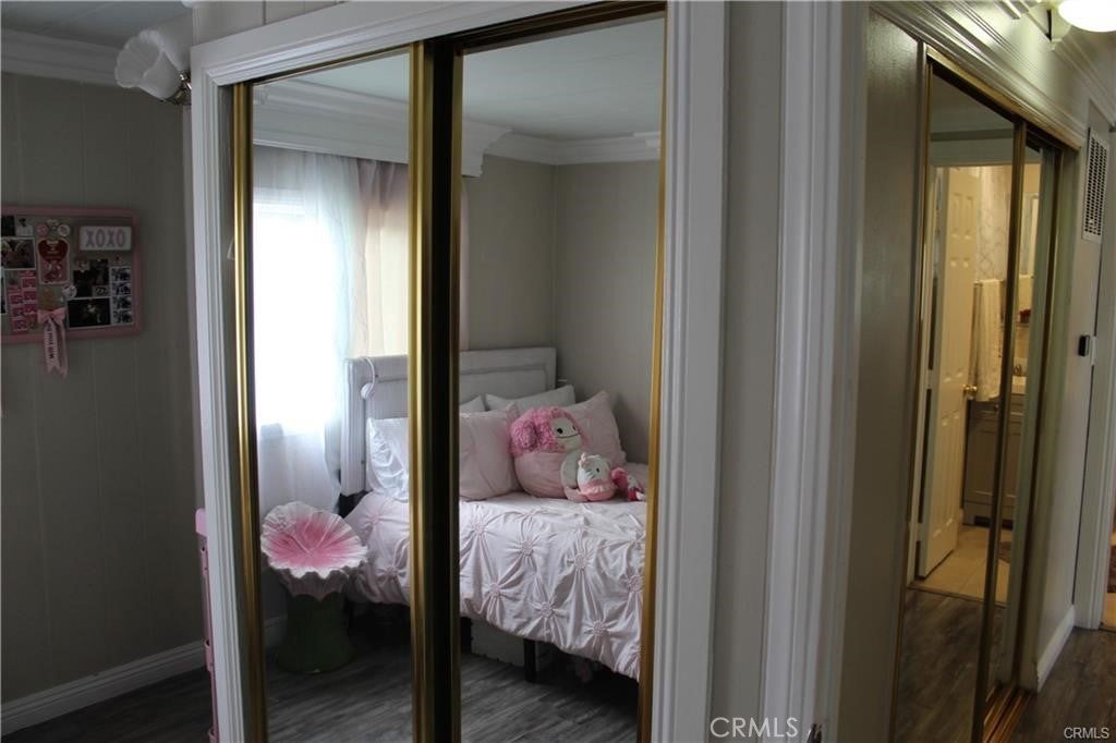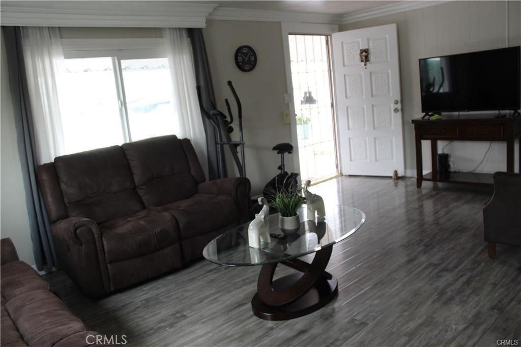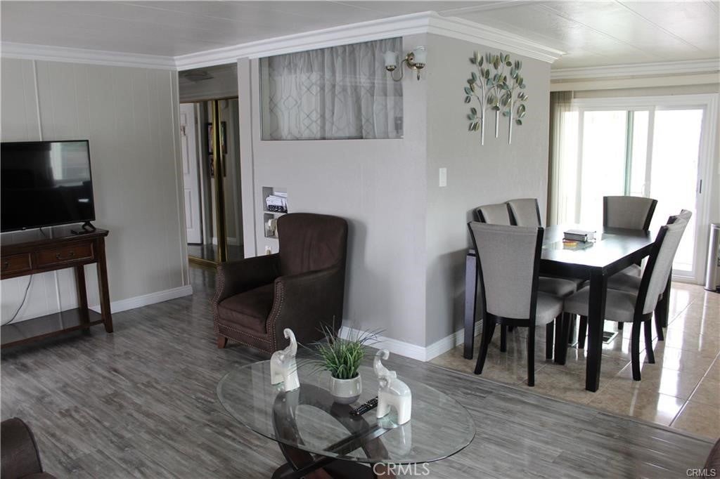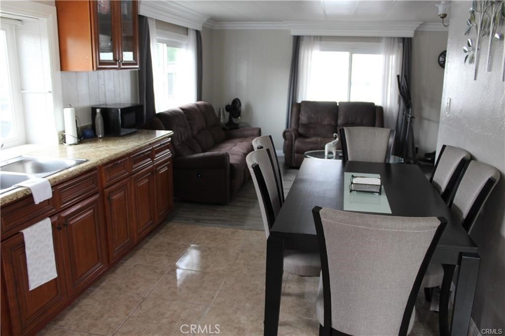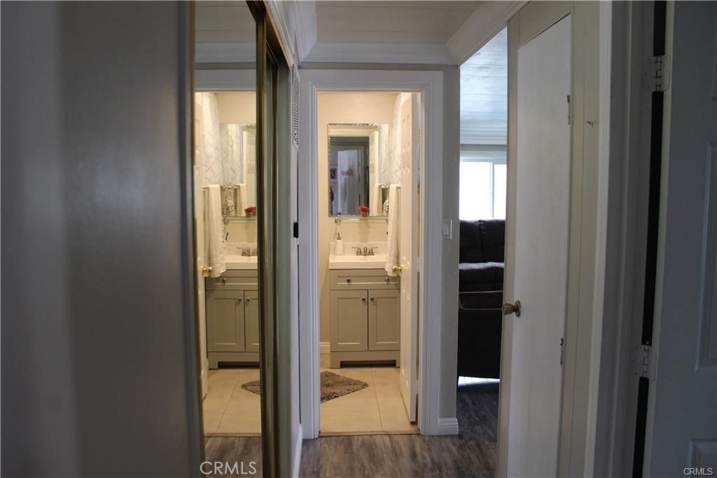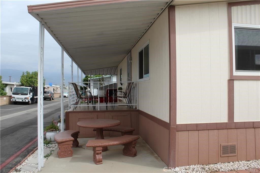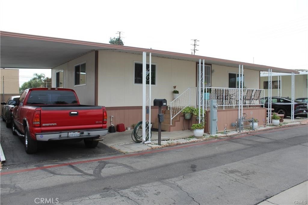 Nicest mobile home I've ever seen! This mobile home features 2 bedrooms 2 baths, newer kitchen cabinets with granite counters, stainless steel stove and sink, wood laminate flooring in the living room, bedrooms and hallway, crown molding throughout, updated bathrooms with tile flooring, newer double pane windows, new AC & heater system, 3 parking spaces, covered patio with 2 seating areas, outside laundry hookup area, interior and exterior paint is well maintained. Community features pool and spa, event center, workout room, car wash area and laundry area. This property has easy access to local stores, restaurants the 10 or 210 freeways and local schools are all close by.
