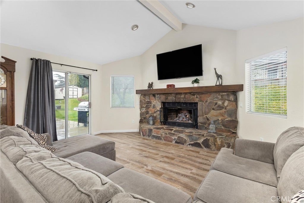 Stunning Country Home with Mountain Views — A True Entertainer's Dream! Nestled close to the breathtaking mountains and just a short drive to the beloved Oak Glen Apple Farms, this gorgeous country home offers the perfect blend of charm, space, and modern living. Situated on a sprawling corner lot of over half an acre, this property delivers the lifestyle you've been dreaming of — complete with RV parking and a 3-car garage. Step through the impressive double-door entry and be welcomed by vaulted ceilings and beautiful vinyl flooring, an open floor plan, and a seamlessly flowing living and dining area. The spacious family room invites you to gather around the cozy fireplace on those crisp mountain evenings. At the heart of the home is a huge gourmet kitchen featuring a large island with breakfast bar seating, double ovens, a walk-in pantry, and a stunning view of the backyard — cooking has never looked this good. Also conveniently located on the main floor is a guest bedroom and full bathroom, perfect for visitors or multigenerational living. Upstairs, you'll find three additional bedrooms, including the master of all master bedrooms — a true retreat featuring a newly remodeled shower, luxurious jetted tub, and private deck access with sweeping panoramic mountain views. Wake up to scenery that belongs on a postcard. Outside, the park-like backyard is made for making memories — an open grassy area, mature fruit trees, and a covered patio ideal for entertaining family and friends for every special occasion. Don't forget about the RV parking for all your toys. This home truly has it all, and no description can do it justice. You have to see it in person!