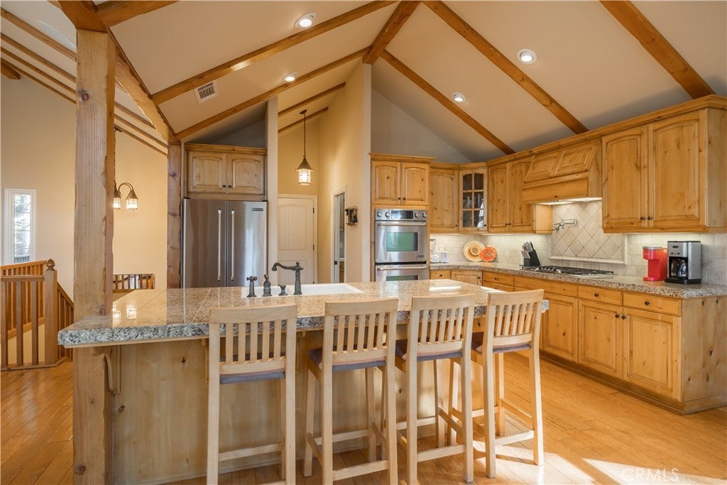 - Interior FeaturesBeamed Ceilings, Breakfast Bar, Ceiling Fan(s), Eat-in Kitchen, Furnished, Granite Counters, High Ceilings, Living Room Deck Attached, Open Floorplan, Pantry, Recessed Lighting, Bedroom on Main Level, Main Level Primary, Primary Suite, Walk-In Closet(s), Partially Furnished