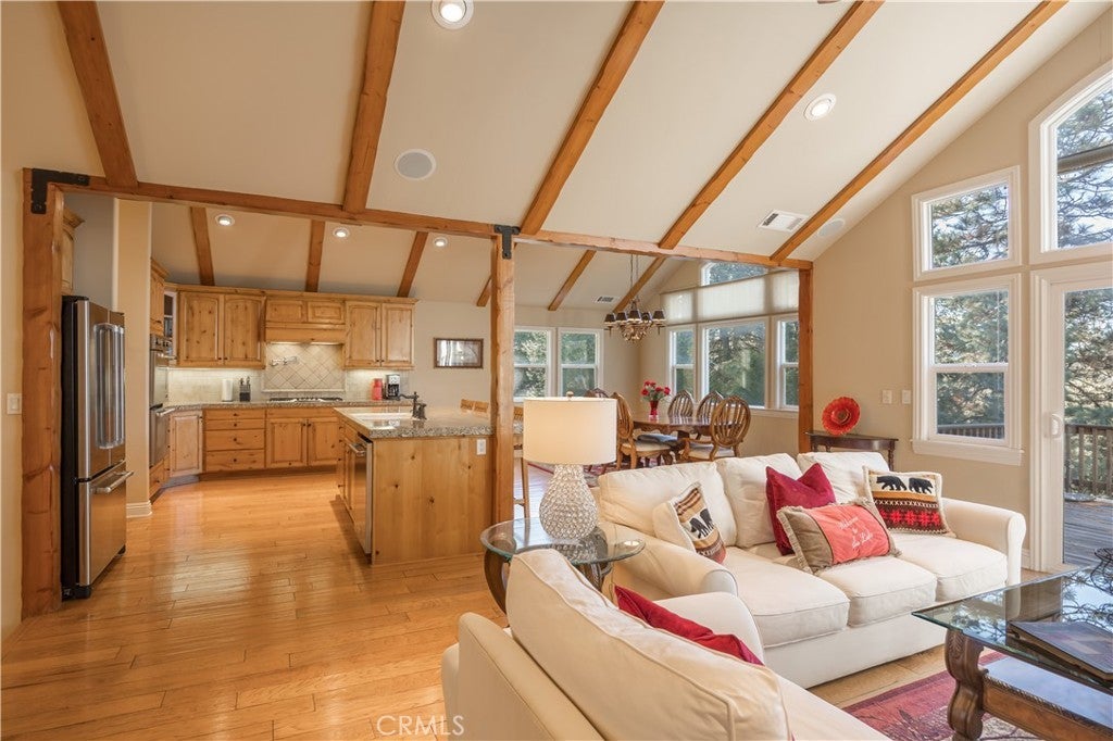 Beautifully maintained and thoughtfully designed, this spacious two-story Lake Arrowhead residence offers the space, flexibility, and setting that define elevated mountain living. With 4 bedrooms, 3 full bathrooms, and 1 half bath, the home blends comfort and functionality with a layout that lives beautifully year-round. Natural light fills the main living areas, where expansive windows frame peaceful tree views and create a seamless connection to the surrounding forest. The open flow between kitchen, dining, and living spaces makes everyday living feel effortless while also providing the perfect backdrop for gathering with friends and family after a day on the lake or the trails. The kitchen is well-appointed and positioned as the heart of the home, opening naturally into the main entertaining spaces. Generously sized bedrooms offer comfort and privacy, including a desirable main-level primary suite that provides ease and separation. The thoughtful two-story design allows guests or family members to spread out while maintaining inviting shared spaces. A charming reading nook or piano alcove adds warmth and architectural character, while the flexible floor plan supports a dedicated home office, creative studio, fitness space, or additional lounge area — ideal for today’s evolving lifestyle needs. Adding to the home’s versatility is a substantial separate area offering intriguing potential for future expansion (buyer to verify feasibility). Within this lower level is an existing enclosed room with electricity already in place and durable sheet-metal interior walls — a space that could serve as a workshop, studio, storage solution, or the foundation for a more customized third-level vision. Set in a peaceful Lake Arrowhead Woods location, the property reflects consistent pride of ownership and offers the rare combination of livability, condition, and long-term flexibility. This property has lake rights and optional access to Lake Arrowhead’s private beach clubs, scenic lakeside trails, and boat dock rights may be available for purchase separately, providing the opportunity to fully embrace the lake lifestyle. A privately owned deepwater multi-slip dock is available for purchase outside escrow. Please inquire for additional details.