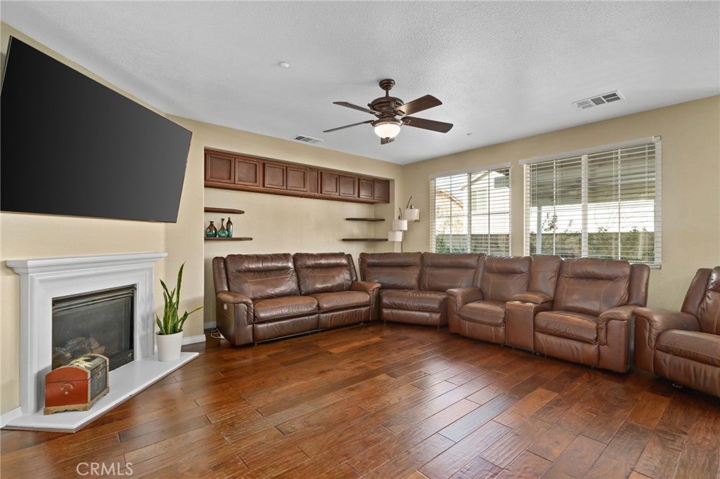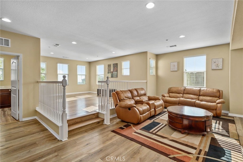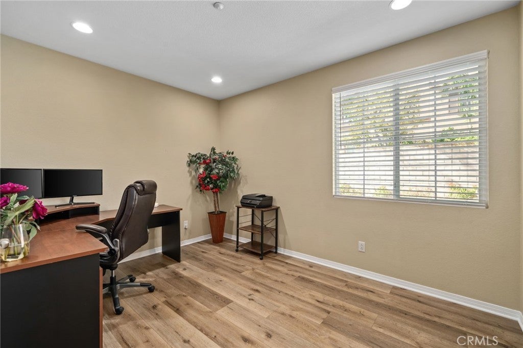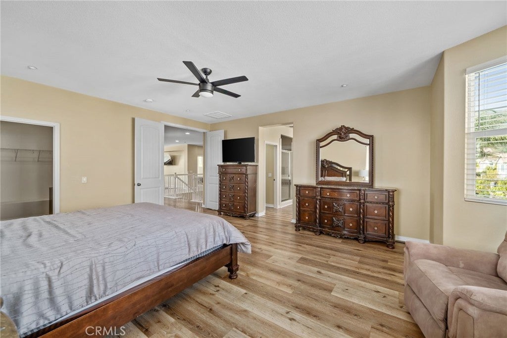 Welcome to this exquisite, corner-lot Hunters Ridge residence in North Fontana, where stunning curb appeal meets modern elegance. Enjoy a beautifully designed porch walkway leading to a grand double-door entry, complemented by a freshly painted exterior, an oversized driveway with ample side parking, and convenient RV parking. As you step inside, you’re greeted by a wide entryway that flows seamlessly into the formal living room and separate dining room, perfect for entertaining. The main floor features a convenient bedroom with its own bathroom, as well as an office space and a stylish powder bathroom. The spacious family room boasts a cozy fireplace and is open to the gourmet kitchen, which is a chef’s dream. Highlights of the kitchen include a walk-in pantry, large kitchen island, built-in microwave and oven, cooktop, and elegant granite countertops. A charming breakfast nook offers sliding doors that lead to the backyard oasis. Upstairs, the open railing invites you to explore two expansive loft areas, providing versatile spaces for relaxation or play. The massive primary suite features abundant natural light, a generous walk-in closet, and a luxurious primary bathroom complete with a vanity area, jetted tub, and separate shower. Additionally, the upper level includes three well-appointed bedrooms, two bathrooms, and a convenient laundry room equipped with cabinets and a sink. Step into the backyard, where you’ll find a serene retreat featuring a barbecue area, covered patio with a refreshing mist system, four fruit trees, and lush green grass surrounded by beautifully landscaped plants—perfect for outdoor enjoyment and entertaining. This home also boasts paid-off solar panels, offering energy efficiency and savings on utility bills. Plus, it is situated within the award-winning Etiwanda School District, making it perfect for families. Recent updates include all new flooring installed in October 2025, enhancing both the upstairs and downstairs living spaces. Don’t miss the opportunity to make this stunning property your new home!