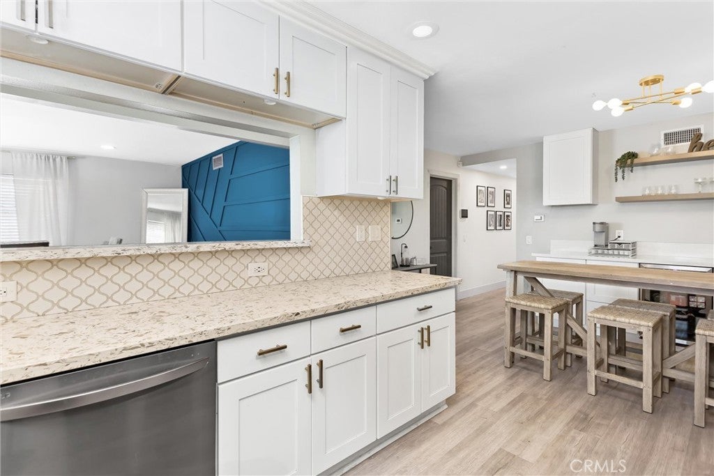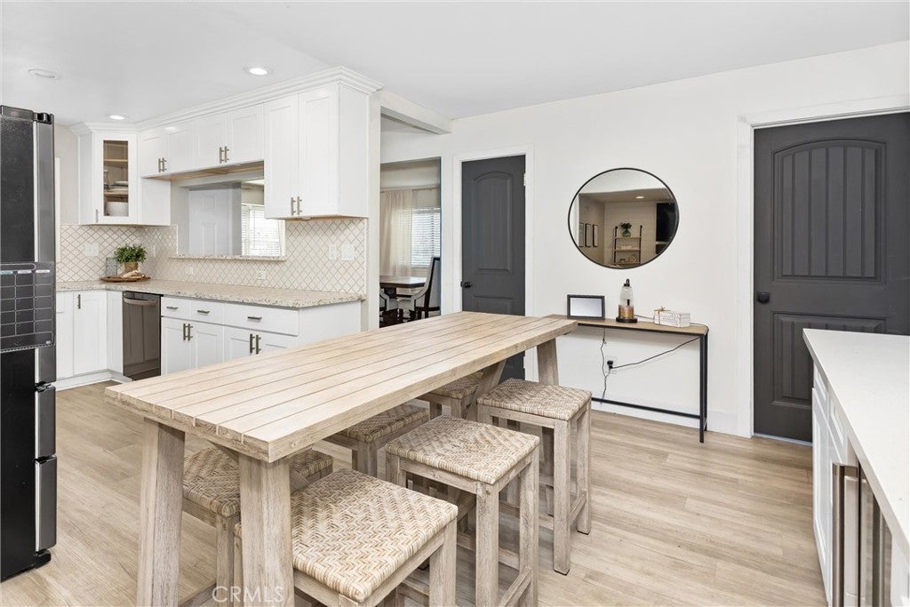 Single-story living with a pool and a beautifully remodeled kitchen! Welcome to 5450 Bonnie Brae St in Montclair, offering 4 bedrooms, 2 bathrooms, and 1,637 sq ft on a spacious 7,300 sq ft corner lot. The remodeled kitchen features white cabinetry, quartz countertops, a stone backsplash, coffee bar, and wine refrigerator, creating a stylish and functional space perfect for everyday living and entertaining. The formal dining area showcases a striking accent wall, while LVP flooring runs throughout the home, providing durability and a modern look. Step outside to your private backyard, complete with an in-ground pool and spa, ideal for relaxing or hosting summer gatherings. The yard is enclosed with block wall fencing for added privacy. Additional highlights include a 2-car garage and potential RV parking. Conveniently located near Montclair Place, Target, Costco, MacArthur Park, and quick access to the I-10 freeway, offering easy commuting and nearby shopping and dining.