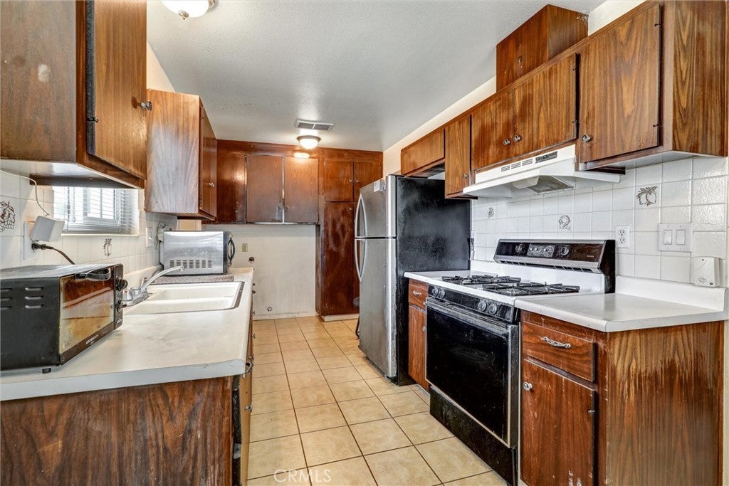 Opportunity awaits in the desirable 55+ community of Valle Hermosa! This charming single-family home offers 2 bedrooms, 1 full bathroom, and 827 sq ft of comfortable, functional living space. Built in 1975, the home includes an attached one-car garage that shares one wall with a neighboring unit. The efficient galley kitchen provides ample cabinet storage, a gas range/oven, laminate countertops with tile backsplash, a pantry, and convenient in-kitchen laundry with upper cabinets and a gas dryer hookup. The garage features a door opener with direct access into the home, and the long concrete driveway offers PLENTY of additional parking. A cozy dining nook just off the kitchen overlooks the front yard, while the inviting front patio provides a great spot to relax. The full bathroom features a tub/shower combo. One bedroom includes a sliding door that opens to the backyard’s covered patio. Enjoy the low ANNUAL HOA fee of just $88! Conveniently located near shopping, restaurants, medical offices, and commuter routes. Investor-friendly HOA. Don’t miss this great opportunity!