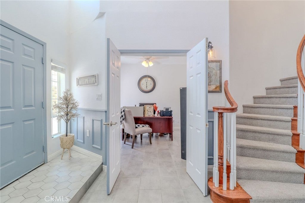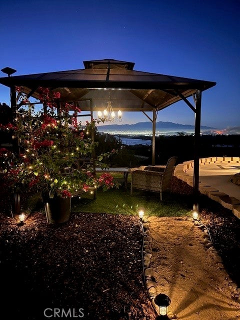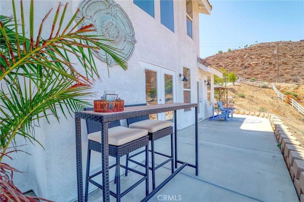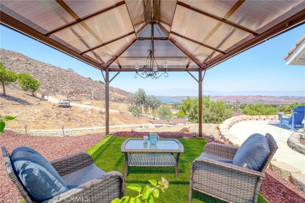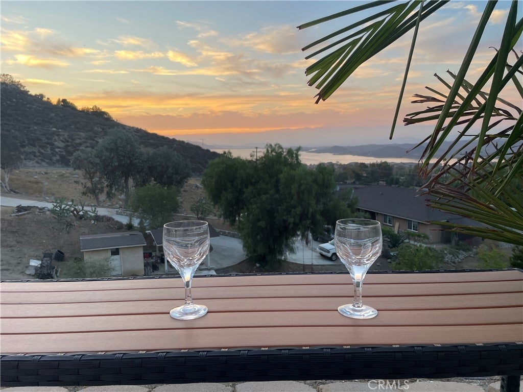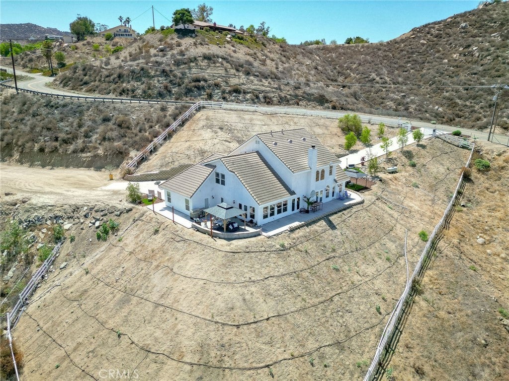 Welcome to Lake Mathews Estate. Picturesque home of timeless beauty, elegance, and tranquility, with spectacular views of the Lake, mountains, and city lights. Leave the world behind, enter your Private Gate, and drive down your tree-lined driveway. Your home offers endless possibilities with 6 bedrooms and 3.5 bathrooms, accommodating multigenerational families gathering and entertaining spaces, while enjoying spectacular views. Also, the 2.5 acres of the property has a flat pad approximately 250'x50' overlooking the views A home of high-quality design and architectural details, such as high-end flooring and crown moulding. quality cabinetry, quartz countertops. The careful layout showcases the gorgeous views throughout, surrounded by windows that illuminate each room with natural light. You are greeted by an elegant porch that opens to a grand entrance, soaring ceiling with celestial windows, and a striking winding staircase. Near the entrance is a conveniently located Office/Flex/bedroom offering its own private outdoor entry. Adjacent to the grand entry is a separate cozy family room. Large open floor plan with cathedral ceilings consisting of your Living, dining, and kitchen, with wrap-around windows. The designer kitchen is thoughtfully laid out. Two pantries, one being a large walk-in, an extra-large island with ample storage, seating, and quartz countertops. Quality cabinetry offers ample storage and a custom hood over the stove with a pot filler. There is ample counter space, a farm sink, a coffee bar, and a separate wine bar with a wine chiller. The kitchen opens to a massive dining room, perfect for your family and those special occasions and holidays. Room for a breakfast nook and seating area. Expand your dining and gathering to the Lanai, with seating, dining, and a private bar. The Living room has a warm fireplace. The luxurious primary suite is on the first floor. A retreat to wake up to the exquisite views. Large spa-like Jacuzzi tub, custom walk-in closet, and private outdoor patio. The upper level consists of a junior on suite, a bed/flex room, and two other bedrooms, each with its own personal sink and storage, sharing a spacious bath. A special feature includes a convenient upstairs second laundry area! The home also included a first-floor indoor laundry and a spacious three-car garage. The outdoors has a park-like gazebo area perfect for enjoying the top-of-the-world views!