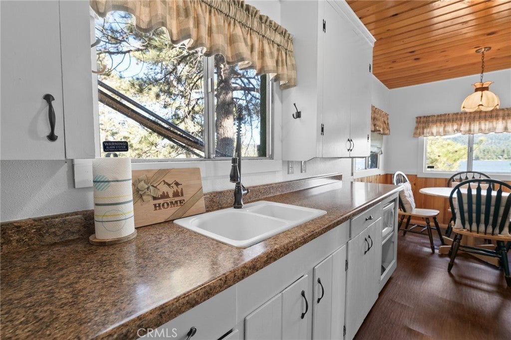 Wake up to breathtaking panoramic lake views and the beauty of towering pines! This 1 bedroom, 1 bath cabin offers the perfect blend of rustic comfort and natural wonder. Perched across the street from the waters edge and nestled among massive, natural granite boulders that create a nature lover's dream. Enjoy coffee on the wraparound deck as the sun rises over the lake, and sunset dinners encompassed by peaceful serenity. Surrounded by national forest, you'll have direct access to hiking trails right outside your back door, while still being minutes from the ski resorts, village, restaurants, and all that Big Bear has to offer. This home is cozy, charming and perfectly positioned offering both privacy and convenience, this is truly the ultimate lakeside escape!