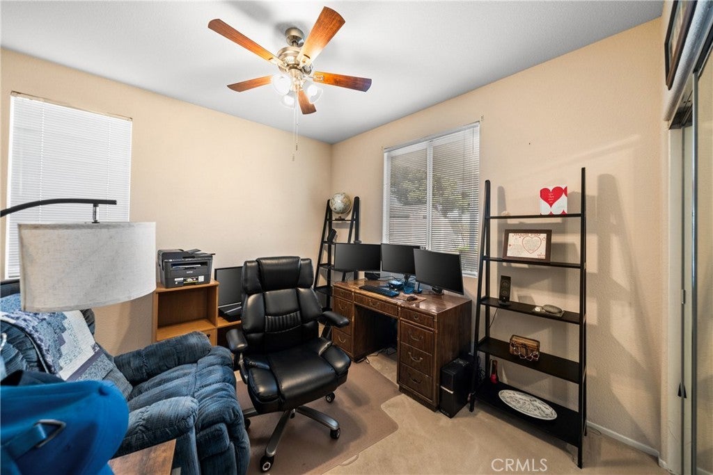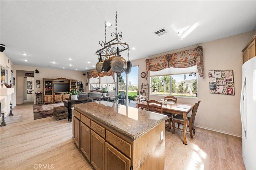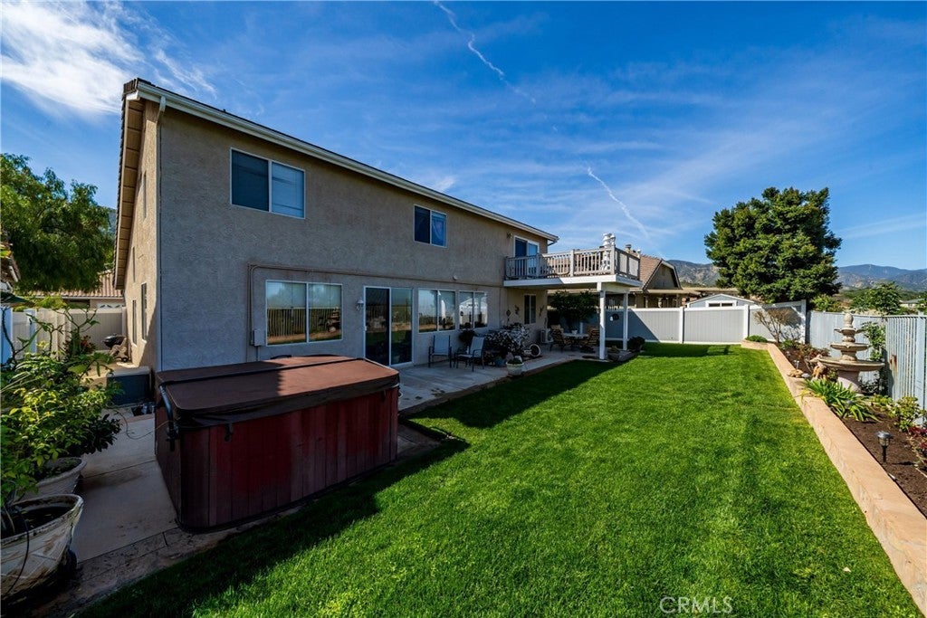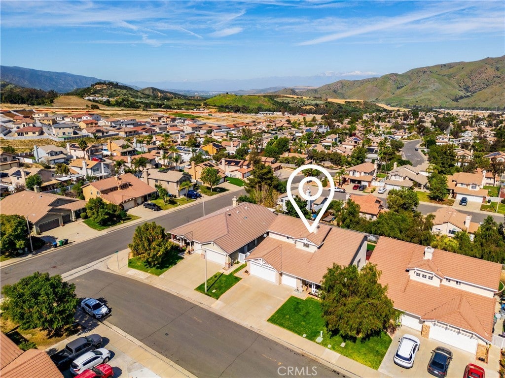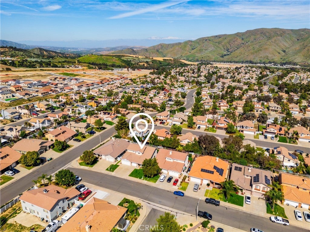 The perfect home is waiting for you in Corona! Flexibility defines this thoughtfully designed five-bedroom floor plan, beginning with TWO bedrooms and a full bathroom on the first level the home. Whether used as guest rooms, dual home offices, a private space for extended family, or even a home gym and workspace combination, the possibilities are wide open to fit the way you live. Just beyond the entry, soaring ceilings and natural light create an open living and dining space that feels bright and welcoming. Toward the back of the home, the kitchen and family room come together as the heart of daily life. The kitchen features abundant cabinetry, a center island and a breakfast nook positioned to enjoy views of the backyard and surrounding hills. The adjoining family room, anchored by a cozy fireplace and framed by large windows, offers a comfortable space to relax while staying connected to the kitchen and outdoor areas. The second level features three additional bedrooms, boasting a spacious primary suite designed to capture the hillside scenery. Sliding doors open to a private balcony overlooking the rolling hills, creating a peaceful retreat for morning coffee or sunset evenings. Outside, the backyard extends the living space with a covered patio, lush lawn, and spa, all set against the scenic hillside backdrop that makes this location so special.