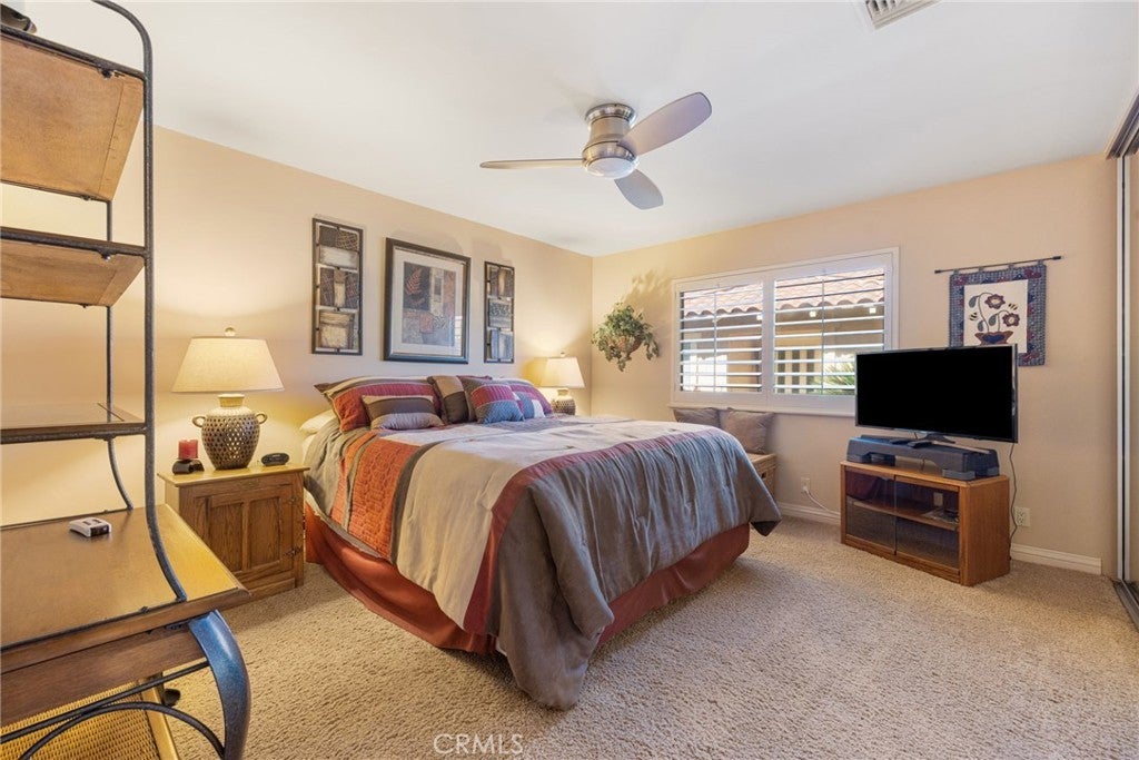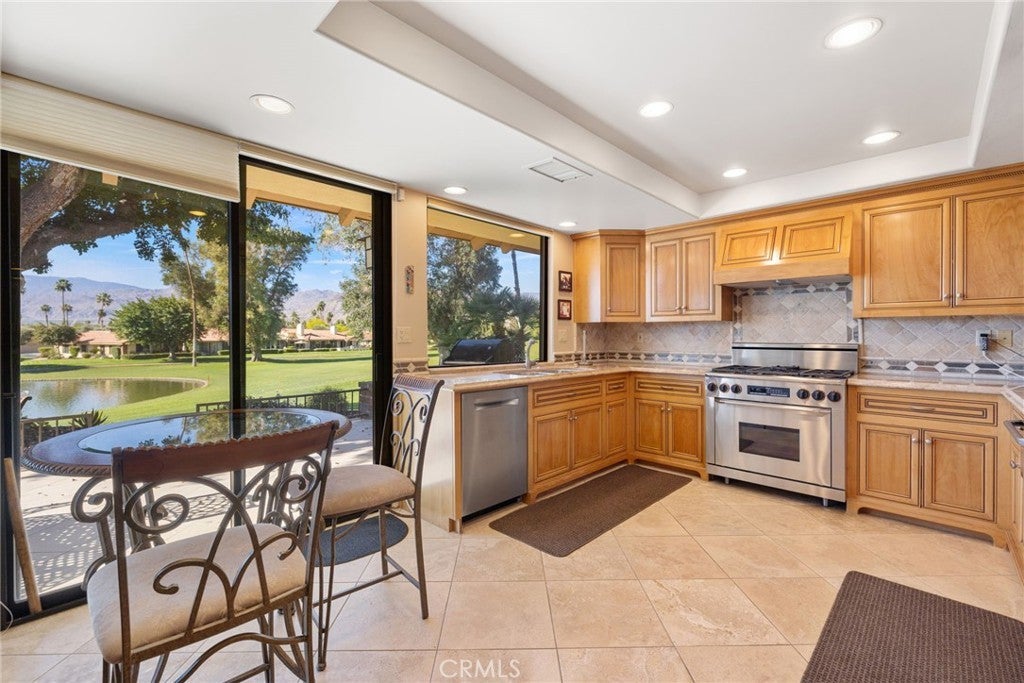 Welcome to the highly sought after Monterey Country Club, lotion- location- location, this turnkey 3 bedroom 2.5 bath condo is situated in a cul-de-sac and south facing. Features travertine flooring and carpet, nice size dining room, family room complete with fireplace, kitchen has nice cabinets, granite counter tops, island, stainless steel appliances including a warming drawer and wine refrigerator. Inside laundry room and 2 car garage. Enjoy the private patio with stunning views of mountains and pond great for entertaining. Patio furniture and bbq are included. As you enter, you are welcomed by vaulted ceilings and natural light. Being sold furnished if buyers want. Brand new water heater was just installed. This condo is perfect for any situation either primary residence , seasonally, or as a short term rental. The Monterey offers a 24 hour guarded gate, 27 holes of Ted Robinson designed golf courses, 6 tennis courts, 33 pickle ball courts, 4 lane bocce ball court, 37 pools and spas, and club house. Golf cart can be sold outside of escrow. Conveniently located to shopping, dining, and hiking trails.
