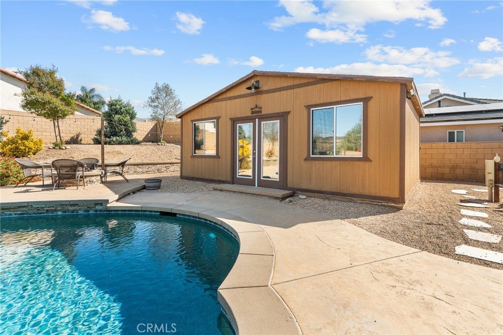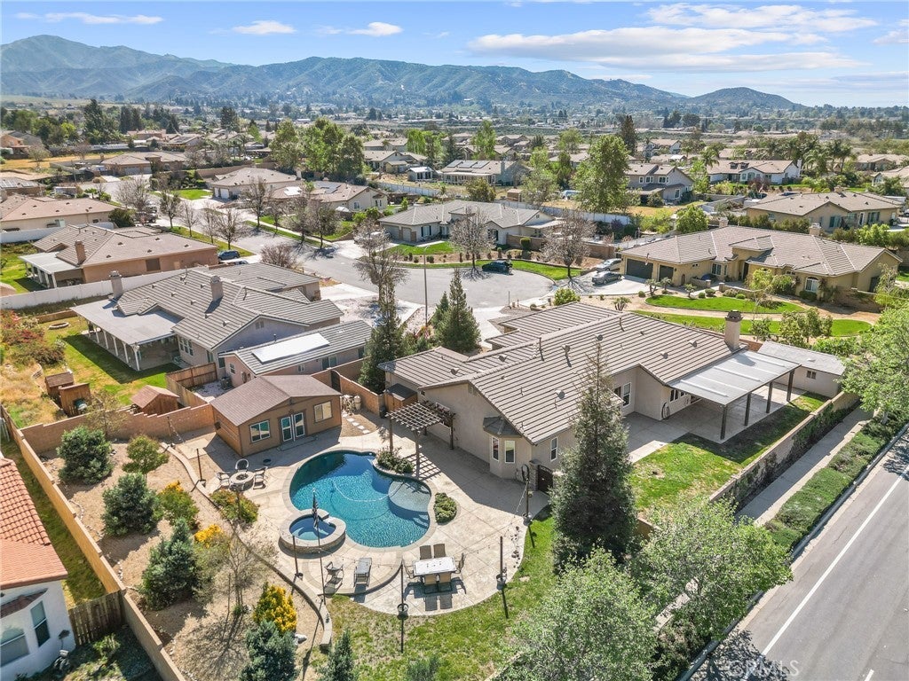 Located on a quiet cul-de-sac in desirable Shaefer Ranch, this EXCEPTIONAL SINGLE-STORY RESORT-STYLE POOL HOME sits on an expansive 20,022 sq ft fully landscaped lot with mountain views and abundant parking. The spacious 3,110 sq ft floor plan features 10 foot ceilings, 4 oversized bedrooms, 3 full baths, a private office that can easily serve as a 5th bedroom and a multi functional formal dining room. A floor-to-ceiling stone fireplace serves as a focal point in the great room that flows nicely into the inviting eat-in kitchen complete with center island and bar seating, stainless appliances, pantry, ample storage and french doors that open to the backyard. A second living/family room with fireplace also has french doors to the backyard. The generous primary suite welcomes you through double doors and offers a relaxing and restful space with a jetted soaking tub, separate shower, dual vanities and a walk-in closet. An EXQUISITE BACKYARD RETREAT awaits you featuring a stunning pebble finished heated pool with baja step and spacious 10-12 person spa with a tranquil cascading waterfall. The grounds are thoughtfully designed with a separate 384 sq ft pool house for added convenience, a custom fire pit and ambient lighting that highlights the landscape after sunset. A charming gazebo offers a shaded shelter while mature, easy care landscaping create a resort-style outdoor oasis ~ Ideal for year-round enjoyment. The property is fully fenced with block walls on all sides, gated and cross-fenced. Additional great-to-have features include massive, iron gated 18x45' RV parking, a large 10x20' shed on concrete pad, a 15x37' covered patio plus additional open patio space, a three-car garage and driveway that accommodates up to ten vehicles. No HOA. This is the home you have been waiting for!