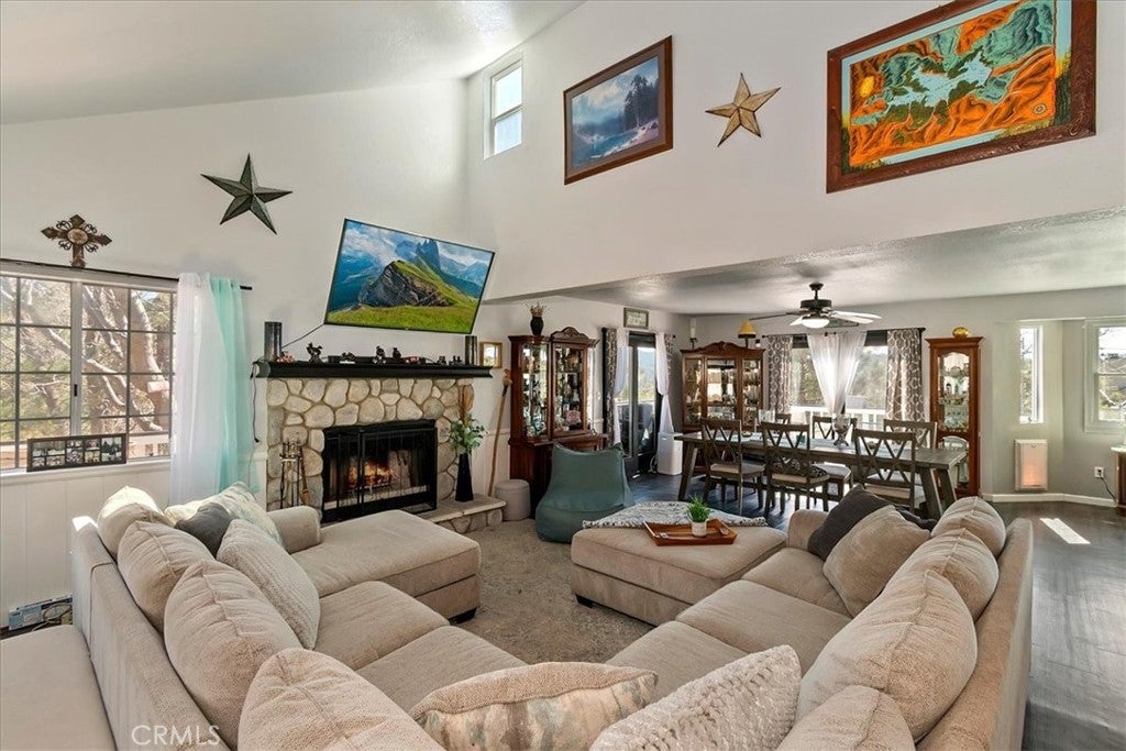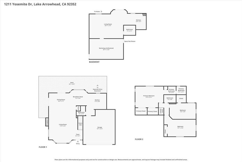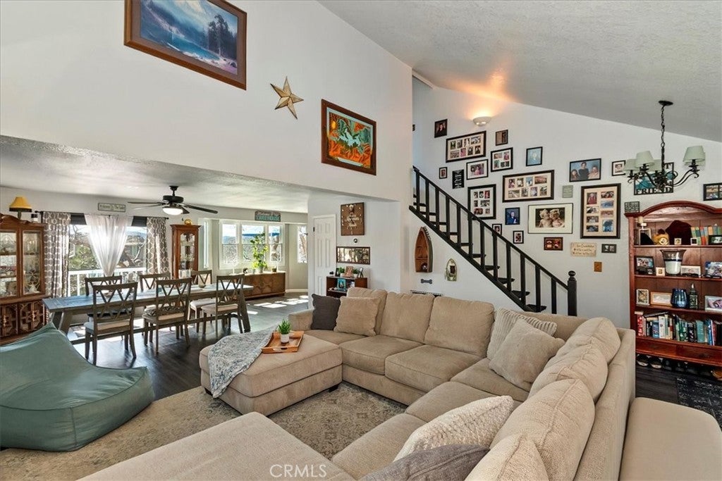 PRICED TO SELL!!! Gorgeous Lake Rights Area Home with stunning distant ridgeline views and filtered lakeviews! Spacious home with plenty of room for everyone. Home includes 2nd living quarters/lower level ADU for additional income potential or family needing their own space & privacy! This three-story home has it all! The main house has a large, open-concept room with a vaulted ceiling and a beautiful wood burning fireplace, newer flooring throughout. Large kitchen with stainless-steel appliances. Beautiful Anderson Gold sliders leading onto the large wrap-around upper deck, perfect for BBQs and entertaining. Upstairs has 3 LARGE bedrooms, one with a walk-in closet, the other with a large closet. Large primary suite is ensuite with full bath including his and hers dual sinks and plenty of storage. Large 2-car attached garage, top of the line fully insulated garage door, newer washer and dryer, deep freezer along with a large garage refrigerator...all included! Garage is fully finished/drywalled/insulated with a wall of cabinets for plenty of storage. Home has central heating and A/C. There is plenty of parking including boat and RV parking with an almost 10,000 sq. ft. lot! Located conveniently on a short level paved private access road. There is a golf cart garage plus 2 large storage sheds. Below the main home there is a huge workshop. Also below the main home is a FULLY PERMITED 2nd living quarters/studio apartment ADU, or just a separate game room/family room. The fully self-contained apartment/ADU including full kitchen & bath plus a private deck with private entrance. The large level back yard is completely fenced with a great sense of privacy. Full Lake Rights and just a couple of minutes to the Lake & Marina. Don't miss this unique opportunity, make your offer today!