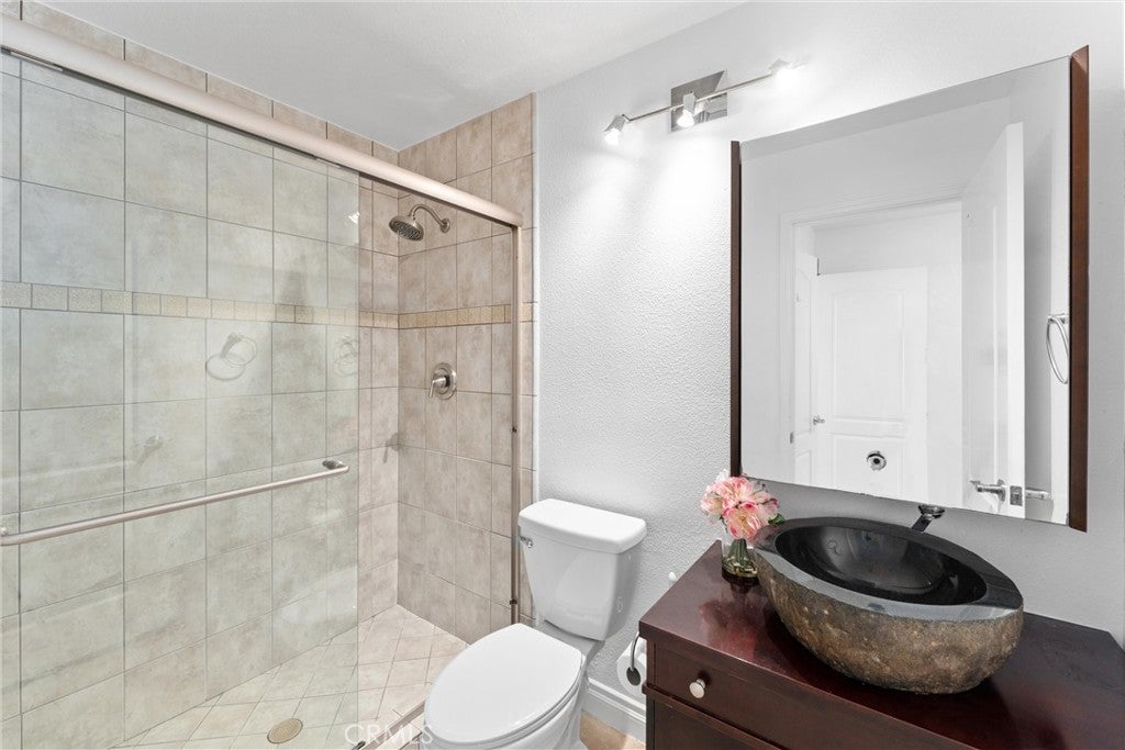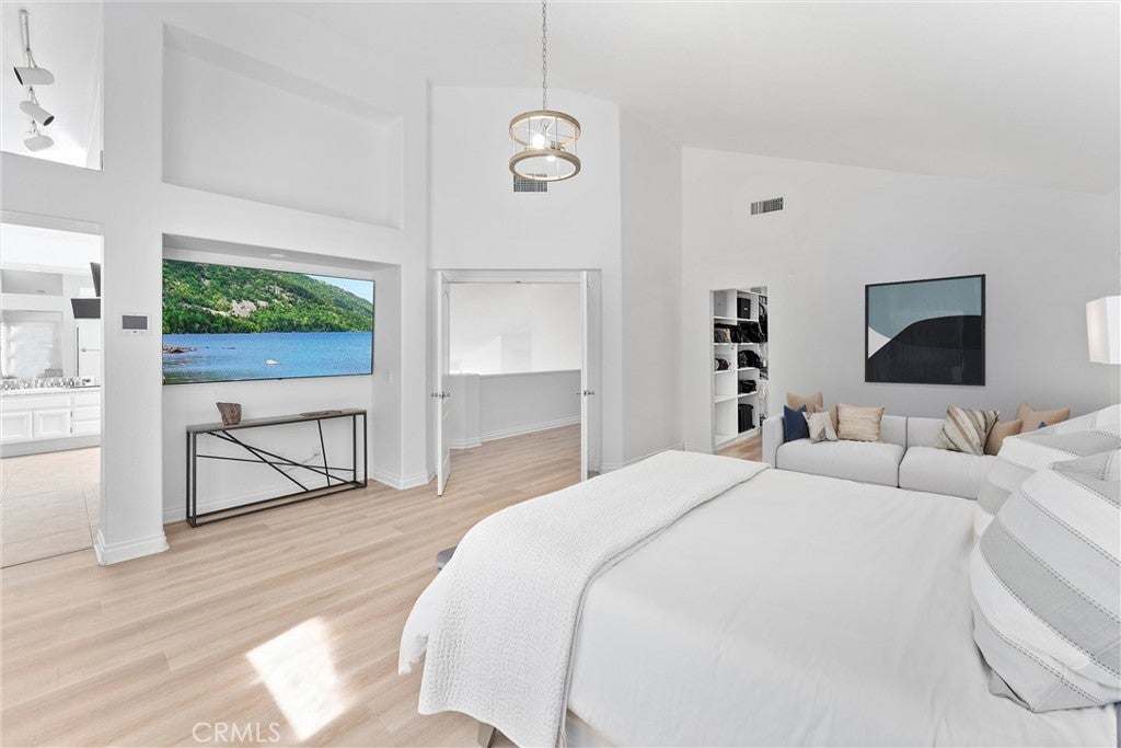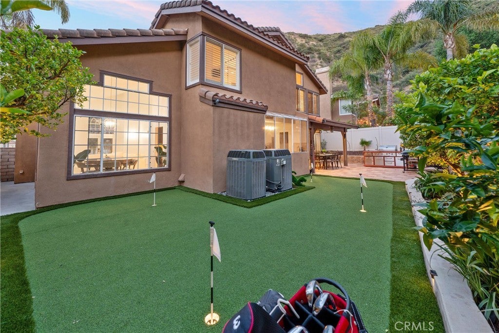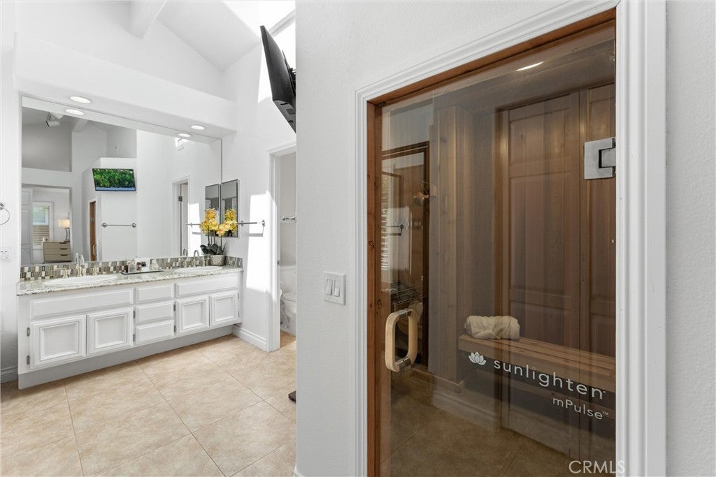EXECUTIVE HOME | PRIMARY SUITE WITH PRIVATE SAUNA | DOWNSTAIRS GUEST BEDROOM/BATHROOM | PRIVATE BACKYARD PUTTING GREEN | CUSTOM WALK-IN CLOSETS | NO MELLO ROOS | Welcome to this luxury Executive Home nestled next to Yorba Linda and Anaheim Hills in Corona's highly sought-after Sierra Del Oro community—where upscale living meets exceptional privacy and elegance. From the moment you arrive, you're greeted by a sweeping 8-car driveway, manicured landscaping, and an elegant double-door entry that sets the tone for what lies within. Step inside to find soaring ceilings, travertine floors on main level and luxury plank flooring upstairs. Sunlight pours in through expansive windows highlighting the open-concept design and the natural outdoor beauty. The formal living and family rooms feature cozy fireplaces, ideal for refined gatherings or intimate evenings. The gourmet kitchen is a showstopper, boasting leathered granite countertops, center island, coffee bar, walk-in pantry, pendant lighting, and stainless-steel appliances including a 5-burner gas stovetop. The adjoining family room has a wet-bar with bar-top seating + double doors leading to an entertainer’s backyard. Downstairs offers a bedroom next to a beautifully upgraded bathroom—ideal for guests or multi-generational living. Upstairs, the Primary Suite is a retreat with an expansive sitting area and two custom closets, one of which is full-room size with its own luxury display-case island and large window for the perfect natural light while dressing for any occasion. The spa-inspired En-Suite Bathroom features a private dry sauna, deep soaking tub, dual skylights, and walk-in shower. Bedroom 4 is well sized and an oversized Loft with double doors serves as a spacious Bedroom 5 or ideal media room. The laundry room has ample cabinetry, and a 3-car garage includes an upgraded modern door + overhead storage. Outdoors, enjoy complete privacy with lush landscaping, fruit trees, and a serene ambiance. Host unforgettable gatherings, unwind under the covered patio featuring an overhead heater, or enjoy movie nights with a wall-mounted outdoor TV. There's space to dine, lounge, and play—including your very own private 4-Hole Putting Green! Day or night, this backyard offers a blend of comfort, elegance, and entertainment. Luxury living at its finest!