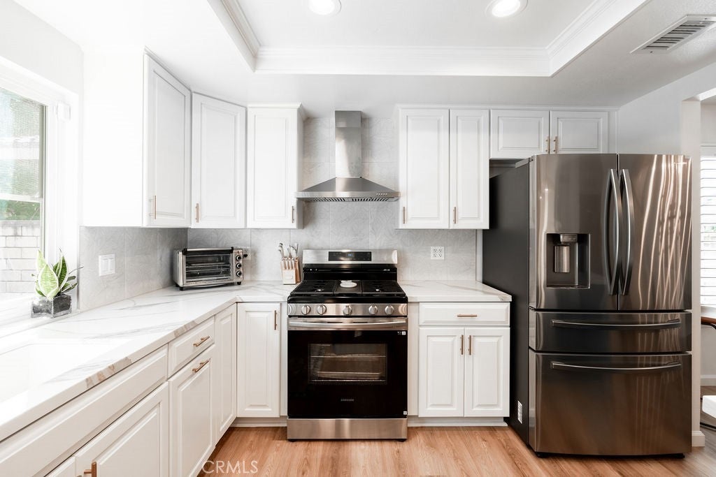Welcome to this beautifully updated 4-bedroom, 2.5-bath home in the desirable Serrano Park community of Lake Forest, ideally located just steps from the neighborhood park and pool. Inside, the home feels light, bright, and airy with an open floor plan that creates an inviting flow for both everyday living and entertaining. The newly remodeled kitchen is a standout feature, showcasing gorgeous gold-veined quartz countertops, a designer backsplash, and elegant gold accents throughout, giving the space a modern yet warm feel. The spacious backyard offers a peaceful retreat with mature trees creating a beautiful natural backdrop. Relax outdoors and enjoy your morning coffee with the gentle sounds of birds while taking in the tranquil setting. With its prime location, thoughtful updates, and access to the wonderful amenities Serrano Park has to offer, this home truly has it all. Don’t miss the opportunity to make it yours — schedule your private tour today.