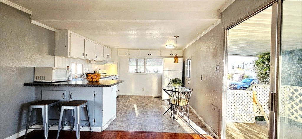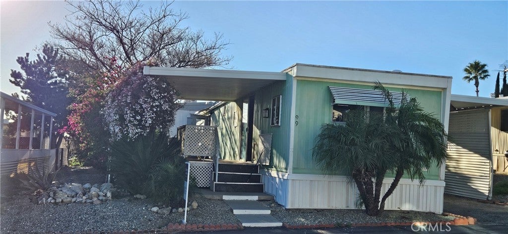 Welcome to your next chapter—where life gets simpler, lighter, and more enjoyable. Thinking about downsizing or making the most of your retirement years? This charming, tiny home offers the perfect opportunity to simplify your lifestyle and free up your time—and your nest egg—for what truly matters… whether that’s traveling, relaxing, or simply enjoying life at your own pace. Located in the safe, gated 55+ community of Twin View Estates in Banning, this cozy 2-bedroom, 1-bath single-wide home offers approximately 660 sq. ft. of easy, low-maintenance living. Inside, you’ll find a bright and airy open layout, where the living and dining areas flow seamlessly, creating a warm and welcoming space that feels just right—not too big, not too small. The kitchen offers practical cabinetry and a casual breakfast counter, perfect for simple meals and everyday comfort. This home is ideal for those ready to embrace a smaller, more intentional way of living without sacrificing comfort. Step outside and enjoy your own peaceful outdoor retreat, featuring mature flowering plants and a thriving lemon tree—perfect for quiet mornings or unwinding in the evening. The covered carport and patio provide shade and convenience, while the low-maintenance yard makes it easy to lock up and go whenever travel calls. Twin View Estates is a quiet, owner-occupied 55+ gated community designed for comfort and connection, offering amenities such as a community pool, indoor spa, clubhouse with gym, dog park, and convenient laundry just steps away. Centrally located near shopping, dining, medical facilities, and freeway access, this home offers an affordable way to enjoy retirement living with beautiful mountain surroundings. Simplify your life. Stretch your retirement. Come home to comfort, security, and ease. CASH ONLY | SOLD AS-IS
