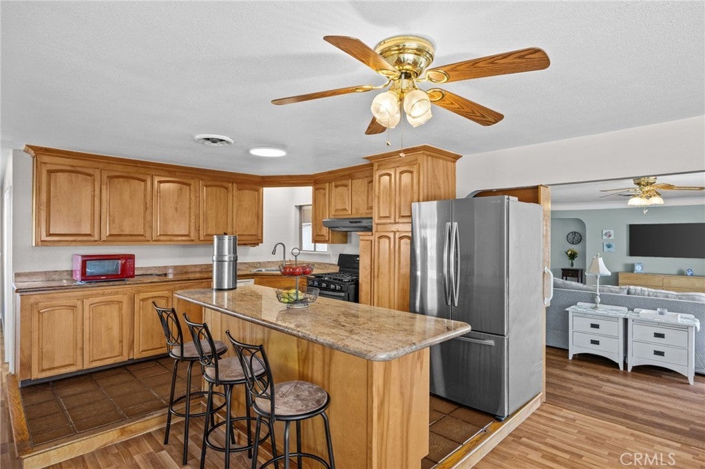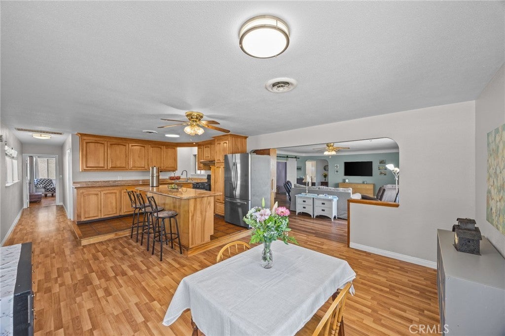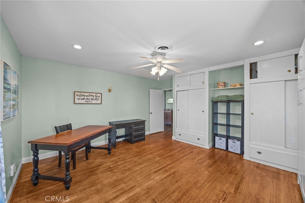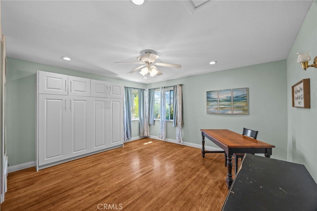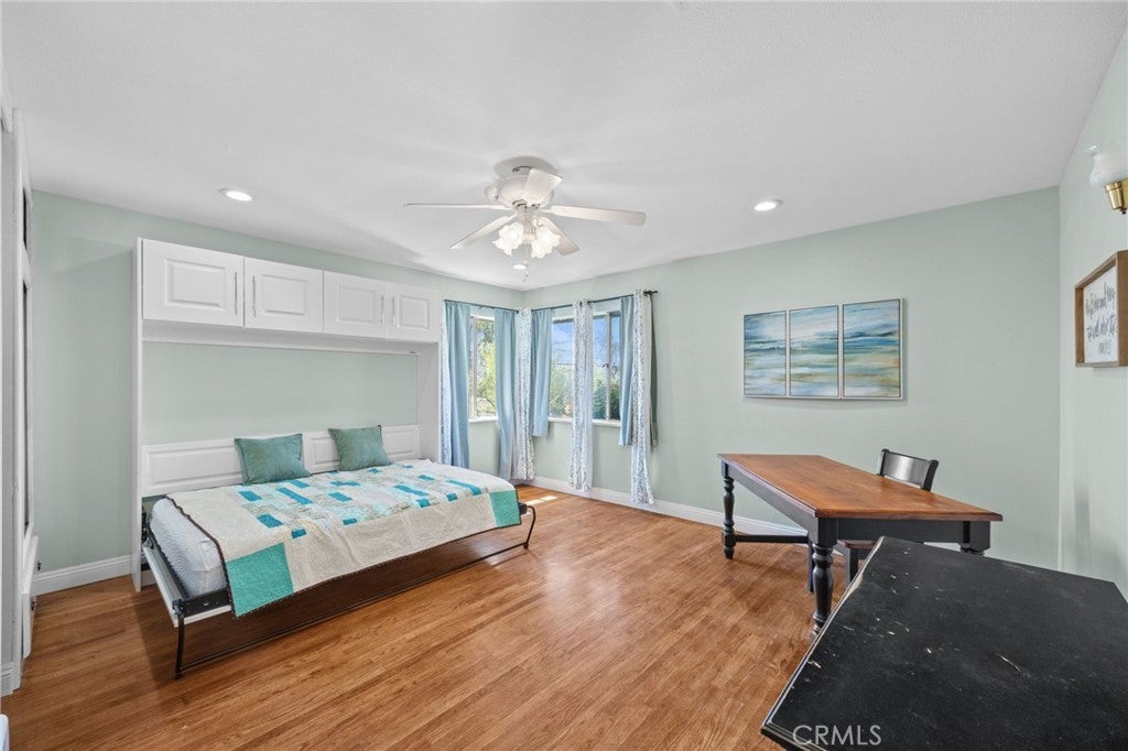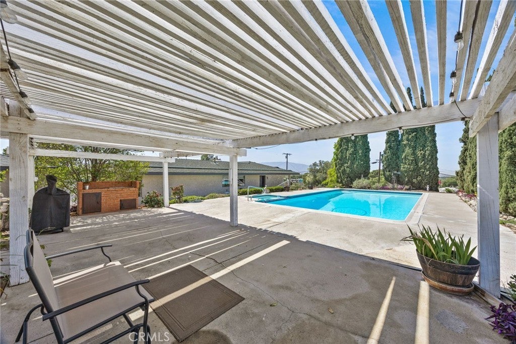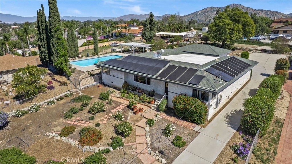 Discover this single-story mid-century modern ranch Pool Home on a 28,314 sq ft horse property lot in Norco, CA. Boasting 4 bedrooms and 2 upgraded bathrooms with walk-in showers, this home spans 2,224 sq ft, plus an 800 sq ft enclosed bonus/enclosed patio room in the middle of the house (not part of dwelling footage on tax roll). The custom kitchen features light oak cabinets, granite countertops, a center island, breakfast counter, gas range and stainless steel refrigerator, opening to a large dining area with stunning city views. Original hardwood floors in select rooms complement soft, inviting colors throughout the home. The primary bedroom is spacious and light-filled, while the primary bathroom offers a modern walk-in shower with custom tile and corner seat, plus floor-to-ceiling light oak cabinetry. The bonus/enclosed patio room is perfect for a workshop, game room, or home gym, complete with double French doors to outside & barn doors to living room. Step outside to a large pool with attached spa, surrounded by extensive concrete decking and evergreen trees. A large lattice patio creates a perfect entertaining area, all with breathtaking mountain and city views. Additional highlights include solar panels, oversized detached garage with storage/workshop space, and Norco horse trail access, all with convenient freeway access. Ideal for horse owners, equestrian families, multi-generational households, or buyers seeking a rural lifestyle with entertaining space, this Norco horse property also offers room to build an ADU with views, making it an exceptional opportunity.
