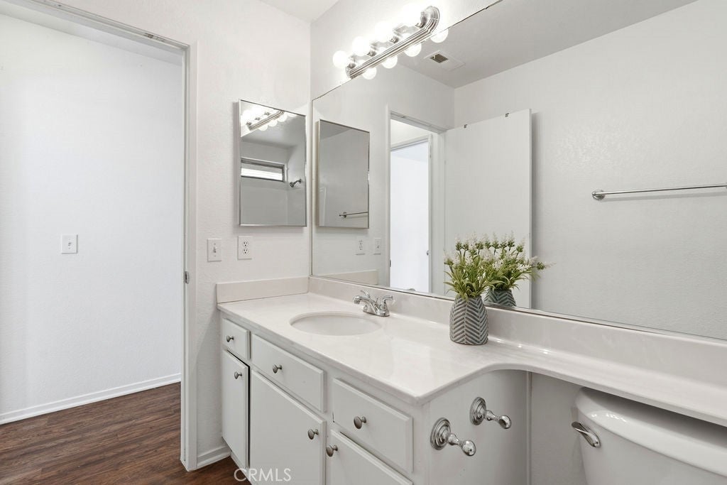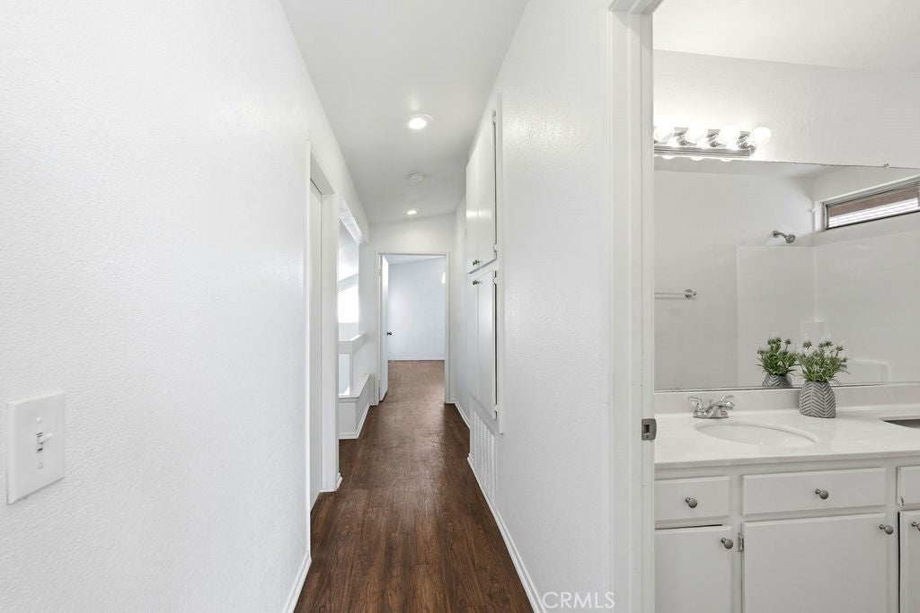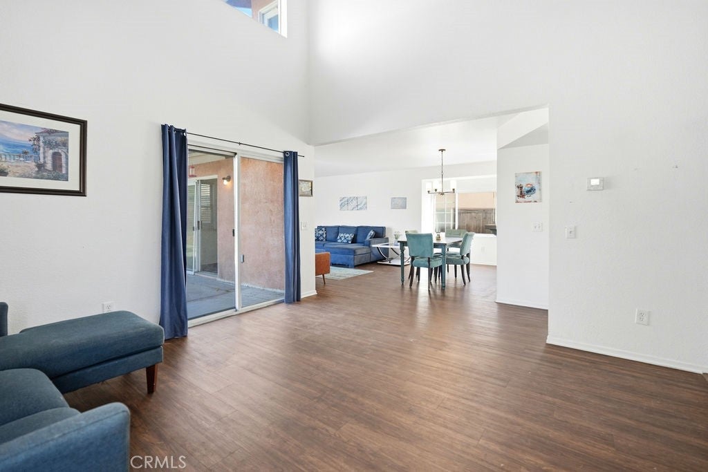 Experience elevated living in this beautifully designed 3 Bedroom, 2.5 Bath residence, featuring an open floor plan, high ceilings, and abundant natural light throughout. Ideally located in a commuter-friendly area near the 215 Freeway and Metrolink, this home blends comfort, convenience, and refined style. Inside, spacious living and dining areas are enhanced by lofted ceilings, a cozy brick fireplace, and double sliding doors that fill the home with sunlight, while laminate flooring throughout provides a clean, modern finish. The primary suite offers a private retreat with a large walk-in closet, dual sinks, tiled walk-in shower, and direct access to a private balcony, perfect for peaceful mornings or sunset views. Step outside to an expansive fenced backyard with grass pavers, ideal for entertaining, outdoor dining, gardening, or relaxing in your own private space. Conveniently located near shopping, restaurants, grocery stores, parks, schools, churches, and major commuter routes. This home delivers both luxury, comfort and everyday accessibility. Schedule your private tour today—opportunities like this don’t last.