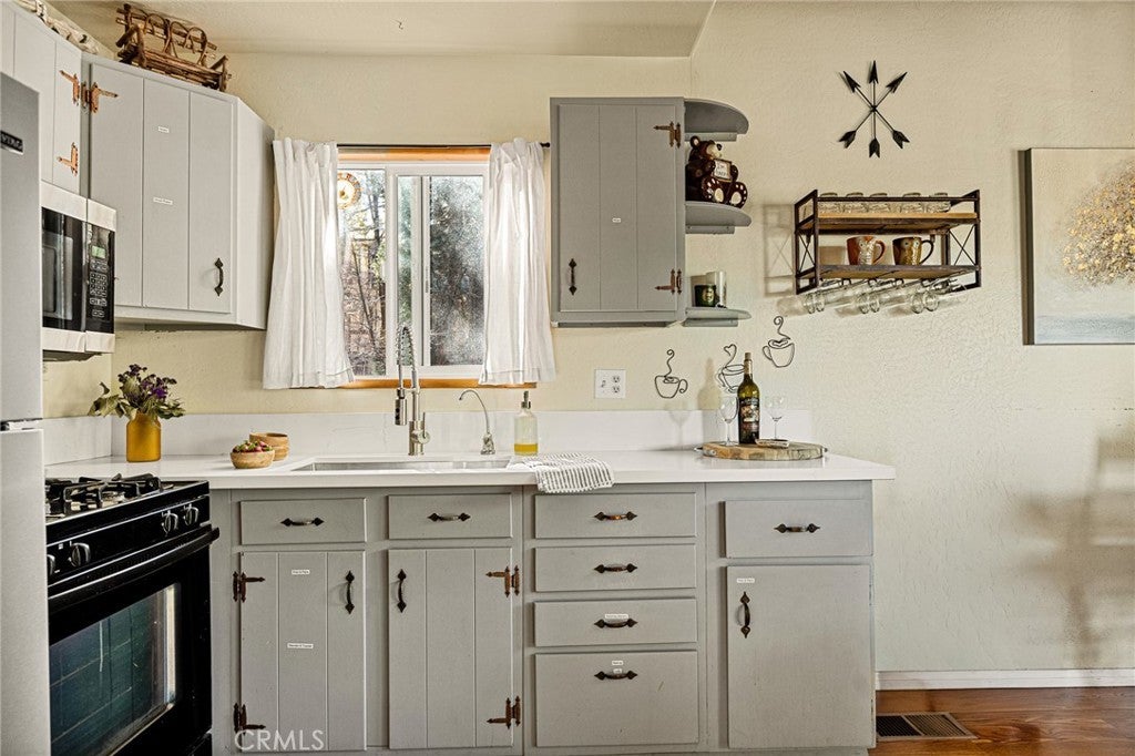 Incredible opportunity in one of Big Bear's most sought-after neighborhoods! Located near the end of a quiet cul-de-sac in Moonridge and adjacent to the national forest for endless hiking, snowshoeing, sledding and mountain biking opportunities right from the backyard! This beautiful home, recently updated with new flooring and kitchen counters, features a cozy living room with beamed ceilings, 3 bedrooms and 2 bathrooms (one bed and bath on main level for easy living). This property features dual pane windows and sliders throughout, ample parking and a new jacuzzi overlooking the forest and has been a successful short term as well as long term rental. Easy access to the ski slopes, the newly enhanced Moonridge Village with restaurants, shops and small businesses. Quiet and serene, yet minutes to all the best Big Bear has to offer!