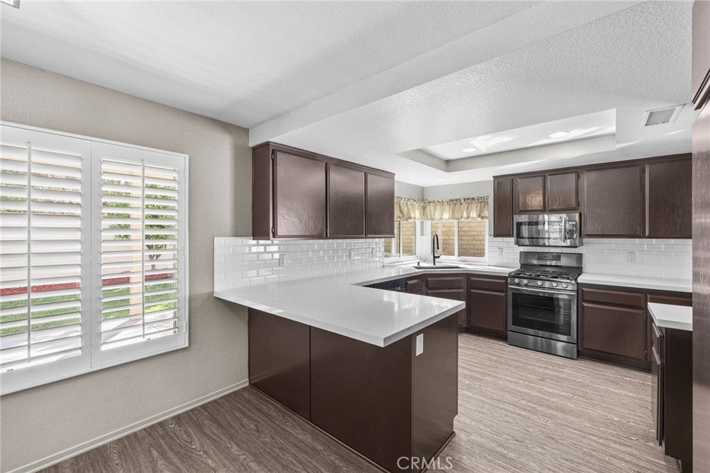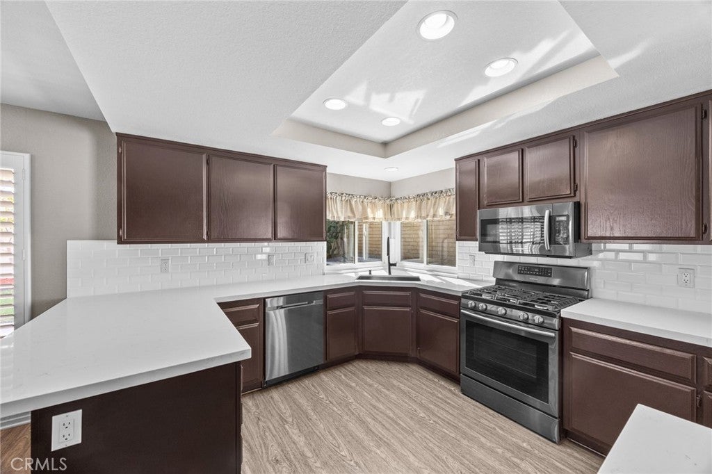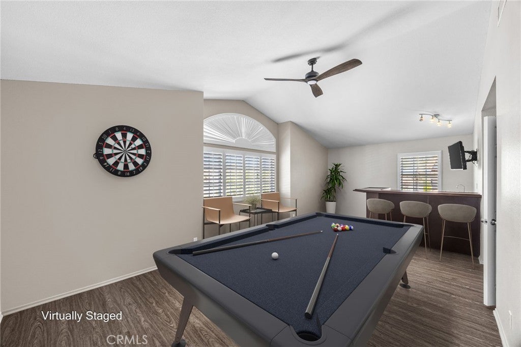 Welcome to this beautifully maintained turnkey home offering 4 bedrooms, 3 full bathrooms, and 2,603 sq. ft. of thoughtfully designed living space. From the moment you step inside, you’ll appreciate the open and airy feel created by vaulted ceilings and an abundance of natural light. The spacious primary suite serves as a private retreat, featuring vaulted ceilings, two walk-in closets, and a well-appointed en-suite bathroom complete with a separate soaking tub and walk-in shower. Upstairs, you’ll find an additional full bathroom with dual sinks and a tub/shower combination, ideal for family or guests. Designed for both comfort and entertaining, the home offers a generous family room, a separate formal dining area, and a large living room with vaulted ceilings. The kitchen is upgraded with quartz countertops, subway tile backsplash, and ample cabinetry, providing both style and functionality. A standout feature is the bonus/game room with a wet bar, perfect for entertaining or creating a customized space to fit your lifestyle. Step outside to a covered patio and beautifully landscaped backyard with fruit trees, offering a relaxing setting for outdoor enjoyment. Conveniently located near hiking trails, shopping, dining, and freeway access, this home combines comfort, space, and location—making it an exceptional opportunity you won’t want to miss.