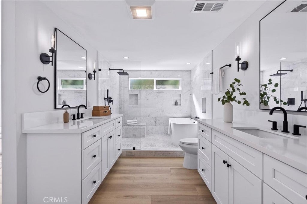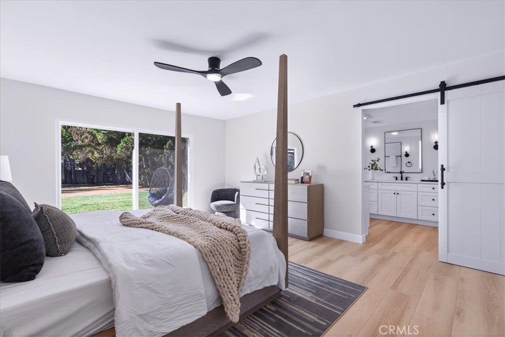 This might be your dream home. 9847 Bothwell Road in the sought-after Devonshire Highlands neighborhood of Northridge offers an unexpected retreat in one of the most desirable areas of the northern San Fernando Valley. Custom finishes and designer accents bring a subtle modern aesthetic home. Large sliding doors open to the backyard, with a very spacious pool sized lot is ready for your imagination and personal style. The result is seamless indoor outdoor living that defines the Southern California lifestyle. Inside, this single-story Northridge luxury home unfolds into multiple living areas, including two family or den spaces separated by an impressive double-sided fireplace. The open floor plan offers flexibility for dining, a home office, or creative production. The kitchen features new appliances, cabinets counters and backsplash. Throughout the home, you’ll find designer hardware, and thoughtful finishes. The primary suite feels like a private retreat, with a spa-inspired bath and rich natural materials that create a calm, resort-like experience. With four total bedrooms and two and a half custom baths, this is a home unlike any other in the Valley. The property is also fully remodeled — a rare find among San Fernando Valley luxury homes. Set within the Devonshire Highlands tract, known for its spacious lots, mature trees, and wide streets, the neighborhood blends a quiet suburban feel with city convenience. Residents enjoy proximity to Porter Ranch shopping and dining, CSUN’s cultural venues, and easy freeway access to Burbank, Studio City, and West Los Angeles. The area’s reputation for long-term ownership and well-maintained properties makes it one of Northridge’s most desirable communities for buyers seeking space, privacy, and enduring value.
