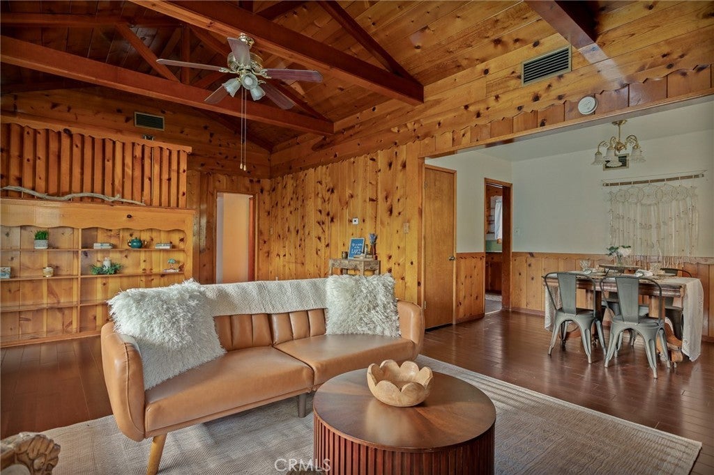 Tucked just two blocks from the heart of Crestline Village and the Lake Gregory trail, this charming 1950s cabin captures the feeling of a true mountain escape—where everything you love is within walking distance, yet nature still feels like your backyard. Set in desirable “walk-to” location, you can stroll to the lake, enjoy summer sales, or catch Fourth of July fireworks without ever needing to drive. Morning coffee, evening dinners, and weekend wandering are all right outside your door. Inside, the home is rich with vintage character—warm wood detailing, custom built-in bookcase, and a cozy, cabin-inspired aesthetic that feels both nostalgic and inviting. The layout offers three bedrooms, two baths, an office, plus additional flex space, perfect for a game room, second living area, or creative retreat. Outside, the property is designed for ease and enjoyment. Lightly landscaped front and back yards provide just enough greenery with low maintenance, creating space to relax, gather, or simply take in the fresh mountain air. Practical features like air conditioning, level parking and an attached one-car garage add everyday convenience—something not always easy to find in mountain homes. Whether you’re looking for a weekend getaway, a full-time residence, or a place that feels like summer camp year-round, this Crestline gem delivers a rare blend of location, charm, and livability. Spring is calling... so is this front porch!