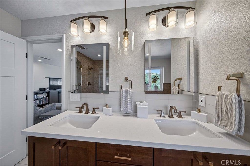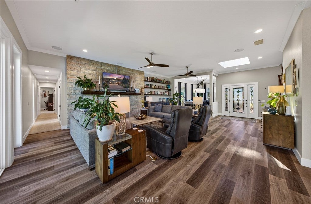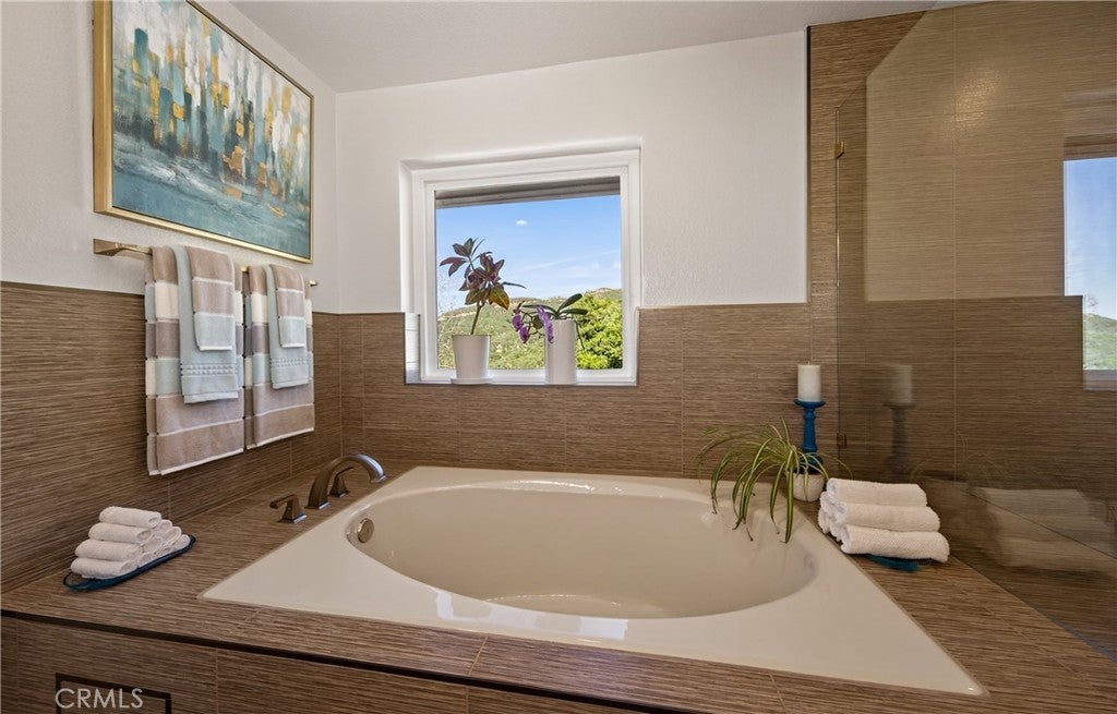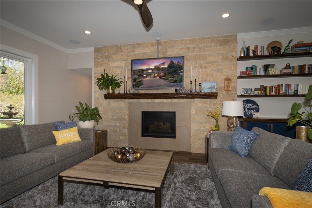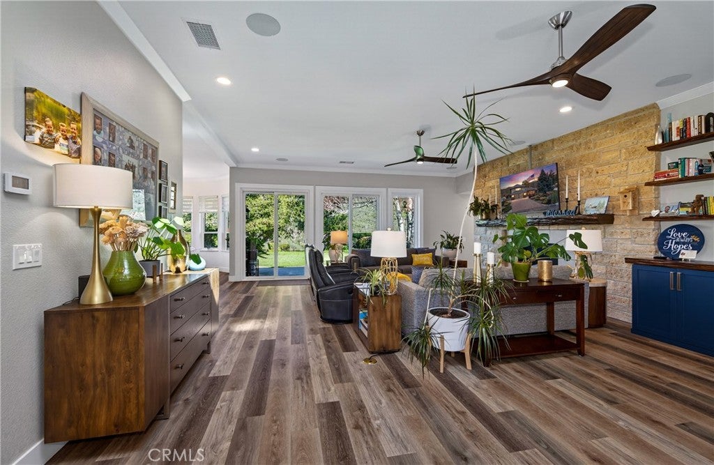 A RARE HILLSIDE RETREAT BACKING TO WILDWOOD CANYON where privacy, views, and design come together in a one-of-a-kind setting. This home offers unmatched privacy, breathtaking natural surroundings, and no rear neighbors. Enjoy daily encounters with nature, where deer, and native wildlife create a peaceful, ever-changing backdrop and experience. This upgraded home has undergone over $250,000 in improvements, blending modern comfort with custom upgrades. The inviting living room with expansive windows that frame breathtaking canyon views creates a stunning backdrop of natural beauty. Jaw dropping focal points are the floor to ceiling stone fireplace with thermostat control, and floating shelves with custom built-in storage with pull-out shelving. The updated kitchen was tastefully designed with blue cabinetry, iced with gold hardware, custom backsplash, and pull-out shelving. A stunning casual dining space wrapped in windows located in the kitchen, where every meal is accompanied by serene views, seamlessly bringing the beauty of the outdoors in. The circular formal dining room is a standout feature, surrounded by windows that capture the beauty of the outdoors from every angle with ample space for entertaining. Downstairs offers two guest bedrooms, and a full bathroom. As you enter the home from the garage, conveniently located is the indoor laundry room with ample storage, and an additional guest bath. Upstairs, the elevated loft style primary suite creates a semi-private retreat with unique touches including a pop-up TV hidden within custom cabinetry, city light views and additional space ideal for a lounge area. A spacious walk-in closet includes a walk-out attic for downstairs and pull-down attic access for upstairs. The updated primary bath features a vanity with dual sinks and a walk-in shower. Step outside to enjoy a landscaped backyard designed for relaxation and entertaining. While a large portion of the rear yard extends down the steep slope beyond the flat grassy area, the property provides stunning canyon views that enhances the sense of space, privacy, and connection to nature. The backyard fountain stays with the property and provides a relaxing setting as you enjoy the canyon views. Additional highlights include PAID SOLAR, an OWNED PROPANE TANK, NEWER HEAT PUMP with zones, a septic system, and an oversized 2-car garage. This is more than a home—it’s a private retreat with character and an unmatched setting.