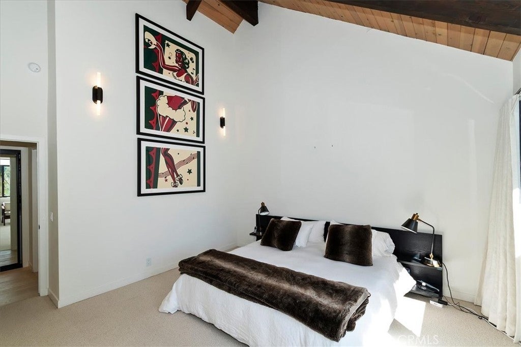 - Interior FeaturesBeamed Ceilings, Balcony, Ceiling Fan(s), Cathedral Ceiling(s), Granite Counters, High Ceilings, Laminate Counters, Multiple Staircases, Bar, Bedroom on Main Level