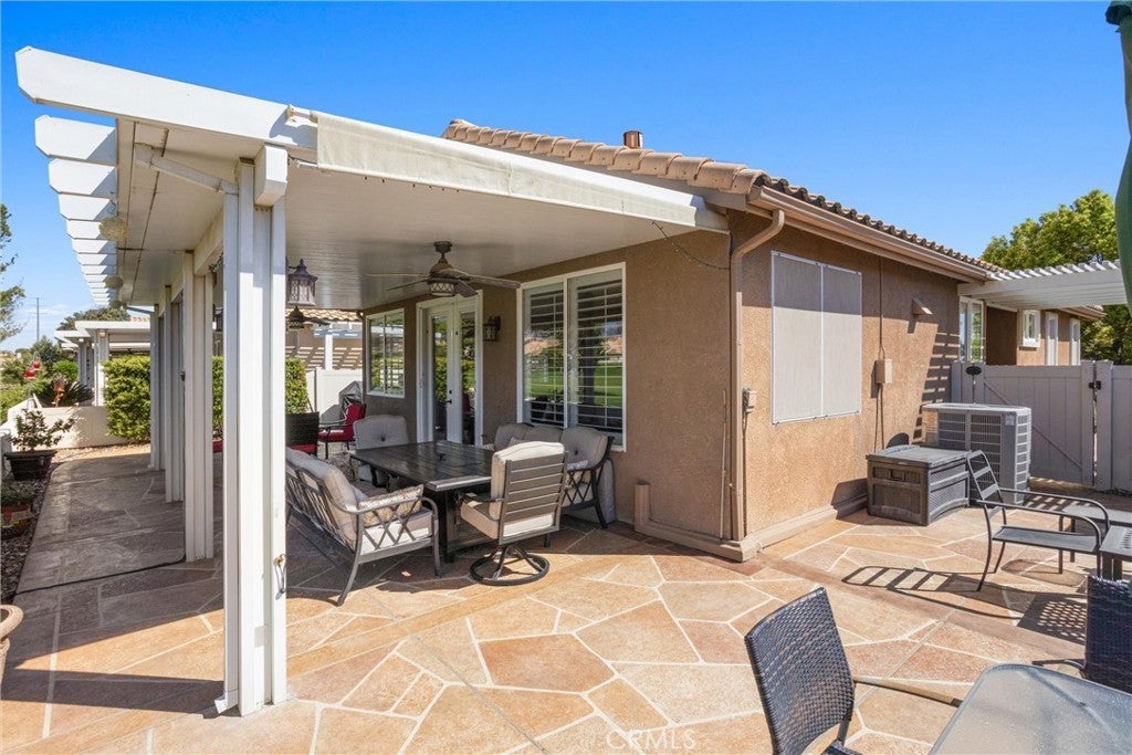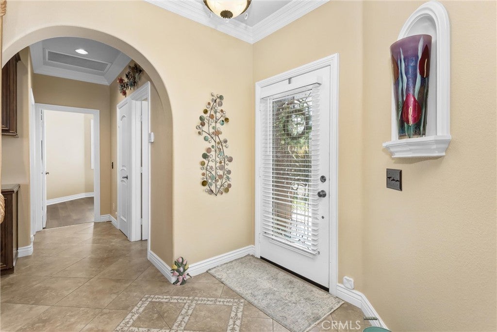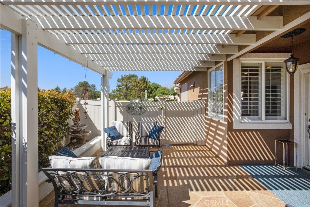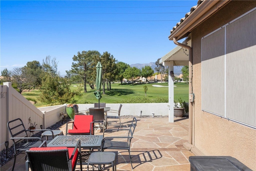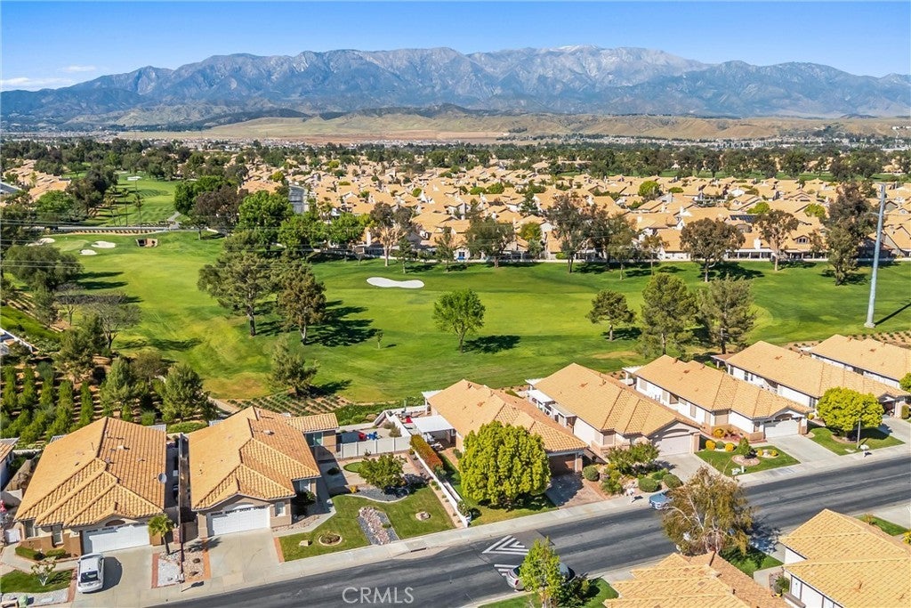 Where Views, Upgrades & Lifestyle Meet – Exceptional Golf Course Home!! From the moment you arrive, this beautifully upgraded Magnolia model impresses with a hand-crafted textured concrete driveway and walkways, manicured landscaping, and a tranquil front fountain. Beyond the wrought-iron gate, a private courtyard with sitting area, grass, and direct doggie door access offers a peaceful and functional outdoor space. Inside, the high-end, fully remodeled interior showcases new luxury vinyl tile flooring in the living room and bedrooms, tile flooring in the kitchen, dining, and baths, and mosaic tile in the foyer and hallways. Elegant finishes include crown molding, plantation shutters, recessed lighting, custom arched entries, and a see-through gas fireplace with custom built-in entertainment center. The open-concept kitchen features KitchenAid gas oven & cooktop, KitchenAid refrigerator/freezer with dual drawers, granite countertops, tile backsplash, and custom cabinetry throughout. Matching upgrades continue into the bathrooms with beautifully tiled showers. The primary suite offers dual closets, including a walk-in and secondary closet with direct laundry room access, plus tall French doors leading to a private sitting area with stunning golf course views. Additional features include Samsung washer & dryer, 16-SEER HVAC system, 220V outlet for spa, and garage with built-in cabinets, overhead storage, and golf cart space. The backyard is ideally positioned on Hole #14 with unobstructed golf course and mountain views, and a large covered patio with insulated cover, lighting, and ceiling fan—perfect for entertaining. Gated wrought iron fencing adds both charm and security. Located near the South Clubhouse, Sun Lakes offers resort-style living with 2 golf courses, 3 clubhouses, pools, spa, fitness center, pickleball, tennis, dining, and a vibrant social lifestyle. HOA includes Spectrum cable and internet. VA assumable loan available for qualified buyers at 4.87%. Move-in ready with exceptional upgrades, views, and lifestyle.
