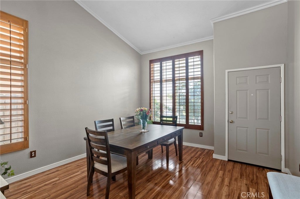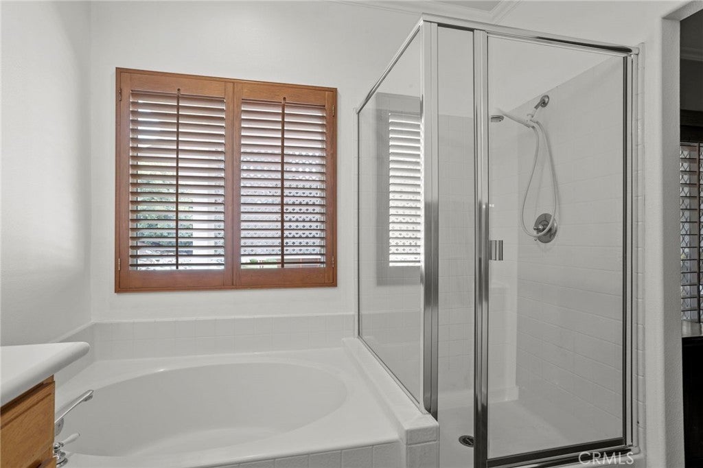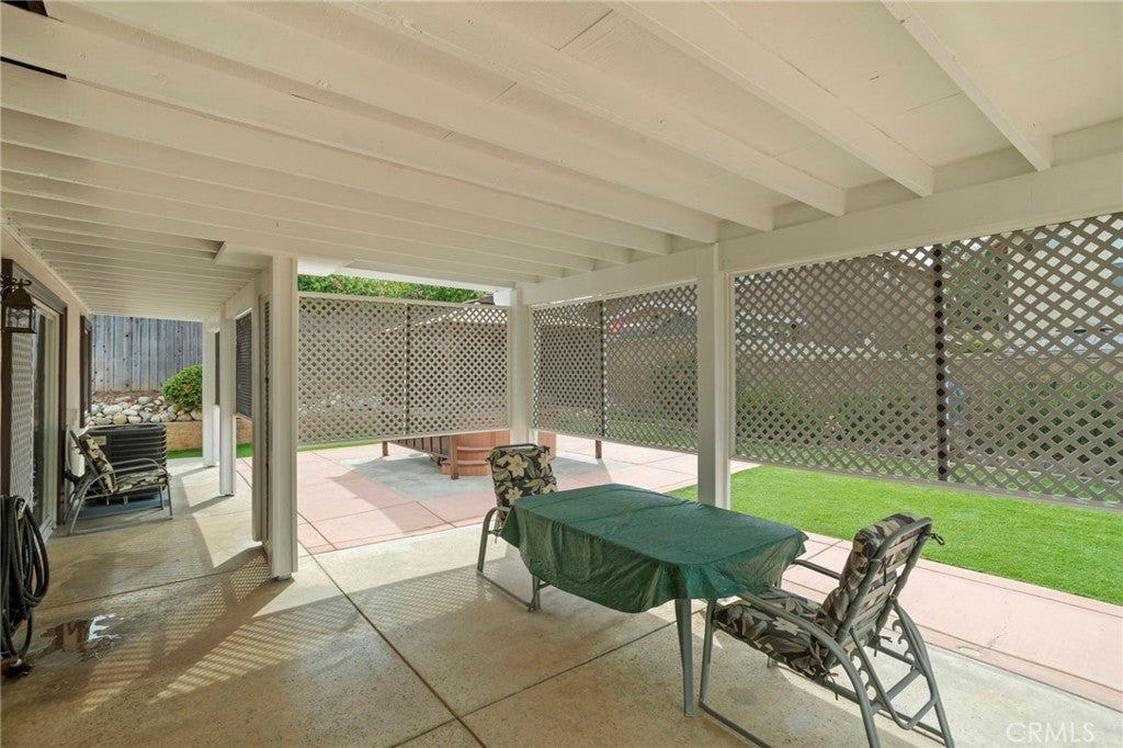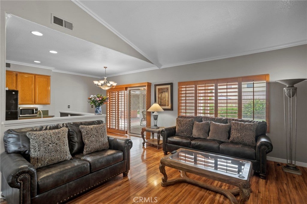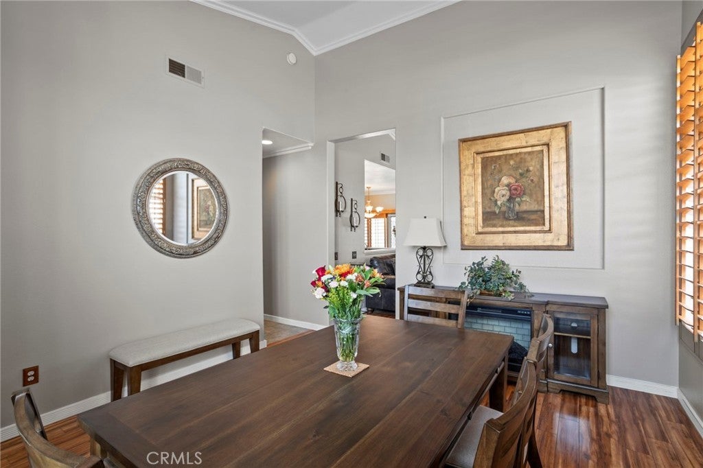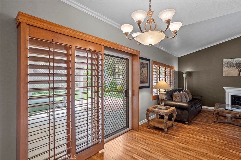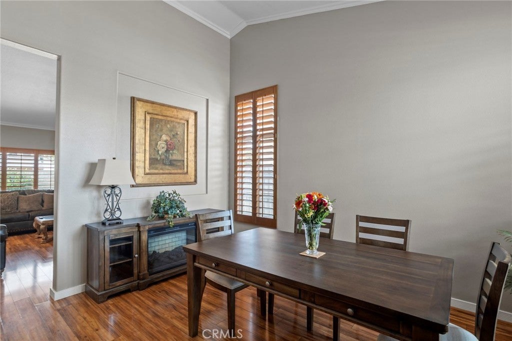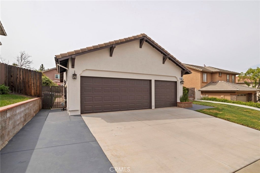 Located in South Corona’s Chase Ranch, this home offers inviting curb appeal and a well-designed layout that blends functionality with everyday comfort. A formal sitting room or dining area welcomes you in, leading to an open floor plan ideal for both daily living and entertaining. Inside, plantation shutters, crown moulding, and high quality laminate flooring create a cohesive and polished interior. The family room is centered around a fireplace with custom iron doors, adding warmth and character. Natural light fills the space through two sliding glass doors, located in the dining room and a bedroom, providing an easy connection to the outdoors. The kitchen has been thoughtfully updated with a new faucet, garbage disposal, and dishwasher with a 6-year warranty, offering both style and reliability. Updated door hardware throughout and the inclusion of a washer and dryer enhance the home’s move-in ready appeal. The primary suite features a walk-in closet and an updated bathroom with a new toilet and shower door. The guest bathroom has also been refreshed with a new toilet, continuing the consistent improvements throughout the home. The backyard is designed for both relaxation and entertaining, featuring high quality artificial turf for low maintenance living, a full-length patio cover for shaded outdoor enjoyment, and a gas BBQ hookup. The spa, gazebo, and shed are all included, offering added versatility. Fencing has been updated on both sides, and in the front yard, the property line extends approximately five feet beyond the retaining wall, providing additional usable driveway space. Additional highlights include double panel garage doors, two garage door openers, built-in garage cabinets, a water heater with expansion tank, and a newly installed air conditioning system for year-round comfort. With no HOA and no Mello-Roos, this home is conveniently located near shopping, freeways, and within a highly regarded school district.