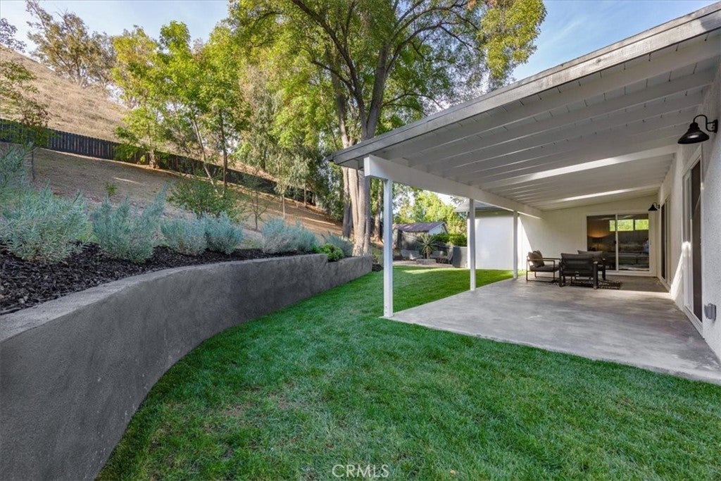 Tranquility awaits at this incredibly soulful retreat in one of the most coveted pockets of Woodland Hills. Set amongst an abundance of mature trees and situated on a expansive homesite, this stunning residence makes you feel like you're a world away from the city, while conveniently located just a short distance to all of the fantastic shops, restaurants, and markets that Woodland Hills and nearby Calabasas have to offer. Step through the charming entry to find open and airy spaces, all of which are impeccably designed and exude the utmost attention to detail. The dining room and spacious family room have sliding doors that open to the serene outdoors. The light-filled formal dining room flows seamlessly into the kitchen for effortless entertaining. The impressive kitchen is a Chef's dream and is well-appointed with stainless steel appliances - ample cabinet and countertop space, tons of natural light. An adjoining laundry room provides extra storage and garage access. Three generously sized guest bedrooms offer leafy views and share a beautifully designed bathroom with new tile in the shower and marble tile flooring. The home's primary bedroom is simply heavenly, featuring ample closet space, and a spa inspired en-suite bathroom with a marble tiled shower that is bathed in light. Sliding glass doors lead you to the absolutely magical outdoors. Here you'll discover a sprawling yard with multiple areas to lounge and dine, and fire pit, all while experiencing total privacy and looking out to a canopy of trees in every direction. The dreamy outdoor spaces provide the perfect setting for weekend brunches and dinner parties with family and friends. Additional features of the property include new windows, new roof and a new water heater. This is Southern California living at its best.