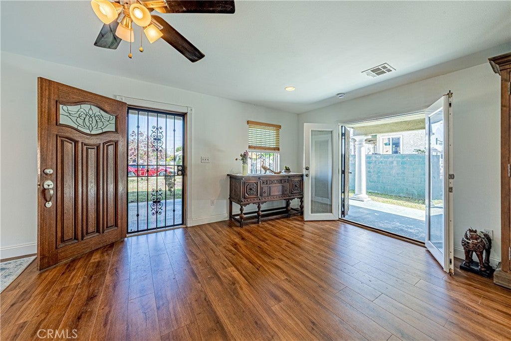 Rare opportunity to own a newer-built home (2011) in a neighborhood primarily known for older properties with crawl space foundations. This well-designed residence offers a spacious open-concept layout, where the expansive living room seamlessly connects to the dining area and kitchen—ideal for both everyday living and effortless entertaining. Two elegant French doors open to the side patio, creating a desirable indoor-outdoor flow. The first floor features a generously sized bedroom with multiple access points, perfect for guests, extended family, or flexible living arrangements. A convenient laundry room with direct backyard access adds everyday functionality. Upstairs, you’ll find 3 additional bedrooms and a full bathroom. One bedroom offers a private balcony, providing a unique retreat. A versatile bonus room adds valuable flex space—ideal for a home office, gym, or playroom. Recent upgrades include fully renovated flooring, recessed lighting throughout, and a new tankless water heater for enhanced efficiency. A long driveway leads to a spacious two-car garage, while the expansive backyard—with alley access—offers excellent potential for an ADU. Perfect for those seeking space, flexibility, and future opportunity, this home truly has it all.