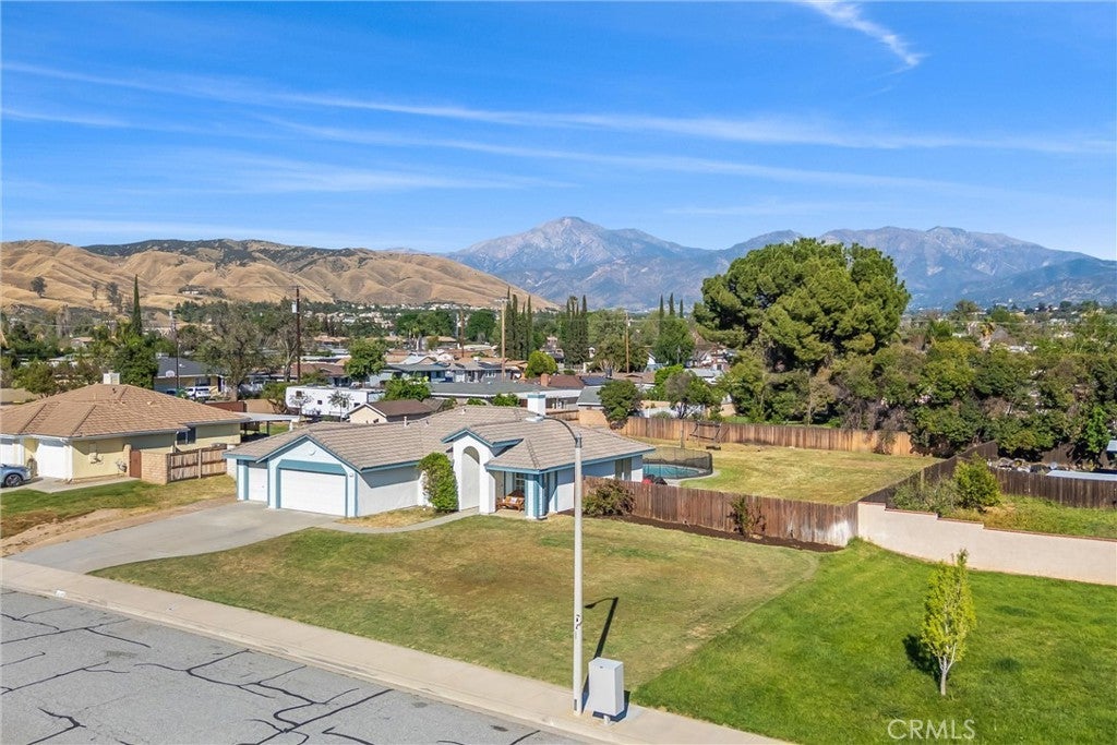 Welcome to Paradise! 12329 Paradise Lane is a beautiful SINGLE-STORY POOL HOME situated on a quiet cul-de-sac in Yucaipa, set on just under HALF AN ACRE with a 3-CAR GARAGE and room to truly spread out. Thoughtfully designed, this home features 3 BEDROOMS, 2 BATHROOMS, and a VERSATILE DEN that can easily serve as a 4th bedroom, office, or flex space to fit your needs. Step inside to a warm and inviting living room anchored by a stunning STACKED STONE FIREPLACE WITH A CUSTOM MANTLE—perfect for relaxing evenings at home. Recent updates include a FRESHLY PAINTED EXTERIOR AND NEWER CARPET. The PRIMARY SUITE offers a private retreat with dual closets and an en-suite bathroom featuring a dual vanity and walk-in shower. An indoor laundry room adds everyday convenience. Out back is where this home truly shines. The EXPANSIVE BACKYARD is built for entertaining, complete with a SPARKLING POOL AND SPA with recently updated equipment. Take in the MOUNTAIN VIEWS, host unforgettable gatherings, or enjoy front-row seats to 4th of July fireworks—all from the comfort of your own yard. With RV PARKING, a dedicated RV GATE, and ample space for all your toys, plant a garden or perhaps to build an ADU, this property offers both freedom and functionality. This is more than a home—it’s where your next chapter truly begins.