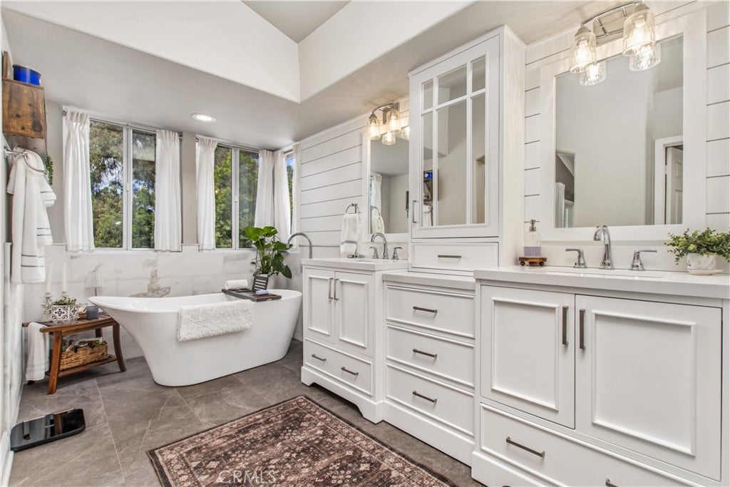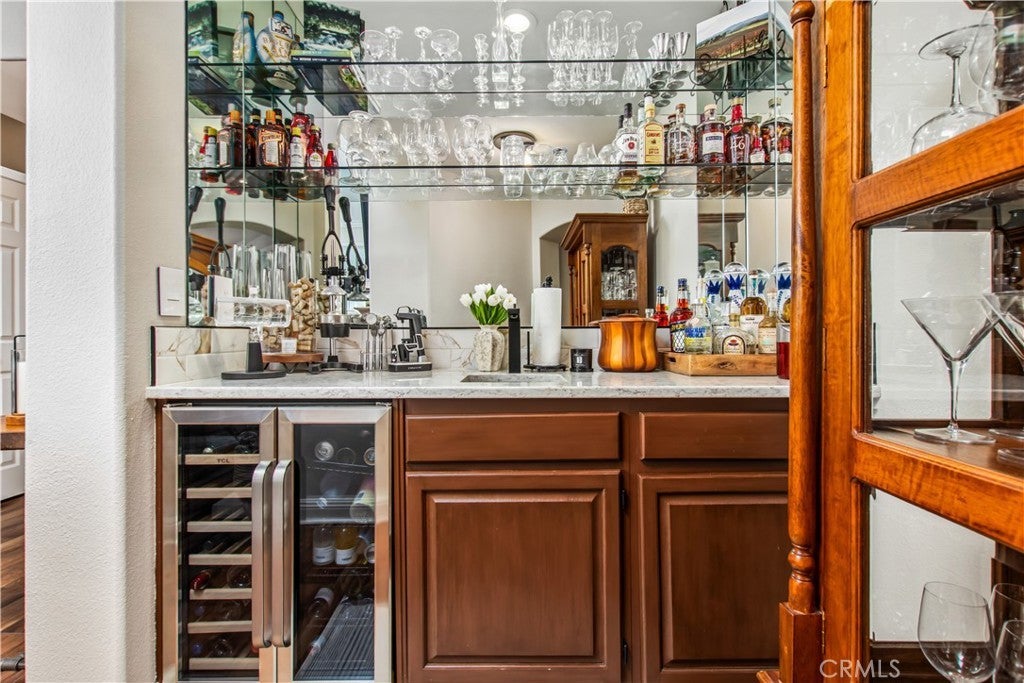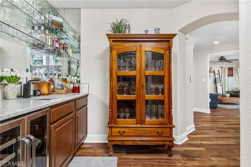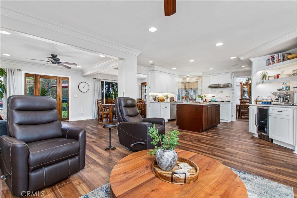 Beautifully renovated 4 bedroom, 3 bathroom home with a 3 car garage, ideally positioned on a private view lot backing to a park with no rear neighbors. Located in a pride-of-ownership neighborhood known for friendly neighbors and a peaceful setting, this move-in ready home offers elevated views, privacy, and exceptional indoor-outdoor living. Inside, the open-concept layout is enhanced by soaring cathedral ceilings, custom built-in shelving, and thoughtful upgrades throughout. The home makes a striking first impression with Spanish-style alder wood and wrought iron double front doors, complemented by upgraded wrought iron stair rails that add architectural character. The remodeled kitchen features a large island with pull-out trash, quartz countertops, white shaker soft-close cabinetry, Kohler farmhouse sink, coffee bar with open shelving, under-cabinet lighting, and upgraded stainless appliances including Bosch double ovens, cooktop, and dishwasher. The spacious primary suite is a true retreat, complete with a private upper deck, sitting nook, cedar-lined walk-in closet, and a spa-inspired bathroom featuring a soaking tub, shiplap accents, custom storage tower with built-in electrical, and shower seating. A standout feature of the home is the custom wet bar with glass shelving, wine and beverage refrigerator, and upgraded sink and faucet, creating the perfect space for entertaining. Additional interior highlights include Italian porcelain wood-look tile, solid oak stairs and landing, new carpet, upgraded secondary bathrooms with quartz counters, newer sliders, select newer windows, upgraded interior doors, a 3-zone A/C system with intelligent thermostat, and a whole house fan for added efficiency and comfort. The backyard is a private escape with no neighbors behind and is designed for both relaxation and entertaining, featuring mature landscaping, terraced hardscape, two covered patios, gas fire pit, and a hot tub. Exterior improvements also include vinyl fencing with gate, roll-up garage doors, and a 4-zone automatic sprinkler and drip irrigation system. This is a rare opportunity to own a turnkey home with privacy, views, and extensive upgrades in a truly special setting.