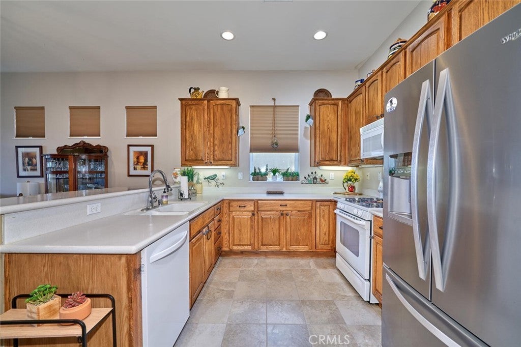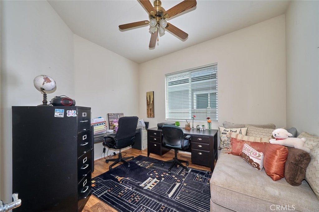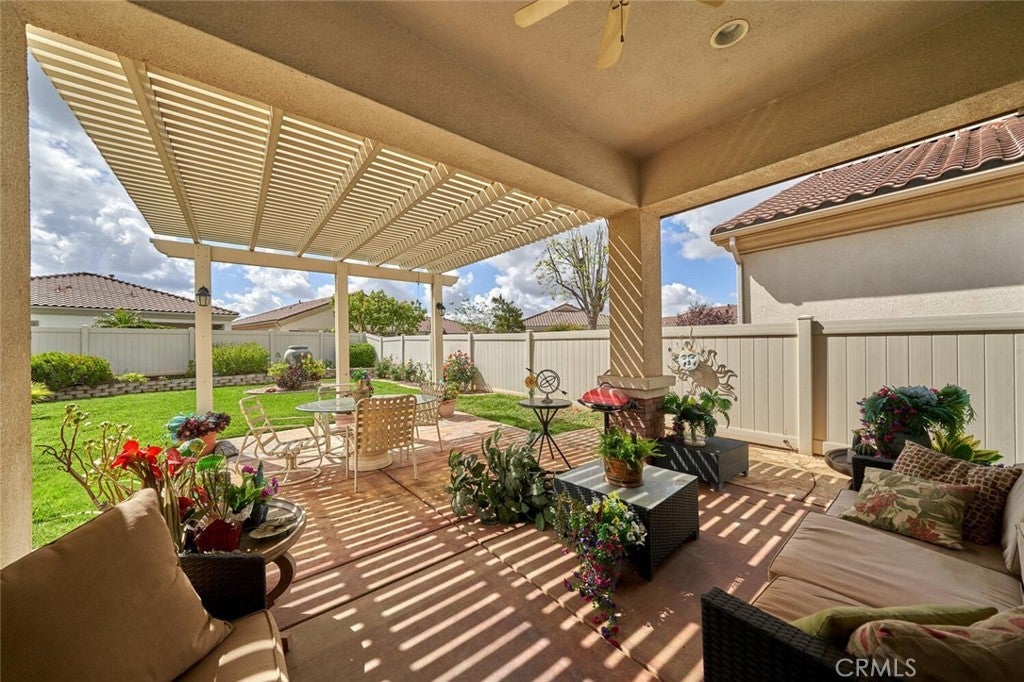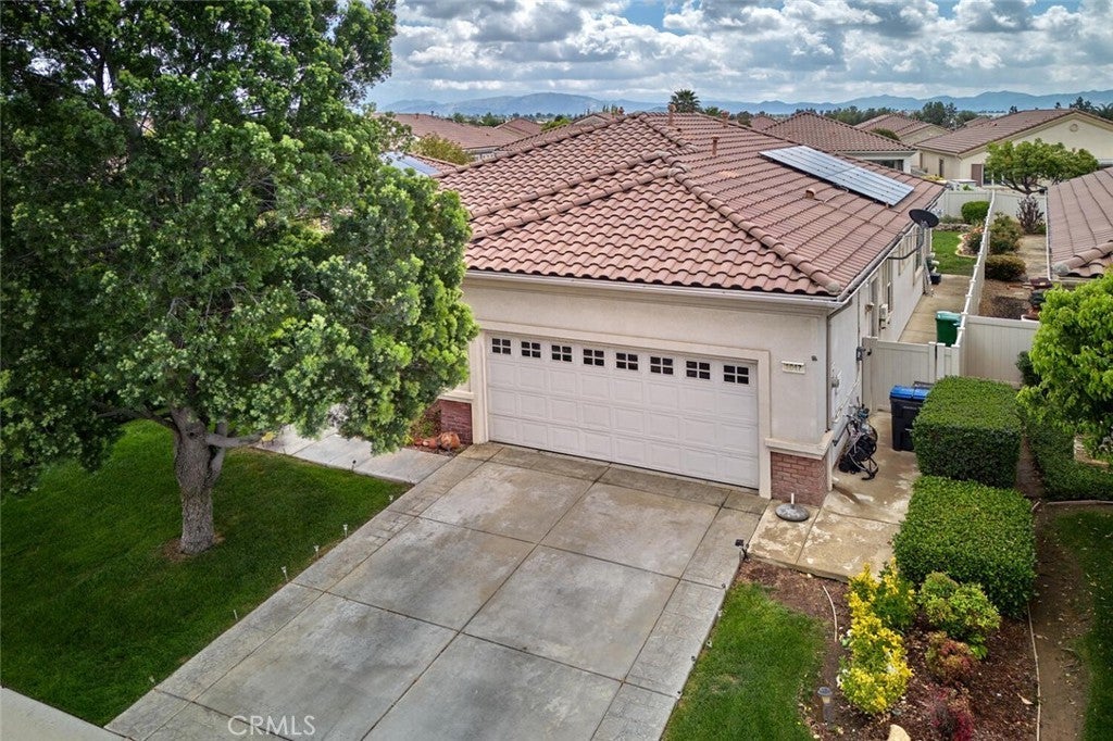 This charming single-story residence presents an exceptional opportunity for an enriched lifestyle within the highly desirable 55+ community of Solera in Beaumont. Perfectly situated on one of Solera's most picturesque streets. The interior features a well-appointed layout, including two comfortable bedrooms, two full bathrooms, and a versatile office/den. Tile and durable laminate flooring extend throughout the main living areas, while the bedrooms provide a cozy retreat with carpeting. At the heart of the home, the kitchen boasts beautifully stained cabinetry, providing ample storage. Step outside to discover a backyard that offers generous space for relaxation, gardening, and entertainment. Internet and basic cable TV are included and paid through the HOA. Home has solar (lease: $166.00 month). Newer air conditioner! Discover the vibrant, resort-style living at Solera. The centerpiece of the community is the clubhouse with a state-of-the -art fitness center, indoor walking tract, tennis and bocce ball courts, a pool and spa, billiards room, library, and versatile meeting/banquet spaces. Residents love the endless social scene: clubs, classes, events, and group activities. Positioned near the I-10, minutes from Cabazon Outlets, Morongo Casino, championship golf and the vibrant energy of Palm Springs. Welcome to the good life!