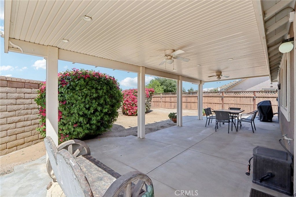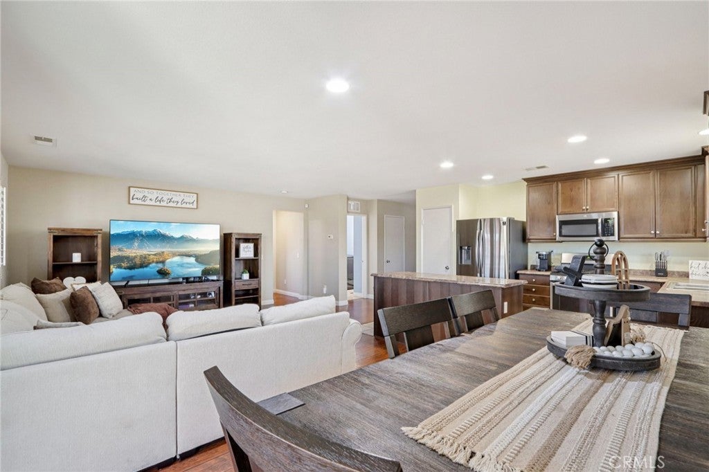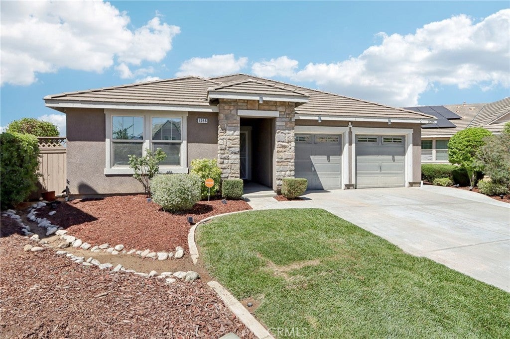 Welcome to this charming 3-bedroom, 2-bathroom home with a 2-car garage, perfectly situated in the desirable Olive Grove community. The open and inviting floor plan seamlessly connects the living, dining, and kitchen areas, creating a warm and welcoming space ideal for both everyday living and entertaining family and friends. Sunlight pours through dual-pane windows, highlighted by classic window shutters, while beautiful flooring flows throughout the home. Step through the sliding glass door to a covered patio featuring recessed lighting and ceiling fans, the perfect setting for outdoor dining, relaxing evenings, or lively gatherings with loved ones, all while enjoying the serene backyard. With a well-maintained exterior and a convenient location near local elementary and middle schools, this home offers the perfect combination of comfort, charm, and practicality. Move in and make it your own!