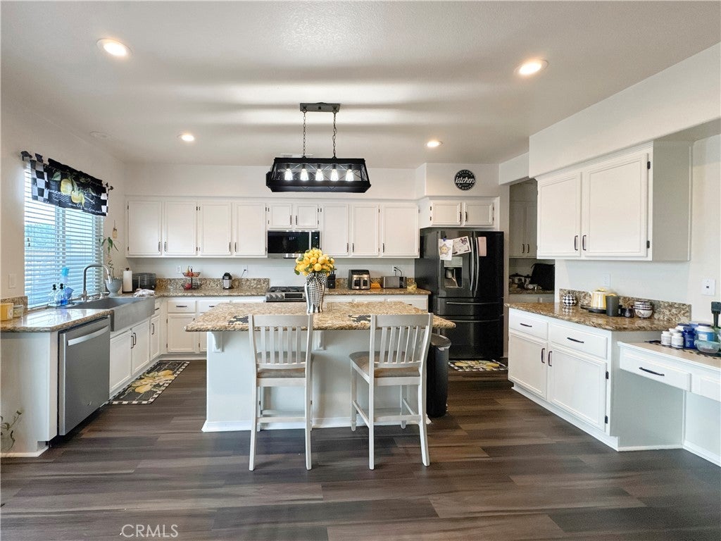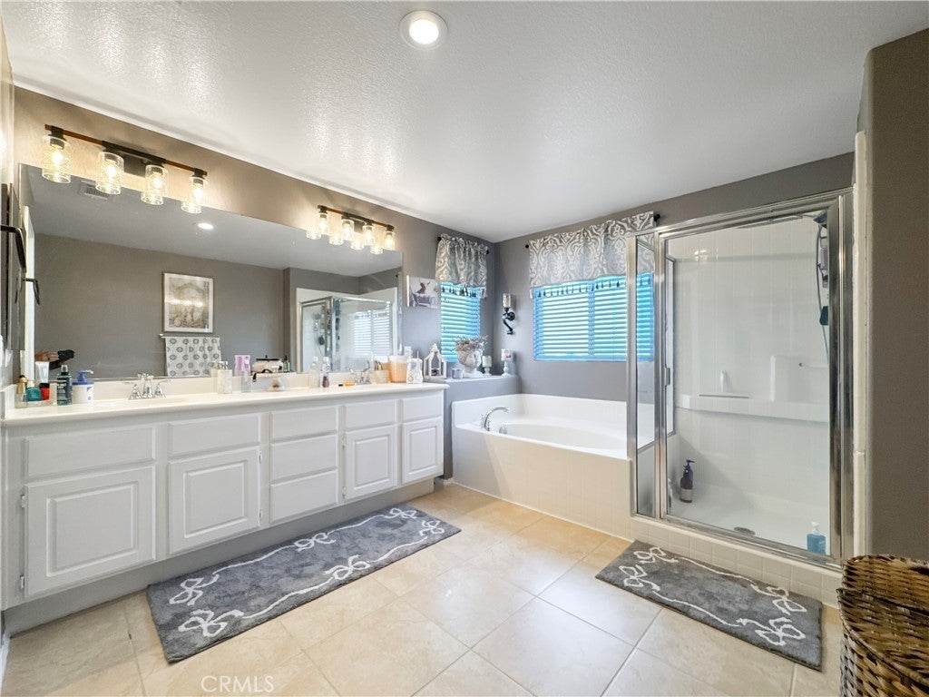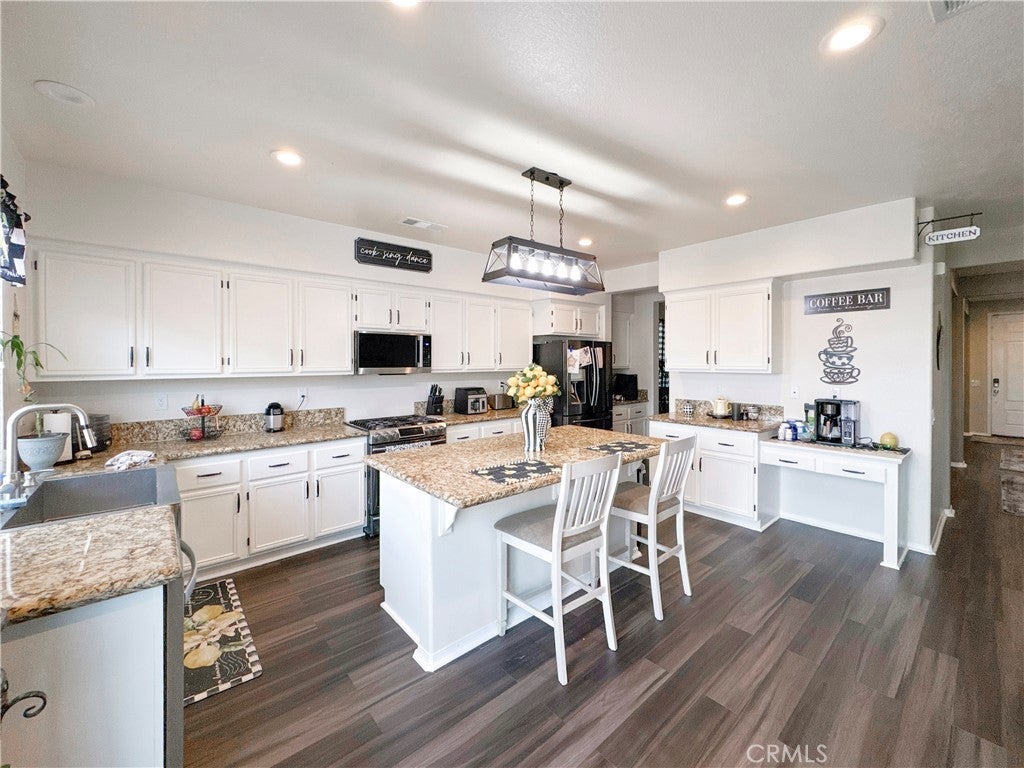 5-bedroom, 5-bathroom two-story home in Victorville, California with 3,673 square feet, high ceilings, a tandem 4-car garage, and a multi-generational layout on a 7,492-square-foot lot on Domingo Street — offering the space, flexibility, and move-in ready upgrades that larger families rarely find in one home. The main level delivers three distinct living spaces — a formal living room, a formal dining room, and a family room anchored by a fireplace — giving every occasion its own dedicated room. High ceilings add volume and an open, airy feel that makes the home live larger than its square footage suggests. The remodeled kitchen features granite countertops, stainless steel appliances, a walk-in pantry, and a butler's bar connecting to the formal dining room for easy entertaining. Luxury vinyl plank flooring and carpet runs through the main living areas, delivering the warmth of hardwood with durability that handles kids, pets, and daily foot traffic. A main-floor bedroom suite with a full private bathroom is one of the hardest features to find in this market — ideal for in-laws, adult children, or guests who need single-level living. Upstairs, the primary suite includes dual walk-in closets, a soaking tub, a walk-in shower, and a dual-sink vanity giving both partners dedicated storage and morning routines. Two additional bedrooms share a Jack-and-Jill bathroom with private entry from each room, and a fifth bedroom serves as a guest room or home office. Newer carpet throughout the upper level adds comfort underfoot. The oversized loft with a built-in desk adapts to whatever your household needs — a game room, homework station, or teen retreat. The indoor laundry room keeps machines out of the garage. Two-zone HVAC delivers independent climate control for each level, and the tile roof and whole-home alarm system protect your investment from day one. The backyard features a block wall perimeter for privacy and a stamped concrete patio ready for outdoor entertaining. The tandem 4-car garage handles vehicles, a boat, or workshop space — a rare find in Victorville. Located near Bear Valley Road in Victorville with direct I-15 freeway access to Victorville Mall, Desert Willow Golf Course, Victor Valley Global Medical Center, and the Inland Empire employment corridor. Homes on Domingo Street with this combination of square footage, multi-generational layout, and move-in ready finishes do not last — schedule your showing today.