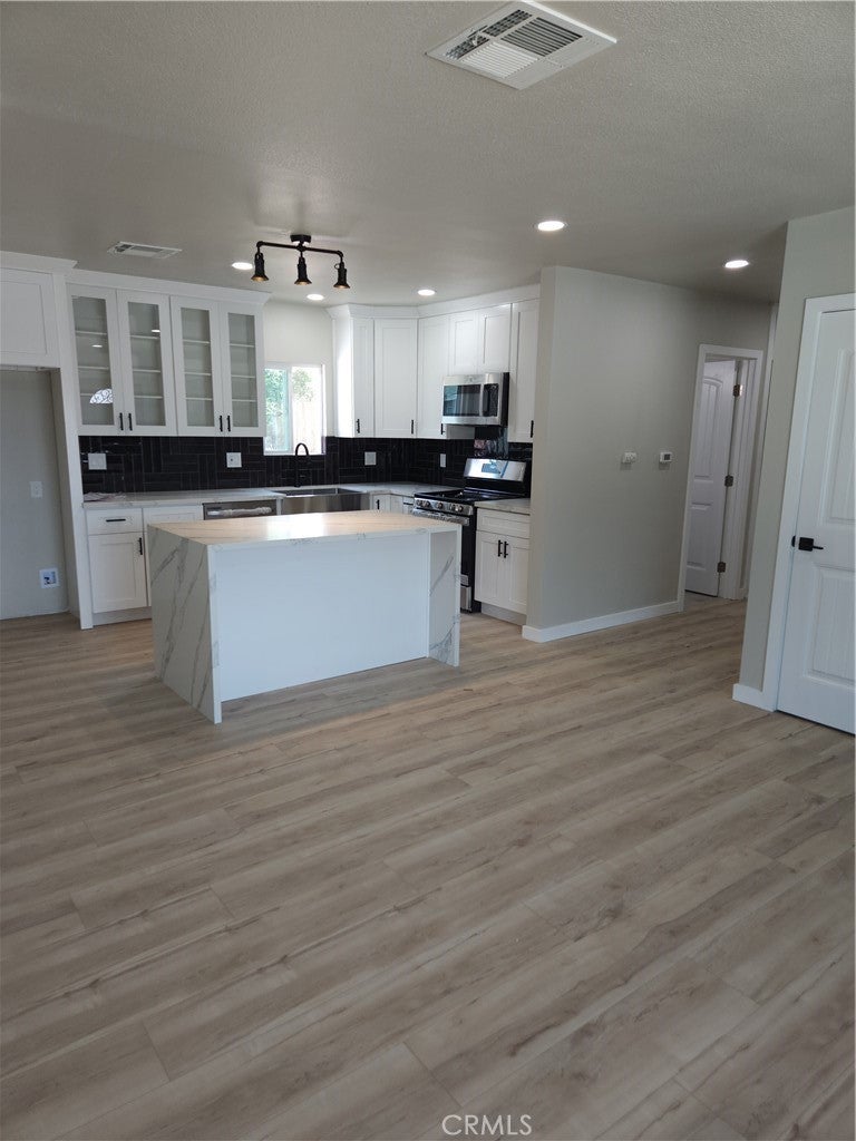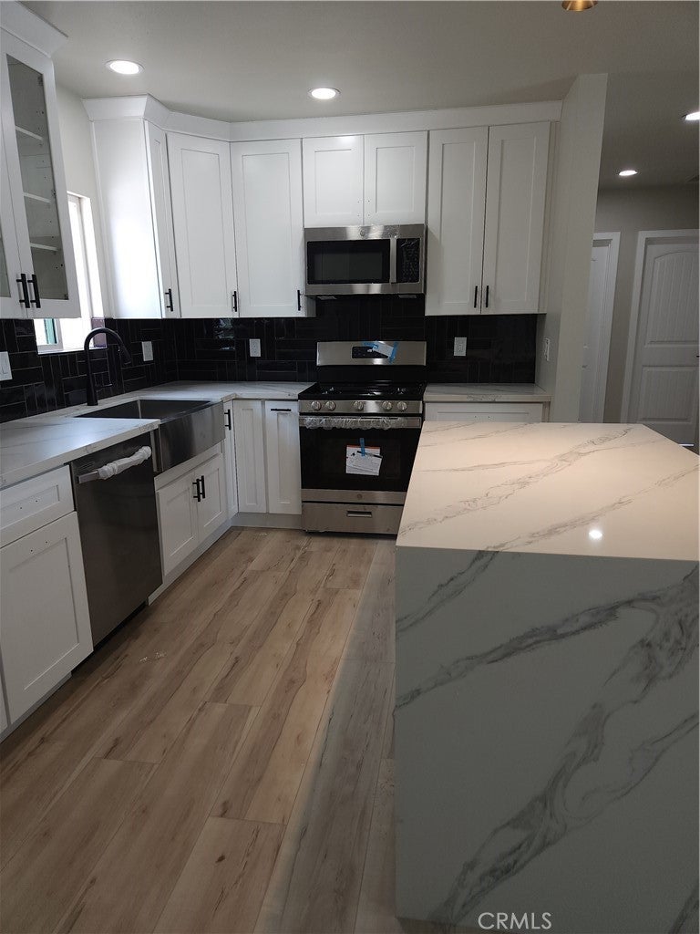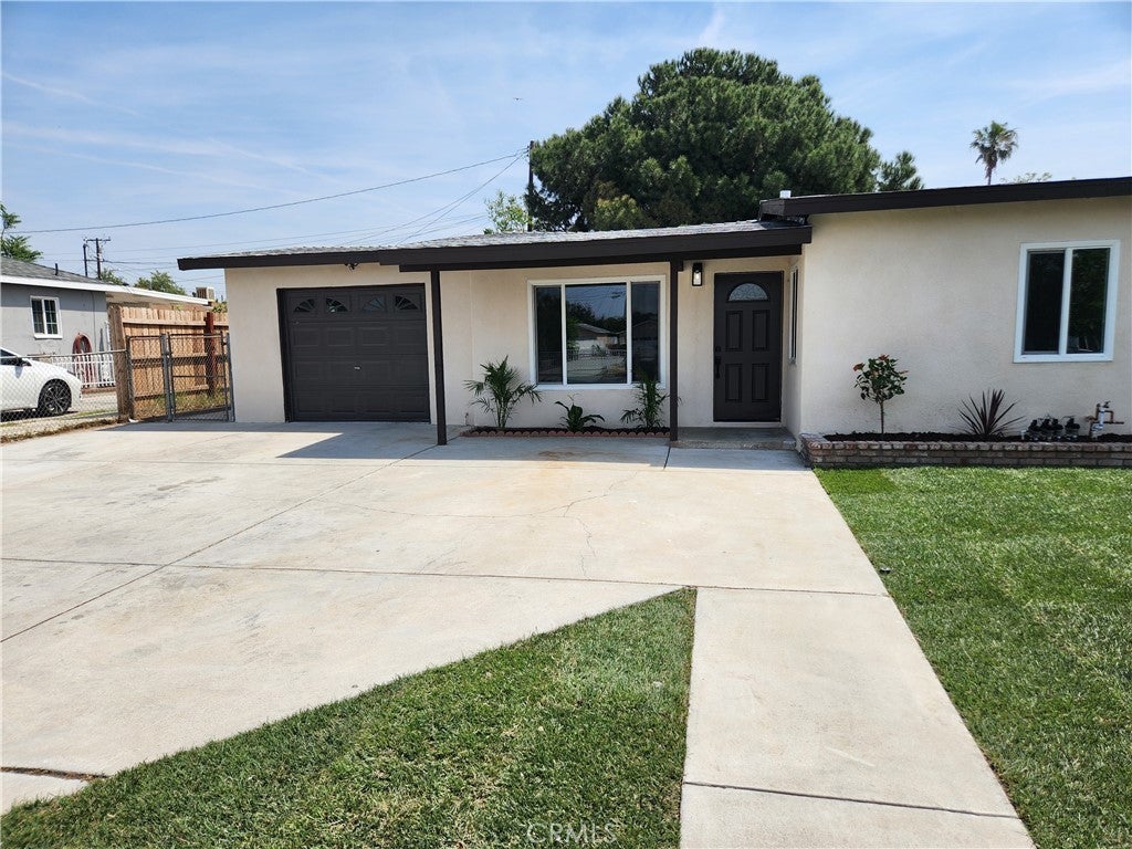 Welcome to this beautifully remodeled 3-bedroom, 1-bath home offering modern upgrades, an open layout, and true turnkey convenience. Step inside to find stunning wood plank flooring flowing seamlessly throughout, complemented by fresh interior paint and new baseboards that create a clean, contemporary feel. The fully renovated kitchen is a standout feature, showcasing brand-new soft-close cabinetry, elegant waterfall quartz countertops, and a stainless steel farmhouse sink. The completely open floor plan connects effortlessly to a spacious family room, while brand-new windows flood the home with abundant natural light. The upgraded bathroom features a large, beautifully designed walk-in shower, providing a spa-like experience. All three bedrooms are generously sized and offer ample closet space for comfort and functionality. Additional upgrades include brand-new central A/C for year-round comfort, tank less water heater and an attached garage for convenience. Step outside to a large backyard, perfect for entertaining, relaxing, and enjoying added privacy. Ideally located within walking distance to schools, with close proximity to shopping, dining, and easy freeway access, this home truly has it all. Move-in ready and waiting for its next family to enjoy!