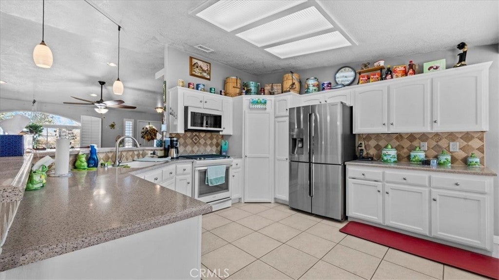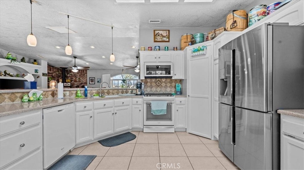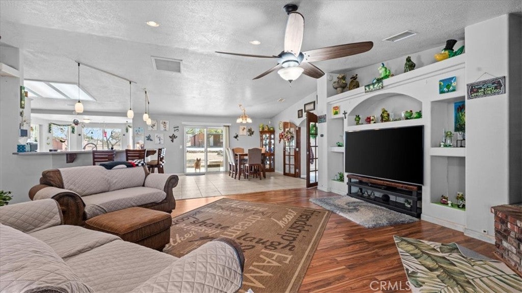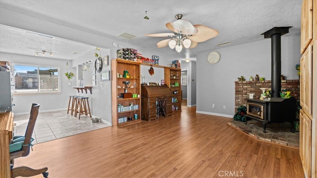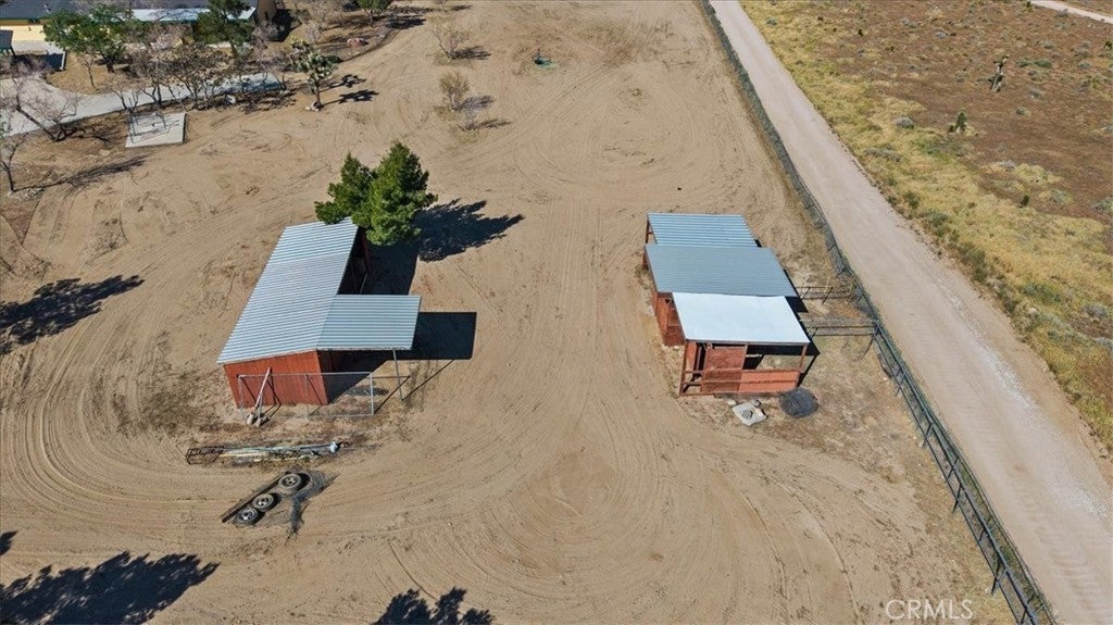 Welcome to 9475 Central Rd in Apple Valley where space versatility and lifestyle come together on a beautiful 5 acre fully fenced equestrian property nestled in the peaceful foothills of the Mariana hills just moments from riding trails. As you enter the home you are greeted by a large inviting living room featuring a brick raised hearth for a wood burning stove a huge custom picture window with rich wood shutters and a built in entertainment wall with oversized TV that creates the perfect gathering space. The kitchen is designed for both function and connection offering an eat up bar walk in pantry ample counter and cabinet space newer appliances and a cozy dining nook along with a formal dining area just off the kitchen. The north wing features a spacious primary suite with generous natural light through large custom shuttered windows an updated ensuite bathroom with walk in shower dual sinks and a walk in closet. Originally built in 1962 with the north wing added in 1990 the home has been thoughtfully remodeled between 2018 and 2023. The east wing is separated by a beautiful wood french door creating an ideal next gen living setup with its own family room second wood burning stove small eat up bar additional dining space two bedrooms a guest bathroom and laundry located in the second kitchen area. Throughout the home you will appreciate high ceilings Tiffany Co wood shutters upgraded windows and sliding glass door within the last five years along with a newer HVAC system and ducting installed approximately five years ago with three zone control for added efficiency and comfort. Outside the property continues to impress with a detached three car garage featuring additional electrical and 220 power along with a loft style attic space for storage and a studio space at the rear offering potential guest use. Equestrian amenities include a main barn approximately 816 sq ft with two 12 by 12 stalls pens and turnout area with all equipment stored in the barn a wash station and both water and electricity in place plus a separate tack building approximately 240 sq ft with built in shelving office space and covered front porch along with underground electric and air lines. There is also a chicken coop behind the tack room. Fully owned solar and set off paved Central Rd providing privacy while still maintaining easy access. This is a rare opportunity to own a well upgraded and thoughtfully designed horse property with room for your animals toys and future plans.