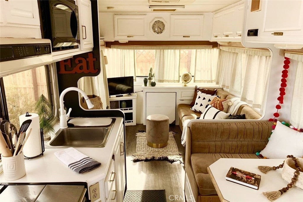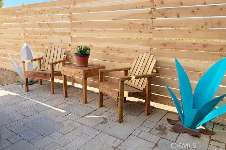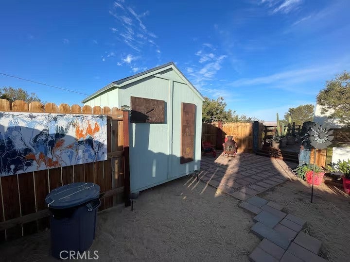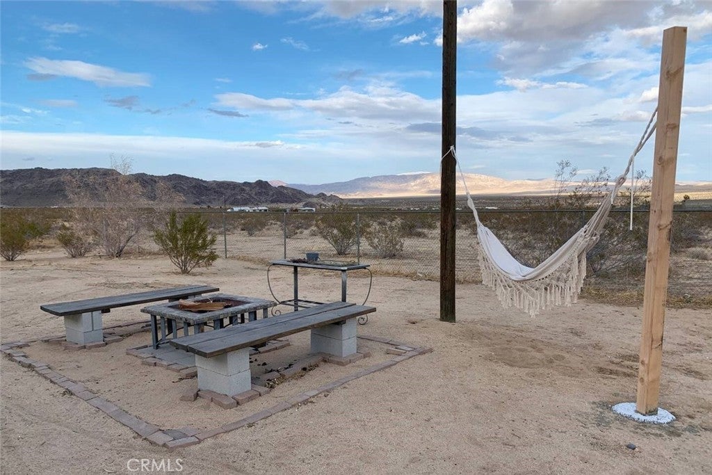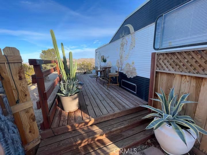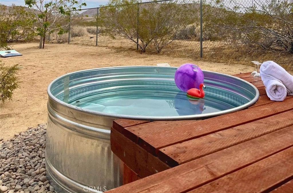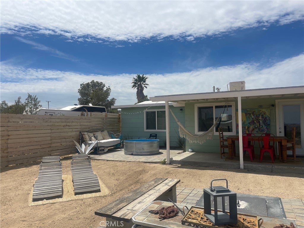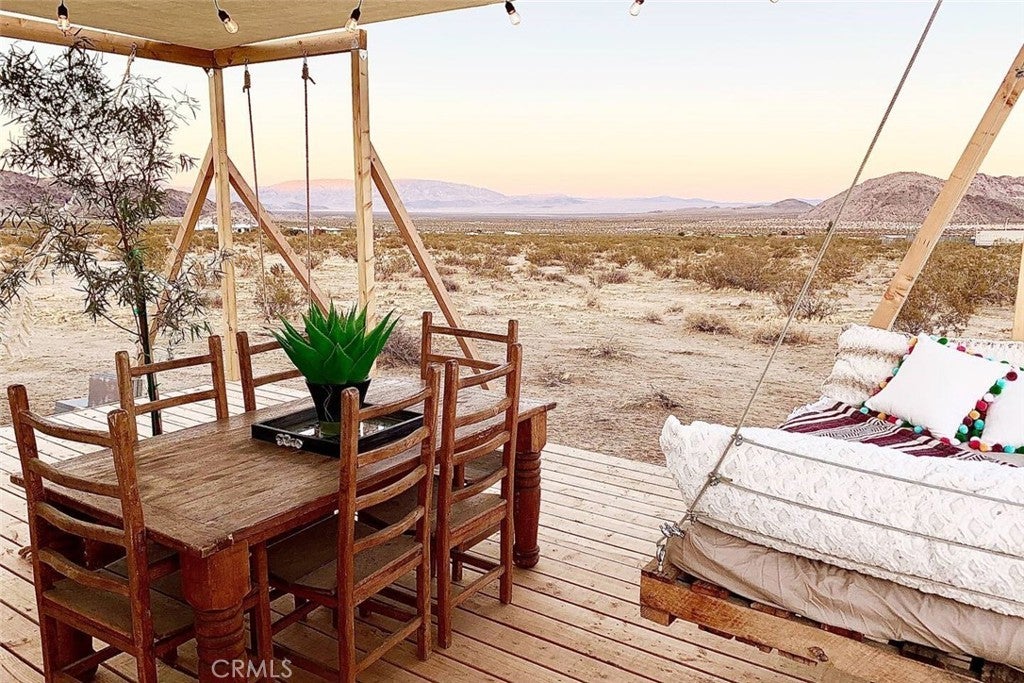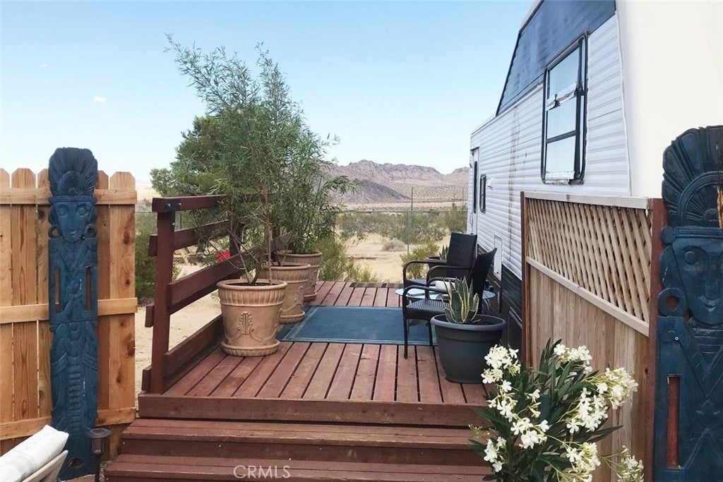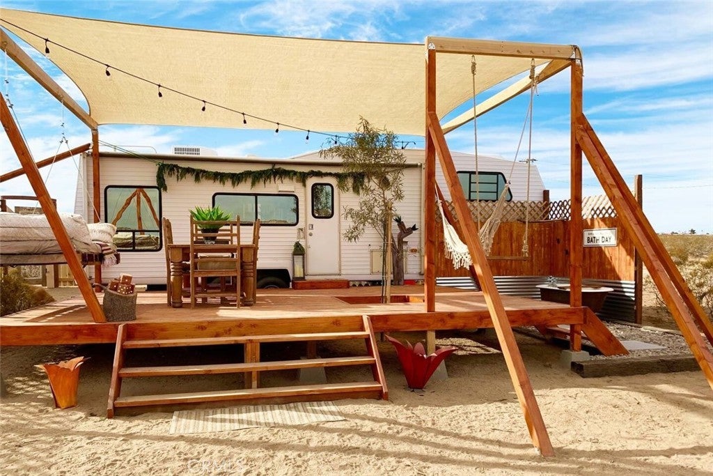 Calling all free spirits—your desert escape is waiting! Thoughtfully designed with a bright, open layout, this beautifully remodeled 1961 Desert Villa captures the essence of California desert living. From the moment you arrive, you’re immersed in a sense of calm, surrounded by mature landscaping and inviting outdoor spaces. Unwind in the dipping pool, soak in the open-air bath, gather around the fire pit, or relax in hammocks tucked throughout the property—each detail curated for tranquility and connection. Inside, the home flows effortlessly from room to room, with every space intentionally designed for comfort and style. This fully furnished, turnkey property features two bedrooms and one bath, ready for immediate enjoyment. Adding to the charm are two newly renovated designer trailers, each reimagined to blend seamlessly with the natural surroundings while offering their own private retreats. Both are fully equipped with electricity, water, and septic, and include private patios. The property also features two 40-foot storage containers for added versatility. Whether you're seeking an investment opportunity, a vacation getaway, or a personal desert sanctuary, this property delivers. Conveniently located just minutes from iconic local attractions, it offers the perfect balance of seclusion and accessibility. Ideal for gatherings, celebrations, or simply unwinding under the vast desert sky, this villa transforms evenings into a stargazer’s dream. Trailers, storage containers, and select furnishings may be negotiable with a strong offer. Schedule your private showing today.