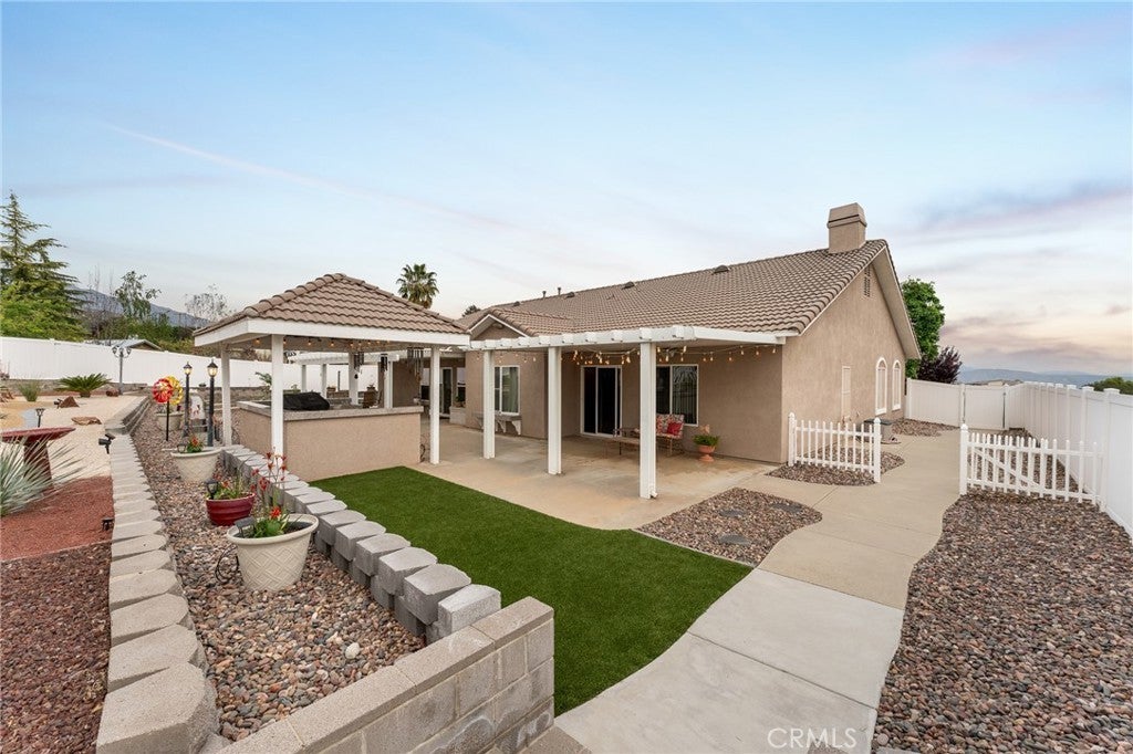 Experience upscale living in this beautifully maintained custom built single-story home! Located in one of Yucaipa’s most sought-after communities, just off Wildwood Canyon and minutes from Oak Glen. Offering a spacious and functional layout, the home features formal living and dining areas along with an open-concept family room with a wood burning fireplace, ideal for both everyday living and entertaining. Upgraded flooring runs throughout, including wood-like tile in the main areas and newly installed LVP flooring in the bathroom. The kitchen is thoughtfully designed with granite countertops, custom cabinetry, a large island, walk-in pantry, and double ovens. The primary suite offers a spacious retreat with dual sinks, soaking tub, walk-in closet, and ample storage. Additional bedrooms are well-sized, including a flexible office space with French doors and a convenient Jack-and-Jill setup. Step outside to a private, low-maintenance backyard with tiered hardscape, mountain views, covered patios, and a built-in BBQ area—perfect for entertaining. Additional highlights include PAID-OFF SOLAR, RV parking with dump station, a finished garage, and an insulated shed. Conveniently located near local wineries, and dining, this home offers a rare blend of privacy and seclusion while still being close to everyday amenities. It's ideal for those who appreciate nature, scenic mountain views, and a more peaceful lifestyle. Schedule a tour today to experience everything this home has to offer!