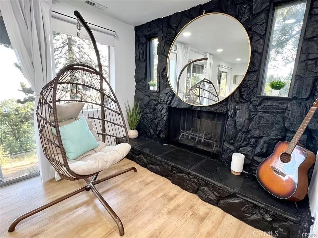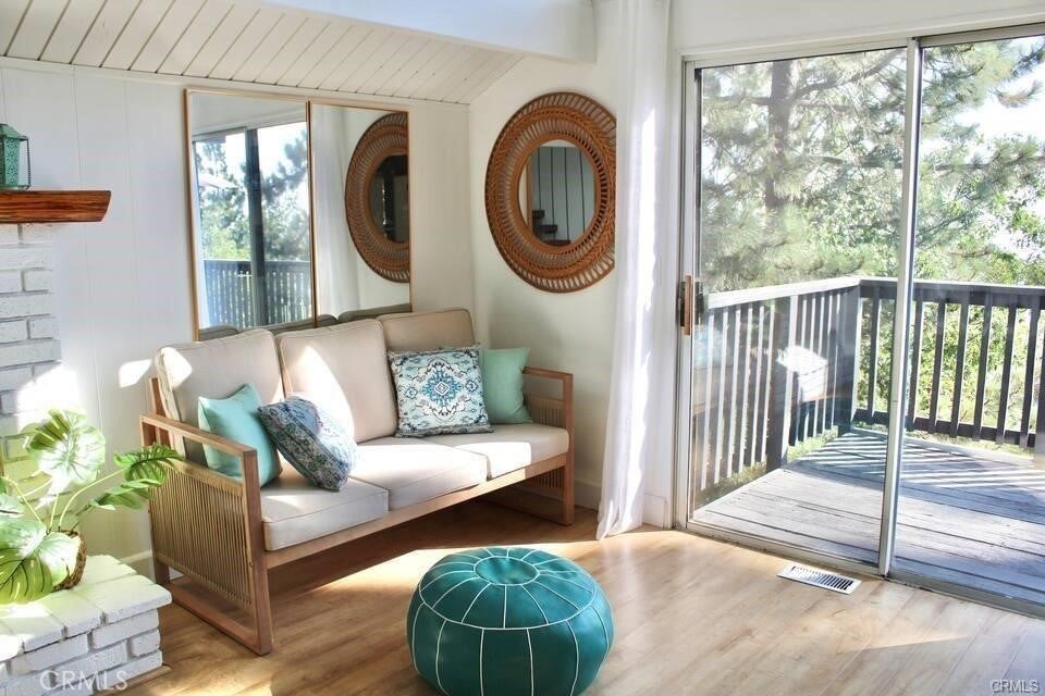 Nestled in the peaceful beauty of Running Springs, just 15 minutes from Lake Arrowhead, this fully furnished 4-bedroom, 2-bath retreat offers the perfect blend of comfort, style, and opportunity. Inside, you’ll find a rare mountain upgrade, a brand new central heating and cooling system for year-round comfort. The home welcomes you with soaring ceilings, an open-concept layout, and expansive windows that frame stunning mountain views and city lights below. Natural light fills the space, creating a warm and inviting atmosphere throughout. The kitchen is designed for gathering, featuring a large center island, quartz countertops, stainless steel appliances, and scenic views that elevate everyday living. The cozy living room, complete with a fireplace, is perfect for snowy evenings, while the dining area flows seamlessly for entertaining. Step outside onto the spacious balcony to enjoy fresh mountain air, morning coffee, or sunset views. Downstairs offers three well-appointed bedrooms, including one with direct balcony access, one with its own fireplace, and another with an en-suite bathroom. An additional full bathroom adds convenience for guests. Upstairs, a loft provides a second living space along with a fourth bedroom—perfect for taking in the surrounding views. Outside, enjoy a generous backyard and a private heated hot tub, ideal for relaxing under the stars. With parking for multiple vehicles and a layout designed for both comfort and functionality, this home is ideal as a full-time residence, weekend escape, or income-producing property.