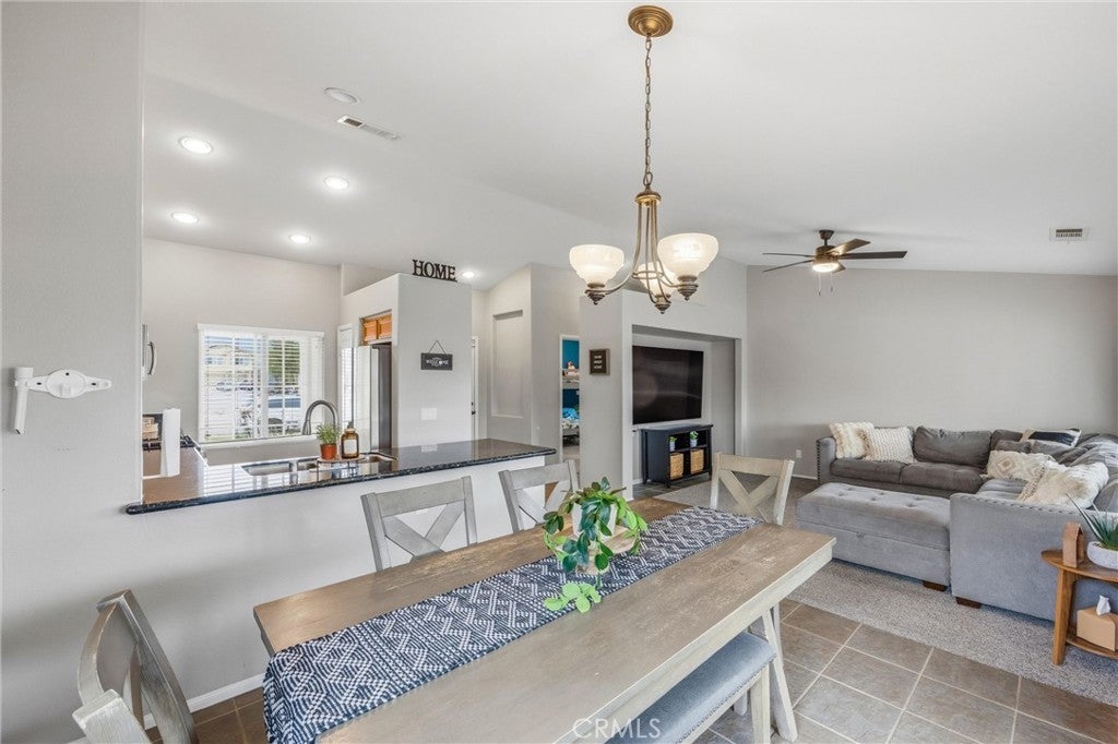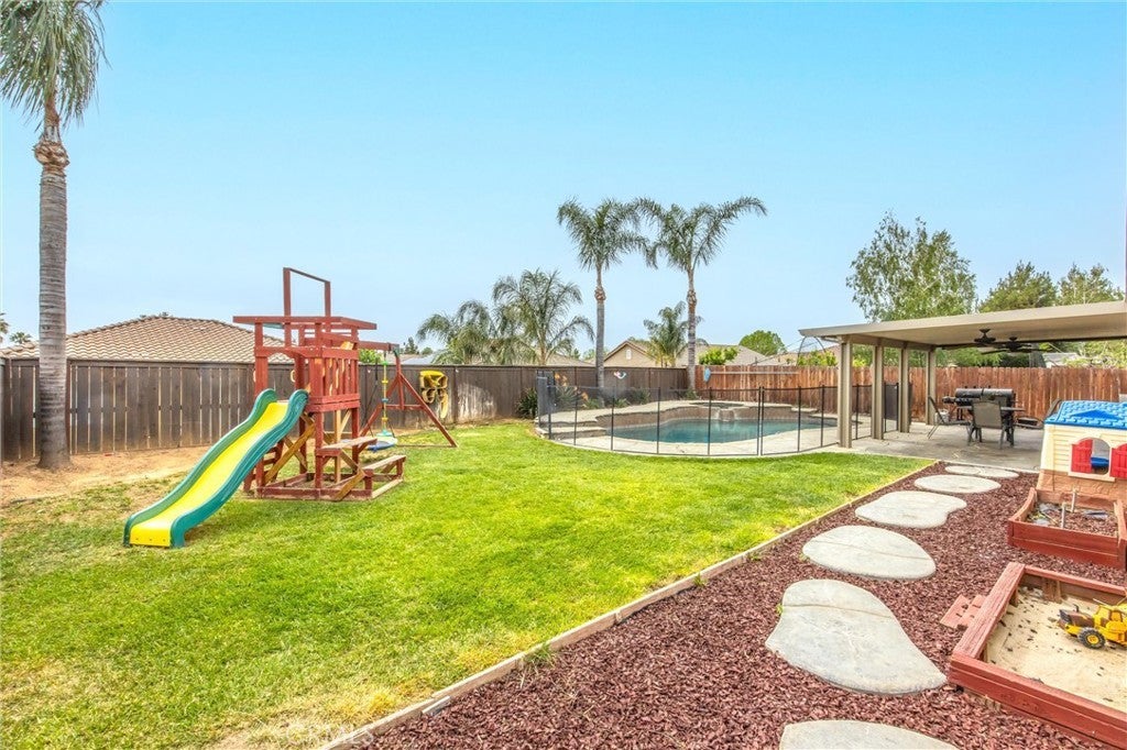 Welcome to this gorgeous 3-bedroom, 2-bath with POOL/SPA home located in the highly desirable Sundance Community! This beautifully maintained property offers the perfect blend of comfort, style, and outdoor living. Step inside to find a spacious layout featuring upgraded tile and plush carpet flooring throughout. The kitchen is a standout with elegant granite countertops, ample cabinetry, and plenty of space for cooking and entertaining. The backyard is truly an entertainer’s dream—featuring a sparkling lagoon-style saltwater pool and spa, surrounded by a stamped concrete patio. Enjoy relaxing under the covered patio complete with lighting and 2 ceiling fans, perfect for year-round outdoor gatherings. The yard also includes a lush grass area and wooden playset, making it ideal for both relaxation and play. Additional highlights include PAID-OFF SOLAR SYSTEM, epoxy-coated garage flooring, soft water hookups, and stunning mountain views that provide a serene backdrop to your everyday living. This home has it all—style, comfort, and incredible outdoor amenities—don’t miss your opportunity to make it yours!