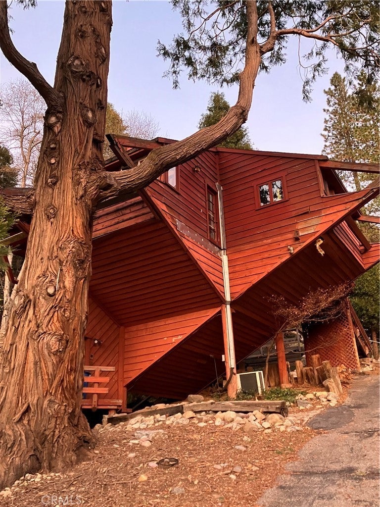 Sold - AS -IS This home is one of a kind! Unique architecture reminiscent of Berkeley in the 1970's! Set above a large lot (over 15,000 square feet) and situated amongst old growth trees including Redwood trees and White Alder Trees, this 2-bedroom 1 1/2 bath home has so much charm. Entering through the kitchen, you will find updated stainless-steel appliances and plenty of storage. Moving from the kitchen, a bright open space with the living room and dining room, there are of lot of windows, including a huge skylight. The living room has a circular and inviting space, with a Swedish wood burning stove in the center. The walls are lined with built in benches and great views. The spacious dining room is fit for your friends and family to gather in. Off of the main area is a hallway to the bedrooms and a full bathroom, with a laundry area with a washing machine. You have all you would need to live on this floor. One bedroom accessed from this floor is a loft and has a lot of space and good views. There is also a bonus room downstairs which could serve as another living space. It has a sleeping area, a bathroom. a built-in desk and a door to the outside. Anywhere in the home, you will enjoy privacy and serenity. The neighborhood has many full-time owners and a seasonal stream adding to your forest dwelling experience. Plenty of parking. The home is near a main highway for commuters. Cash only! No repairs will be done, The home needs TLC on the outside, Central heating and a mini split for AC and heating. Professional photos coming.