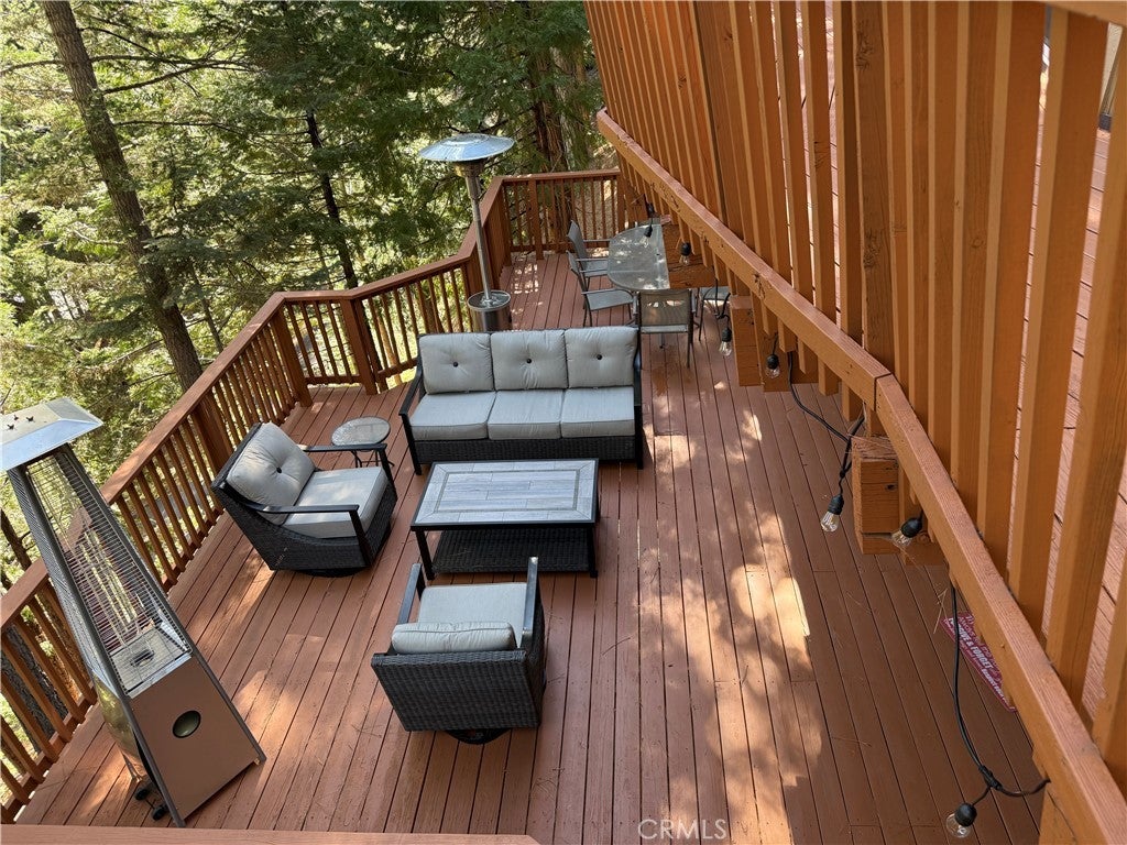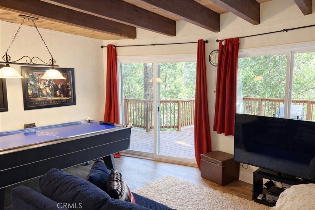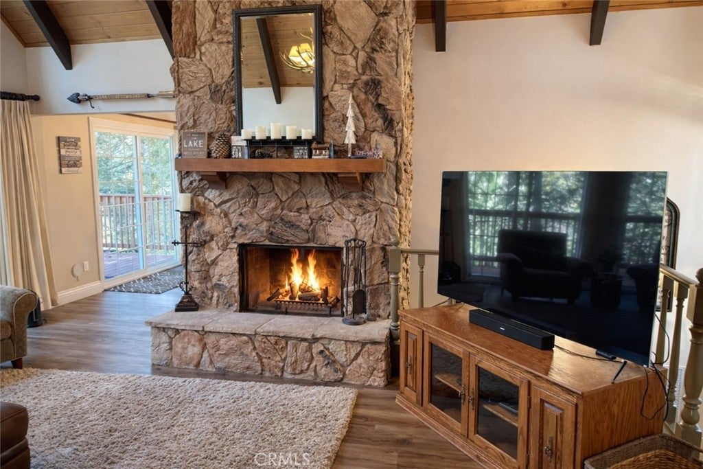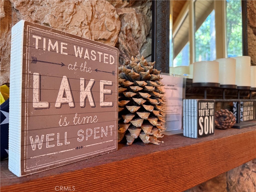 Lake Rights, this property sits among giant pine trees with the feeling of an escape into a pristine forest. Set up to be your private getaway, or a great property to be used as a short-term rental for supplemental income. Although likely your own private escape is preferred. Nice level parking off the street, just newly built steps down to your secluded setting. Enter into the main level living room with fireplace, with an updated custom bath, main level bedroom and a beautiful newly appointed kitchen. This welcoming floor plan opens up to a private main level deck, living room and kitchen arrangement for a weekend of fun and adventure. Downstairs has two bedrooms split by a bonus room/game room that also opens up to a great expansive deck. The right side of the deck as you enter has been reinforced for future plans of a spa. The main water line to the home has just been replaced as a major upgrade for future reliability. This property has the feel you are looking for, located in one of the only neighborhoods with county-maintained roads and no utility poles, a feature very noticeable when you compare the feel of this area to other Lake Arrowhead neighborhoods. This is centrally located near Blue Jay, Grass Valley Lake, Lake Arrowhead Village, the National Forest, SkyPark or the Lake Arrowhead County Club, and a half hour drive to Snow Valley. For the perfect getaway, look no further than this amazing property.