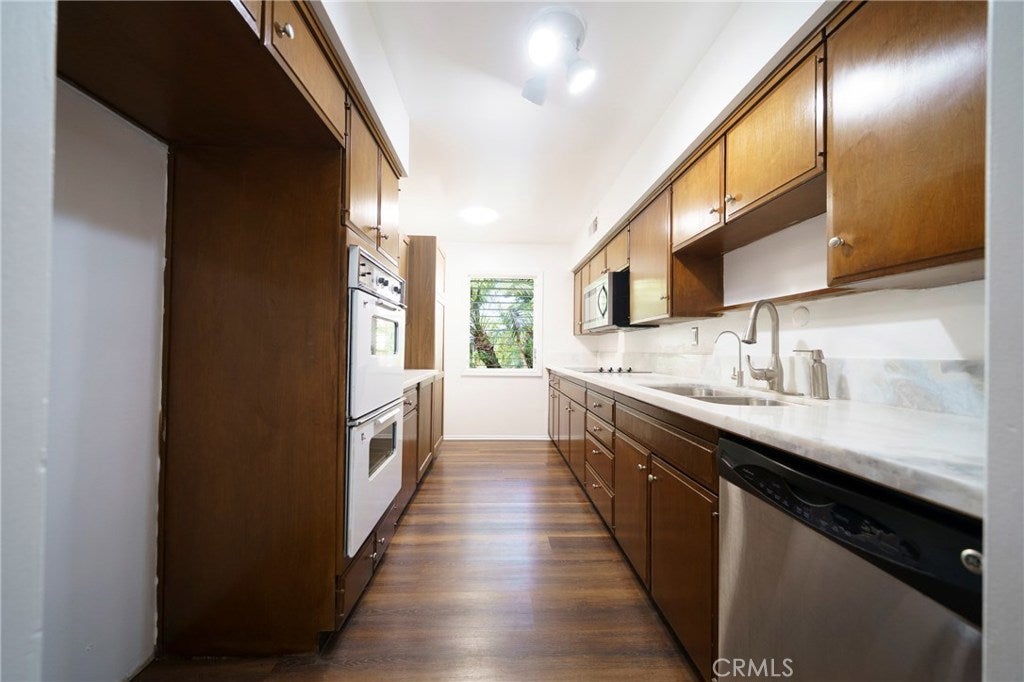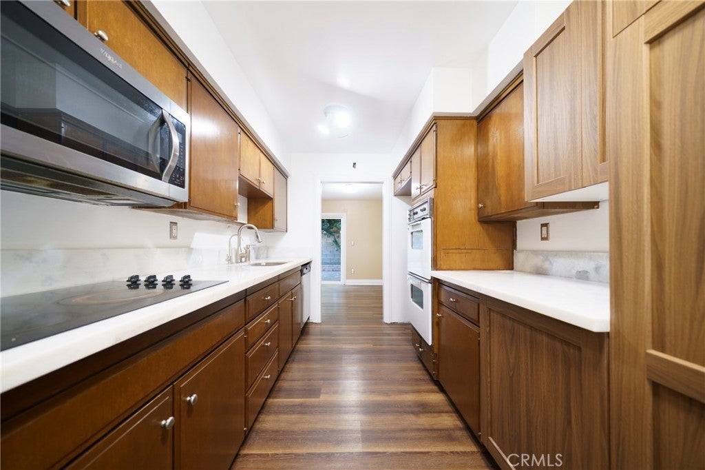 Welcome to Canby ave! A beautifully maintained, park-like gated community in Reseda, this highly upgraded and rarely available single-story residence offers almost 1,400 square feet of thoughtfully designed living space. With only a limited number of single-story units in the community, and even fewer that feature a spacious private backyard, this upgraded home presents a truly unique opportunity. Big solid ground concrete patio, a lush hideaway, as you step inside to discover a light-filled open floor plan, enhanced by tasteful upgrades and modern finishes that elevate both style and comfort. Lovely waterproof 9mm vinyl flooring large sliding doors allowing tons of natural lighting, only shares one living room common wall reducing the noise dramatically, The expansive living and dining areas create the perfect setting for entertaining or relaxing, while large windows invite an abundance of natural light, creating a warm and welcoming ambiance throughout. The upgraded kitchen features ample cabinetry, generous counter space, double oven with a great size window for more lighting and improved finishes—ideal for both everyday living and hosting guests. It flows seamlessly into the dining and living areas, offering a cohesive and functional layout. With a 2 car garage this home checks all the boxes. The primary suite is generously sized, offering a peaceful retreat with abundant closet space and a private en-suite bathroom. The second bedroom is equally spacious and versatile—perfect for guests, a home office, or additional living needs—accompanied by a second full bathroom for all guests One of the home’s most standout features is its private, nicely sized backyard, a rare find in this community. Whether you envision outdoor dining, entertaining, gardening, or simply enjoying your own quiet outdoor space, this yard provides endless possibilities. Community offering landscaped grounds & a tranquil environment with greenbelts, walking paths, and recreational areas—creating a serene, park-like lifestyle, lovely pools and Jacuzzy. Central heating and air conditioning for year-round comfort Single-story layout with no interior stairs Upgraded interior with modern touches Prime, quiet location within the community Located in the heart of the San Fernando Valley, this home provides convenient access to shopping, dining, schools, and major commuter routes. Come and see what this home has to offer in person.