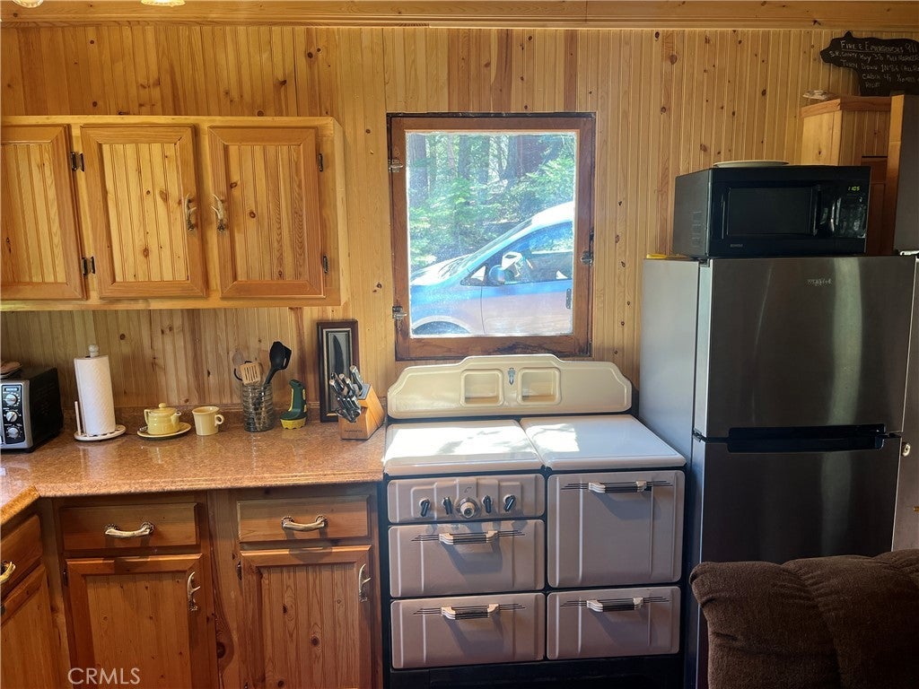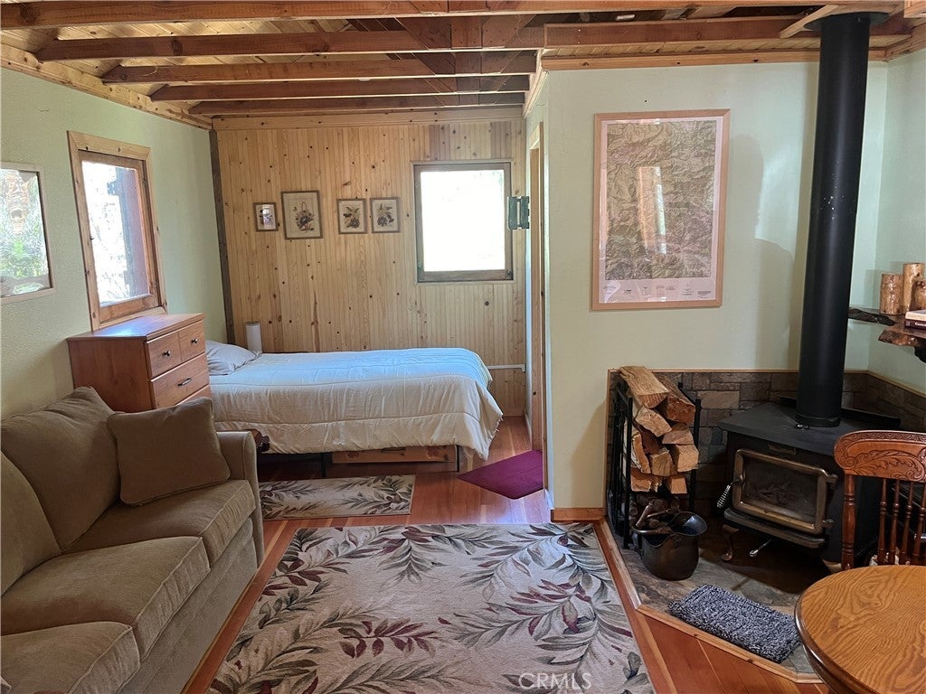 This may not be the biggest cabin in the woods but it is sure one of the nicest. At under 400 sq/ft, it qualifies as a "tiny house" that is so popular these days. Because of the open floor plan, the light color of the tongue and groove interior, the skylight, the open beam ceiling, and the many windows, this cabin seems a lot bigger; not to mention the light and "airy" atmosphere inside. There is a covered front porch that is perfect for relaxing on. The kitchen has been upgraded. (You should see the BEFORE pictures!) The door and cabinet handles look like they were made from deer antlers. (They are probably not real antlers, so no deer harmed in the remodel of this kitchen). The kitchen also sports a great, old time propane stove and has Corian countertops. Vintage, but well maintained, wood flooring adds to the appeal of this cabin. There is a wood burning stove that will take the chill out of the air or set the stage for a quiet evening. Some firewood is included in the sale. Cabin has a small, portable propane tank and a tankless water heater. There are two, 200 gallon, water tanks and a portable, 100 gallon tank, that will be included in the sale. The bathroom currently has an RV style toilet as it uses less water and does not have the same problem of freezing in the winter like a conventional toilet. Cabin owners have been known to replace them with a conventional toilet. Cabin will come mostly furnished complete with a nice recliner and a LaZboy hide-a-bed. There are no electric lines to get in the way of your view as the lines are buried underground. I think you will fall in love with this one, if you haven't done so already. Cabin is on Forest Service leased land. Forest Service has inspected and cleared this cabin to close. There is a yearly lease fee. There is no short or long term renting allowed and these will need to be cash sales. Other restrictions and guidelines can be found by asking for the Forest Service Use Handbook. Agents can find the handbook in the Supplements section.