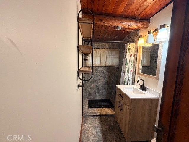 • Interior FeaturesSeparate/Formal Dining Room, High Ceilings, Bedroom on Main Level, Beamed Ceilings