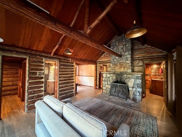 One of Van Horn's Finest Log Cabins! Formally Named Happy Days by Van Horn Himself, thats exactly what this cabin represents, a simpler time. For the last 20 years it has been a successful Air BNB. Many memories have been made here over the years and there still so much life left to give. Perfect if you want it for an investment, vacation or full time home. Clear fir floors, newer forced air furnace, remodeled bathroom and dining area. Big Picture windows at front of home perfect for watching the weather roll in and out. Nice sized front porch calls for sitting and letting life's troubles pass you by! Spectacular floor to ceiling fireplace at the heart of home separates living room and kitchen and makes you want to cozy up on a cool Autumn evening and embrace the warm glow and warmth of the flames. Classic wood sash windows throughout. Two main floor bedrooms and full bath are easy to negotiate in this single level home. Sitting off the street on a big lot adjacent to garage, this property should not be missed!