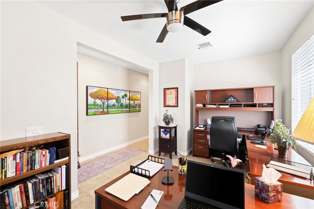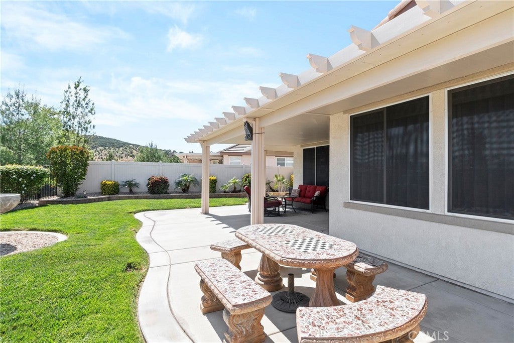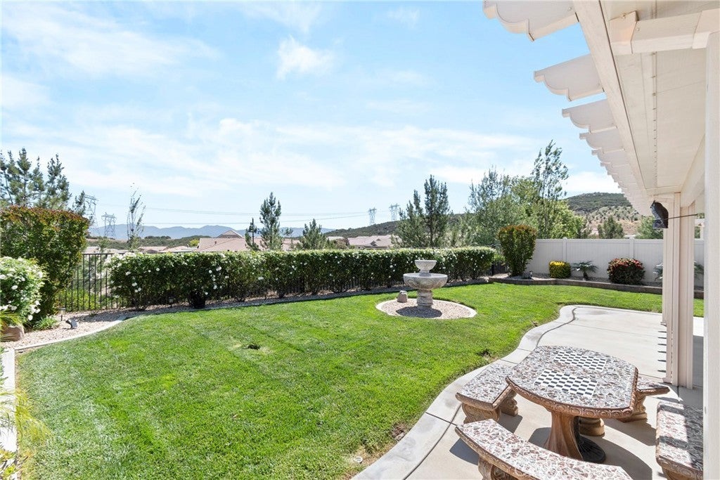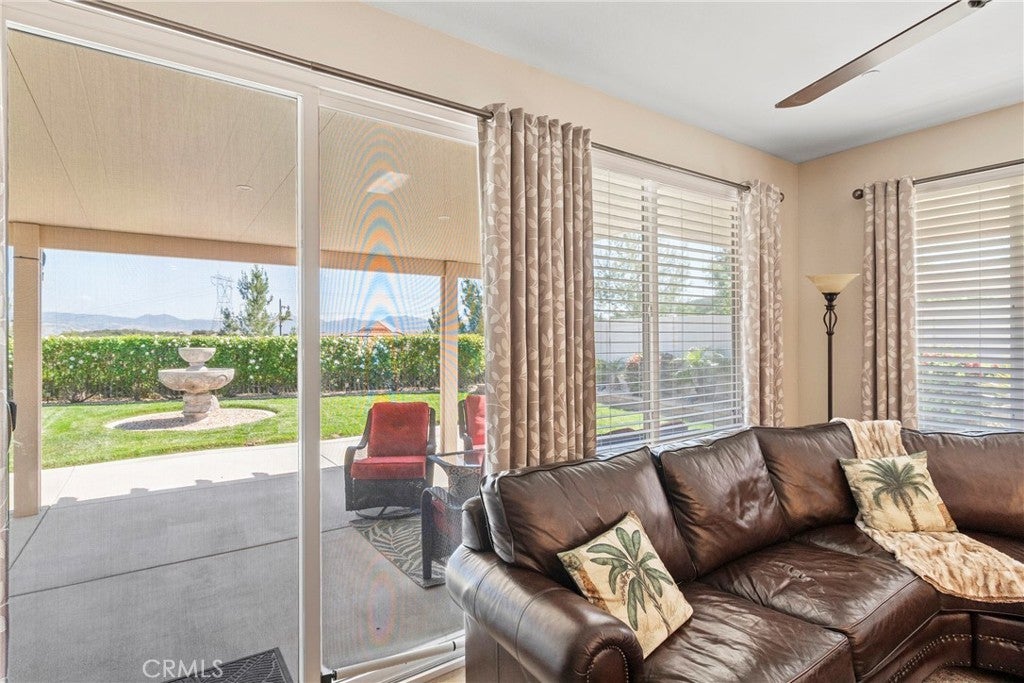 VIEW 'SANCTUARY' Model - 1,738 Sq Ft (2 BR 2 BA + Den/Office Great Room Concept) - Beautifully Maintained & Decorated ONE Level VIEW Home. Features & Upgrades include: Stylish Large Tile Flooring throughout the Home; Custom Fans & Lights (5 Fans); Blackout Blinds; Spacious Kitchen Pantry with Custom Glass Door; Whole House Water Softener System; Under Sink Filter; Price Includes SS Samsung Refrigerator and LG Washer & Dryer; Tankless Water Heater; Closet World Closet System; Premium Front Wrought Iron Security Door; Yards with Low Maintenance Drought Resistant Features (Artificial Turf); The Serene, Picturesque Backyard offers: Privacy, Beautiful Views; A Wrap Around Patio Cover; Cement Picnic Table with Umbrella Insert; Practically Maintenance Free yard Areas and a Large Fountain with Lights. The Double Garage has Storage and Epoxy Flooring with a 8/2025 Garage Door & Motor and Upgraded Insulation. There's a Low Mello Roos with this Beauty! Price includes Mounted TV's (70" + 65" + 32") Furniture Available outside of Escrow ...... FOUR SEASONS goes beyond just a place to live - It's a vibrant community designed to keep you Active & Engaged, offering: THREE Club Houses; A Restaurant; Beauty Salon; Massage Parlor and Facial Salon; THREE Swimming Pools & Spa Areas with one Indoor Heated Pool; Movie Theatre; Billiards, 3 FITNESS CENTERS with state-of-the-art equipment, BBQ & Picnic Areas, Tennis Courts; PICKLE BALL COURTS, Paddle Tennis, Shuffleboard, Horseshoe and Putting Green, 6+ MILES of Nature/Hiking Trails; DOG PARK, and So Many Wonderful Activities & Clubs to meet new Friends and be as Active as you choose. FOUR SEASONS is approximately 30 miles from Palm Springs, at a higher elevation for a cooler climate to experience all of the four Seasons; Close to Shopping Centers, (including the World Famous Cabazon Outlet) Restaurants & Casinos, MEDICAL CENTERS/FACILITIES (Literally across the street from Loma Linda & Beaver Medical) - This Picturesque Community is surrounded by rich ranch lands with a Scenic backdrop of 2 Mountain ranges.