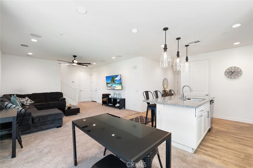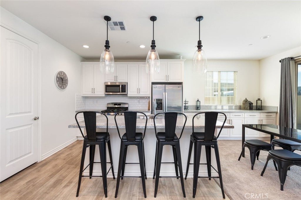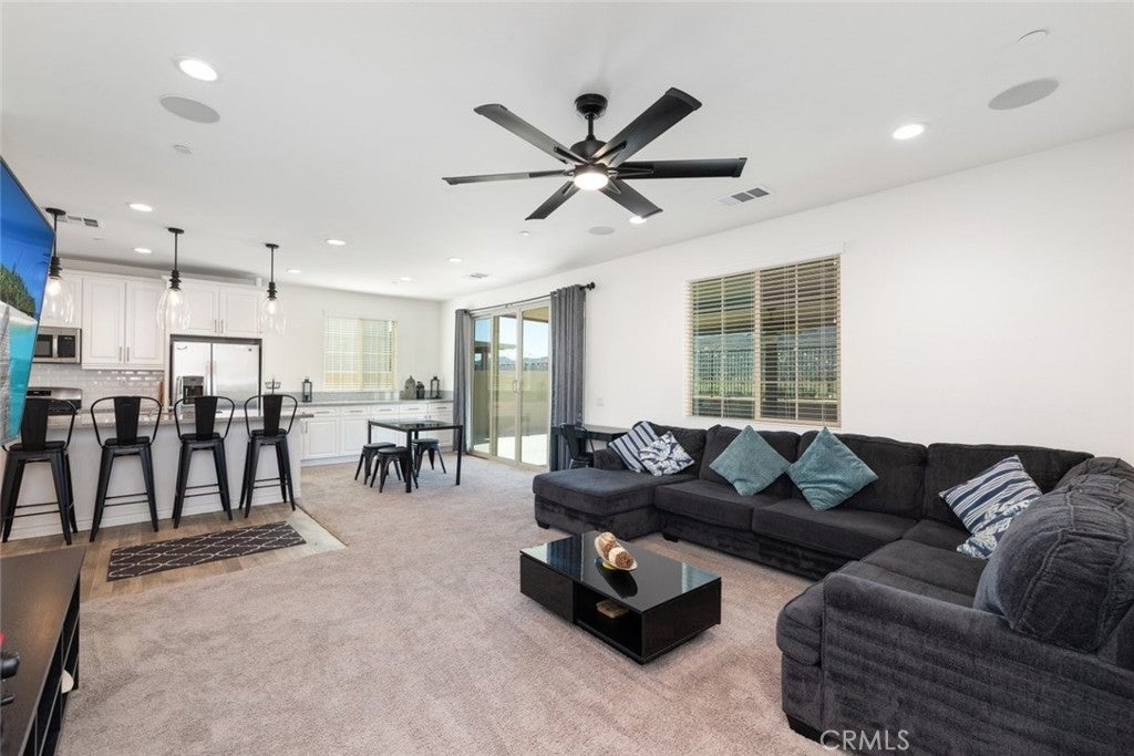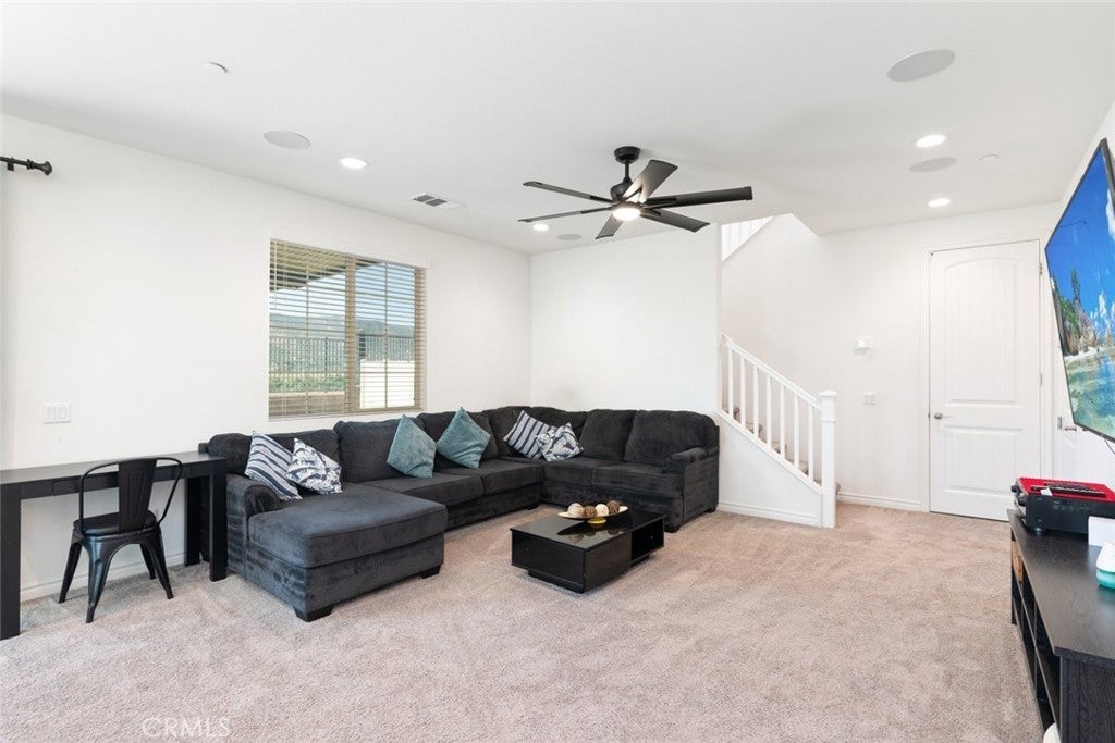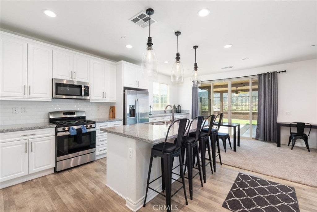 Welcome to 29077 Soraya in the highly sought-after Summerly community of Lake Elsinore! This beautifully upgraded home offers 1,929 sqft of modern living space, featuring 4 bedrooms and 3 bathrooms, including a full bedroom and bath downstairs, perfect for guests, in-laws, or a home office. Step inside to an open-concept floor plan designed for both everyday living and entertaining. The spacious kitchen is the heart of the home, showcasing crisp white cabinetry, granite countertops, stainless steel appliances, a stylish tile backsplash, and a large center island that flows seamlessly into the family room, complete with built-in surround sound for the ultimate movie or game night experience. Upstairs, you’ll find well-appointed bedrooms and a functional layout that maximizes comfort and privacy. Head outside to your private backyard retreat featuring a premium lot with no rear neighbors. Enjoy year-round outdoor living under the Alumawood patio cover with two ceiling fans, relax around the gas fire pit, and appreciate the low-maintenance turf landscaping. This home is also energy-efficient with 25 paid-off solar panels and TWO Tesla Powerwall battery packs, helping you save on utilities while staying powered up. Only five years old and loaded with upgrades, this Summerly gem checks all the boxes. Close to parks, pools, clubhouse, and all the amenities Summerly has to offer.