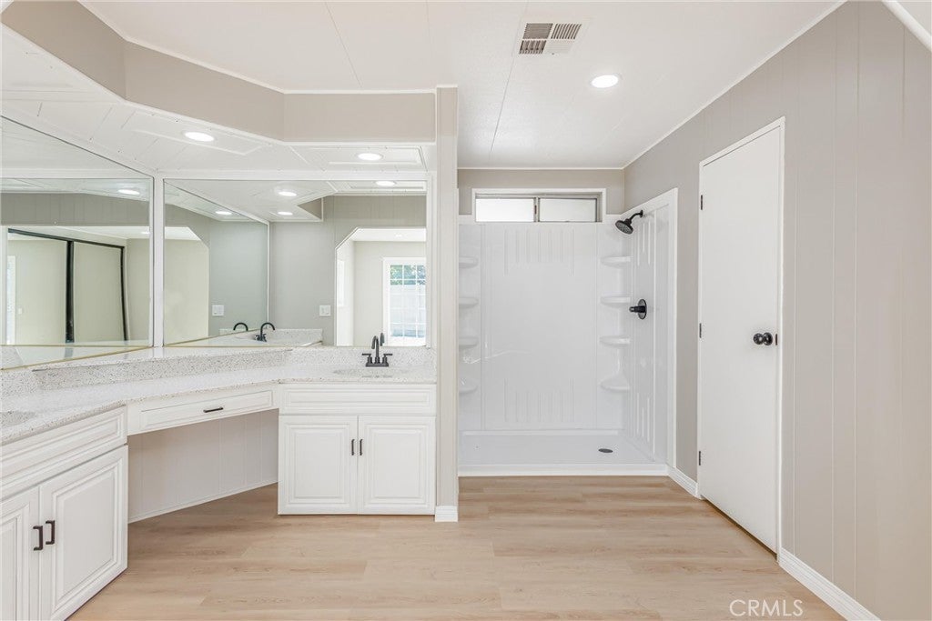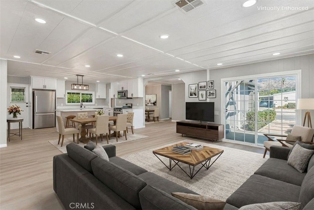 Discover a beautifully renewed place to call home in Highland Springs Village, a gated 55+ community in Cherry Valley known for its peaceful setting, friendly neighbors, and resort-style amenities. This updated 3-bedroom, 2-bath manufactured home sits on owned land, offering long-term value and freedom from space rent. Step inside to an inviting open layout filled with natural light and finished with modern luxury vinyl plank flooring throughout. The kitchen has been completely reimagined with new cabinetry, quartz countertops, and stainless steel appliances—perfect for cooking, hosting, or simply enjoying a quiet morning at home. The spacious primary suite features a walk-in shower with a spa-like feel, while the refreshed guest bath offers stylish new finishes. Thoughtful upgrades continue throughout the home, including fresh interior and exterior paint, updated lighting, new switches and outlets, modern baseboards, new toilets, and a serviced HVAC system to keep you comfortable in every season. Outside, the low-maintenance landscaping creates a peaceful space to unwind, garden, or enjoy the mountain air. Highland Springs Village offers an unmatched lifestyle for just $175 per month, including access to a community golf course, pool and spa, tennis and pickleball courts, a fishing lake, and a welcoming clubhouse filled with activities and connection. Whether you’re downsizing, simplifying, or seeking a community that feels like home the moment you arrive, this move-in-ready property delivers comfort, convenience, and the relaxed pace you’ve earned. Photo's have been virtually enhanced.